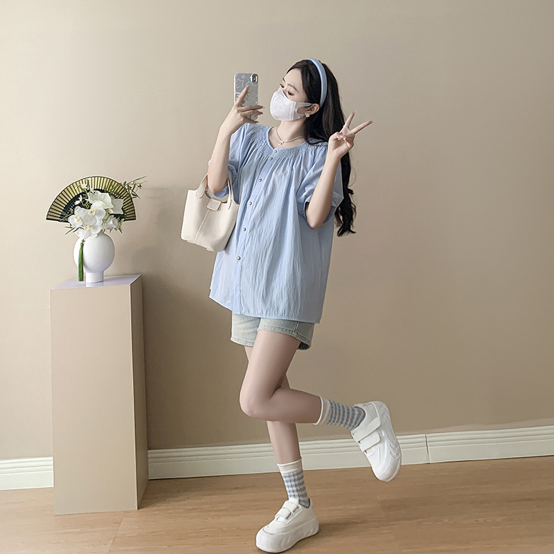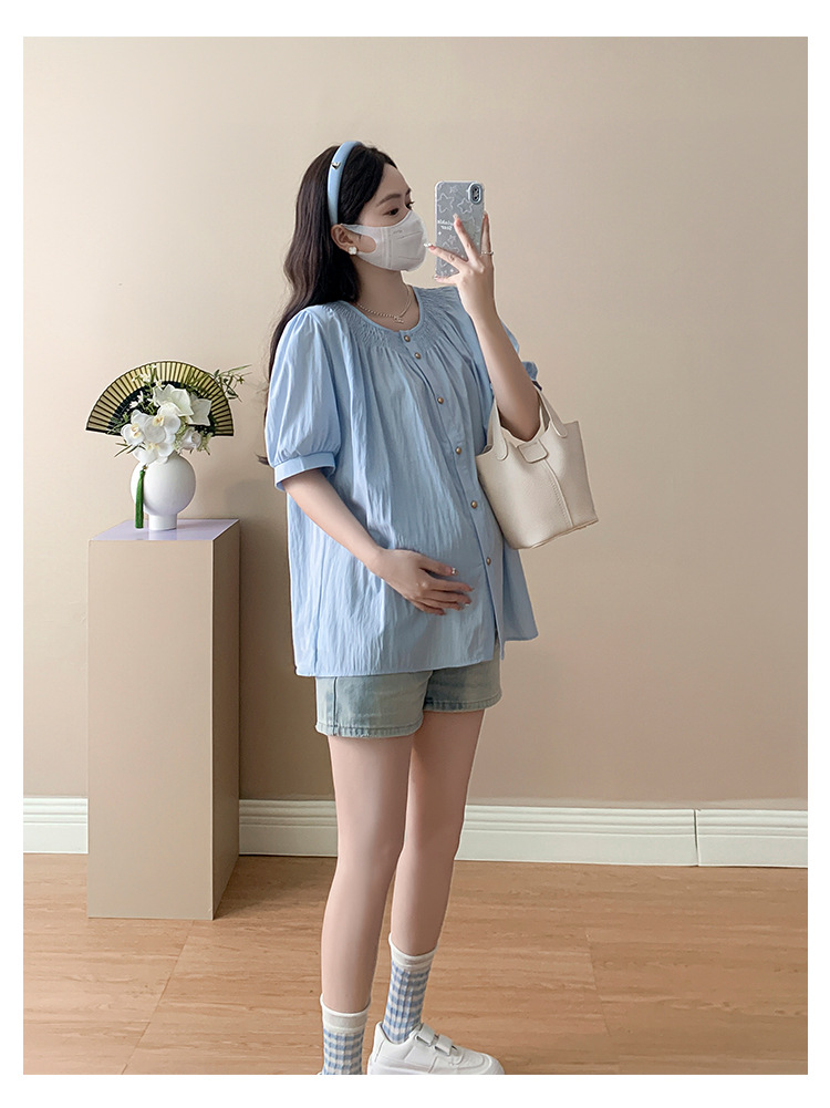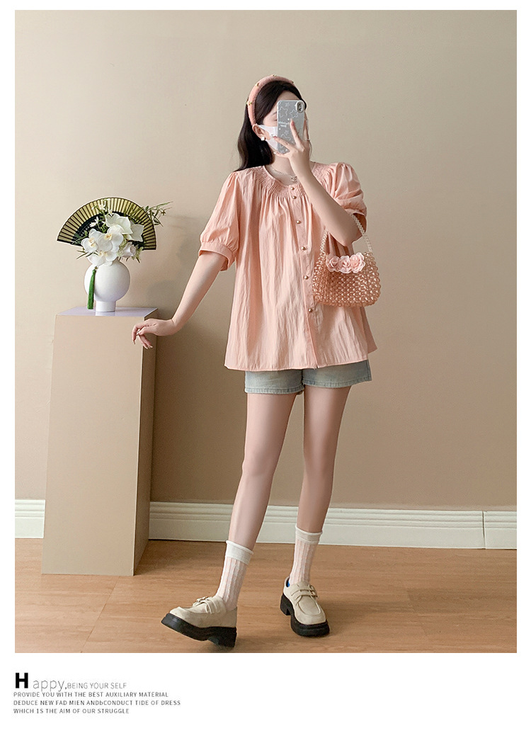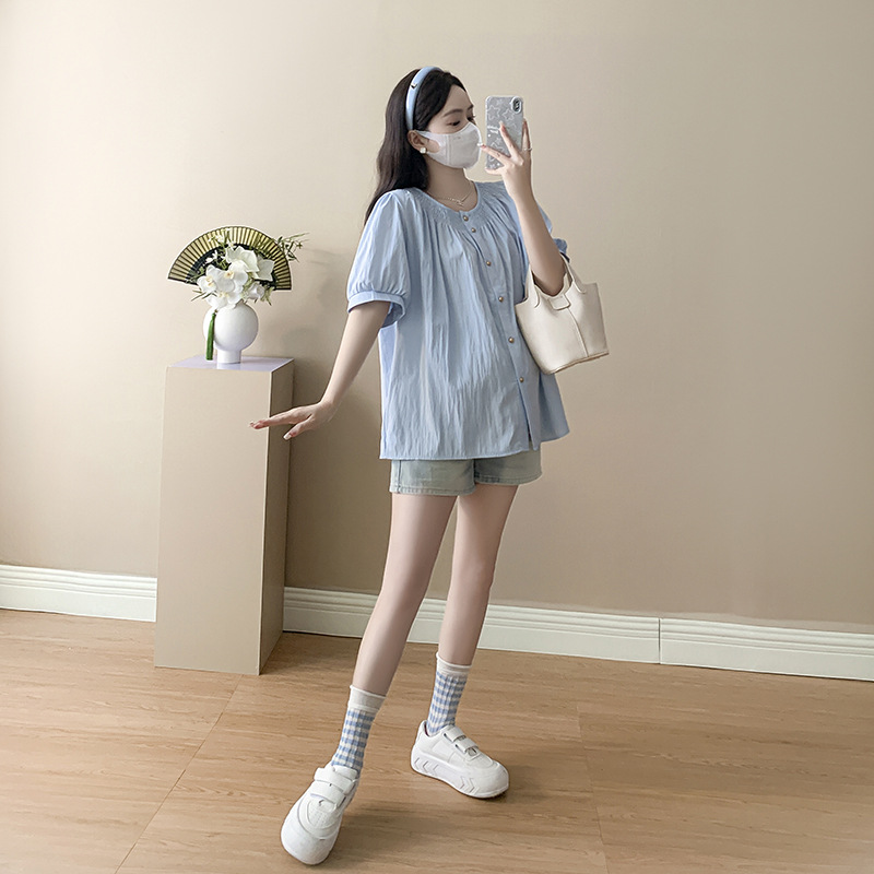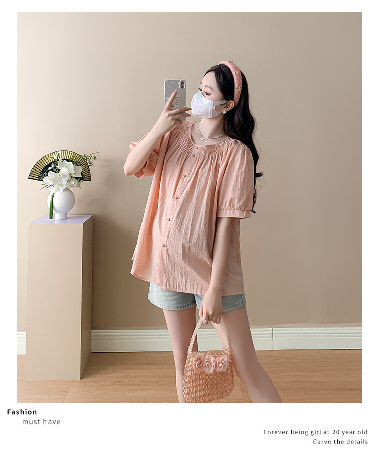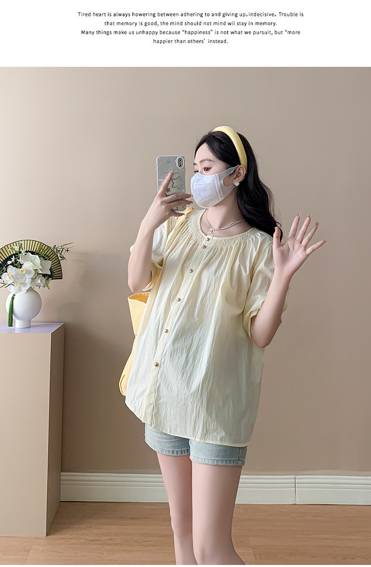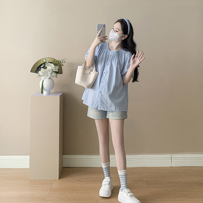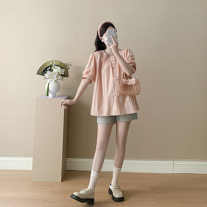 출산복 2025 여름 신작 달콤하고 패셔너블한 쉬폰 루즈 셔츠, 모유 수유용 다용도 상의