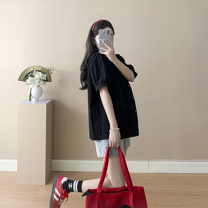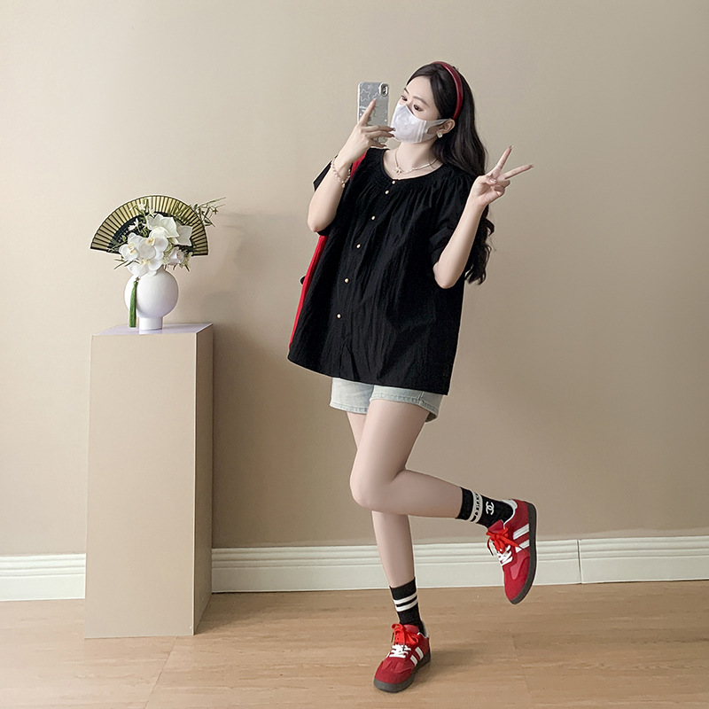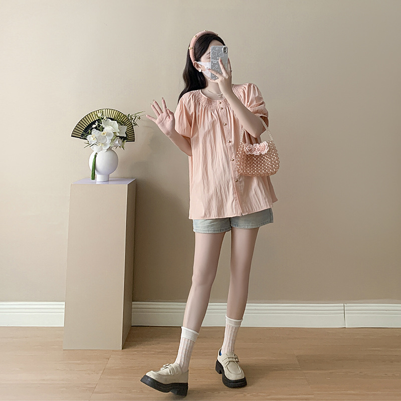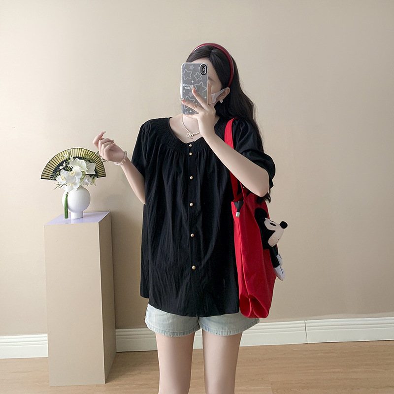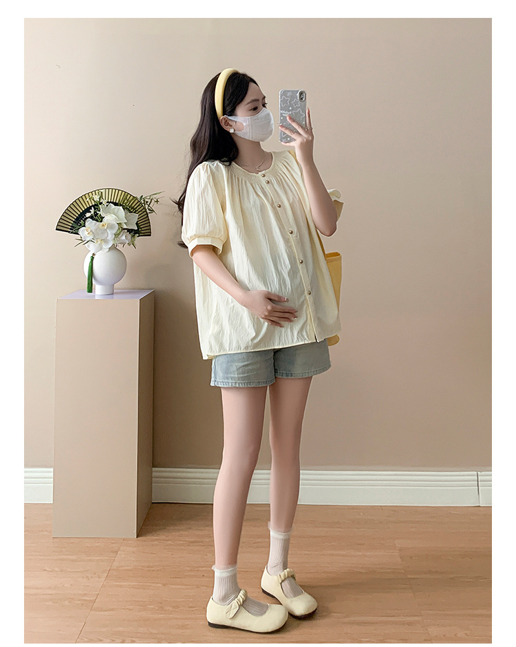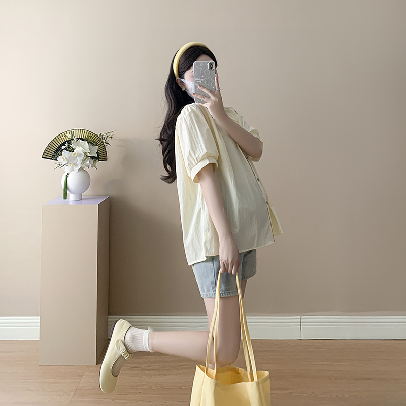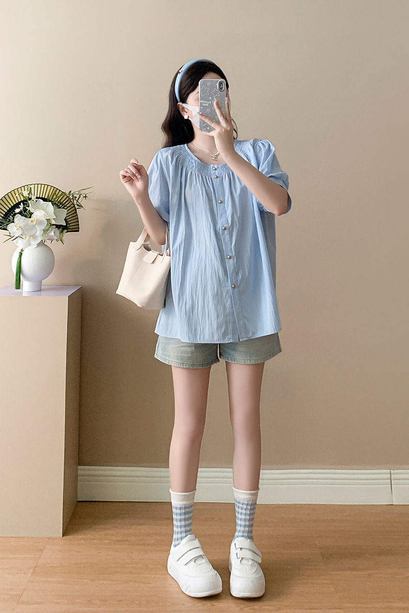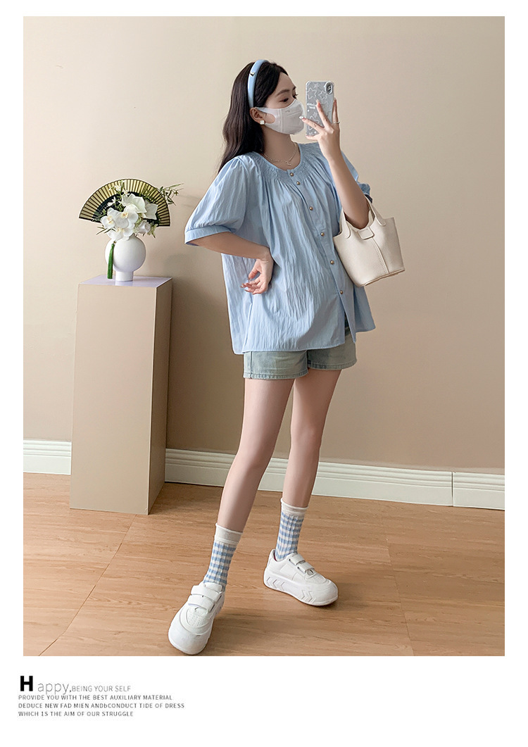 출산복 2025 여름 신작 달콤하고 패셔너블한 쉬폰 루즈 셔츠, 모유 수유용 다용도 상의