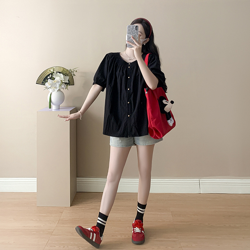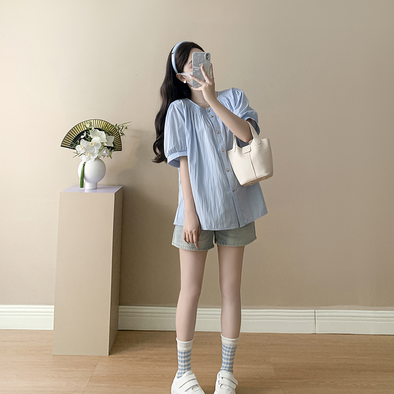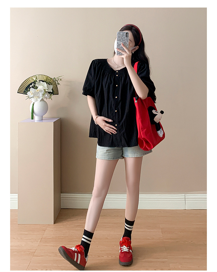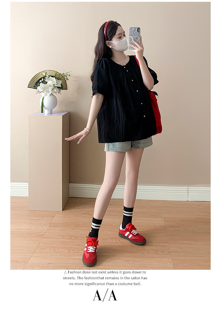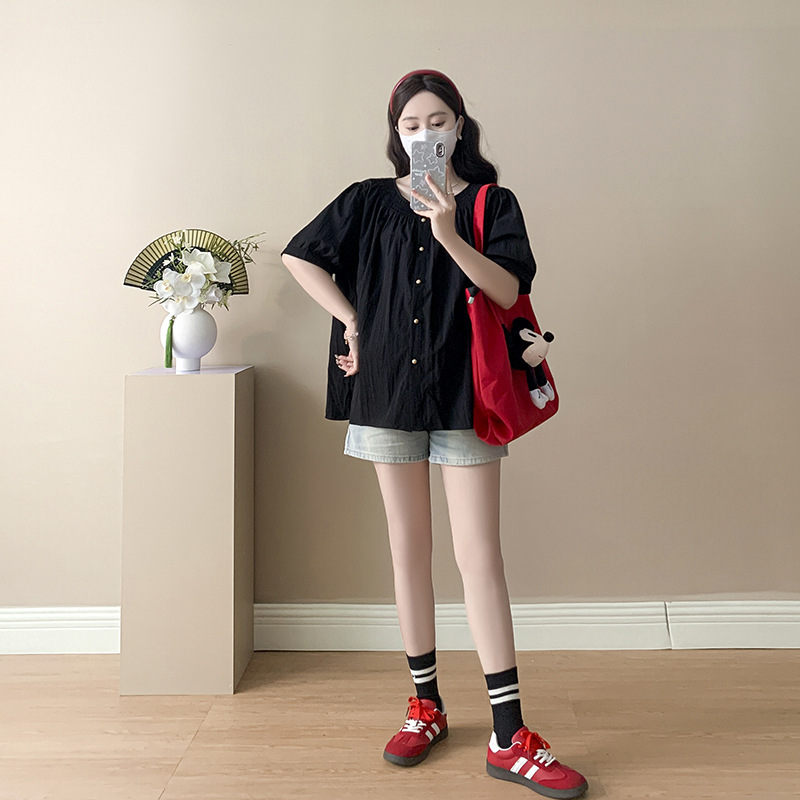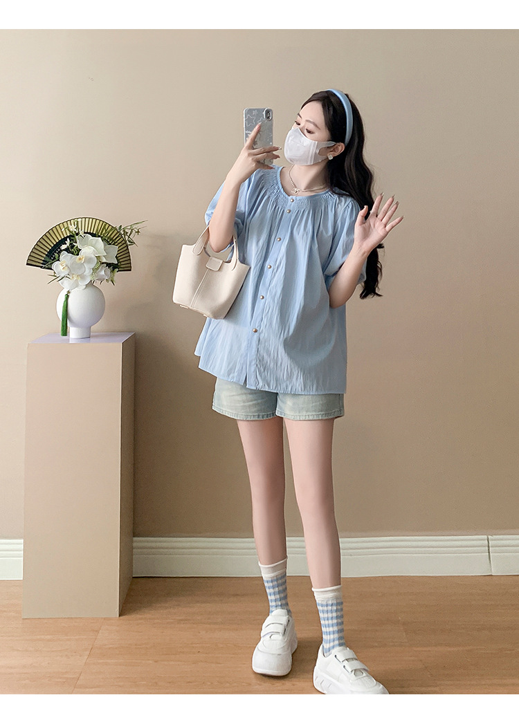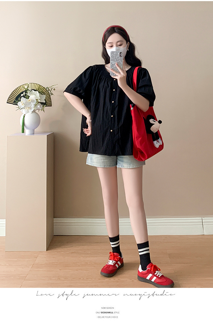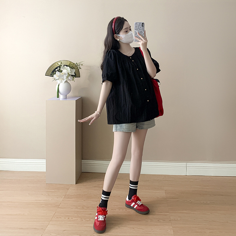 출산복 2025 여름 신작 달콤하고 패셔너블한 쉬폰 루즈 셔츠, 모유 수유용 다용도 상의