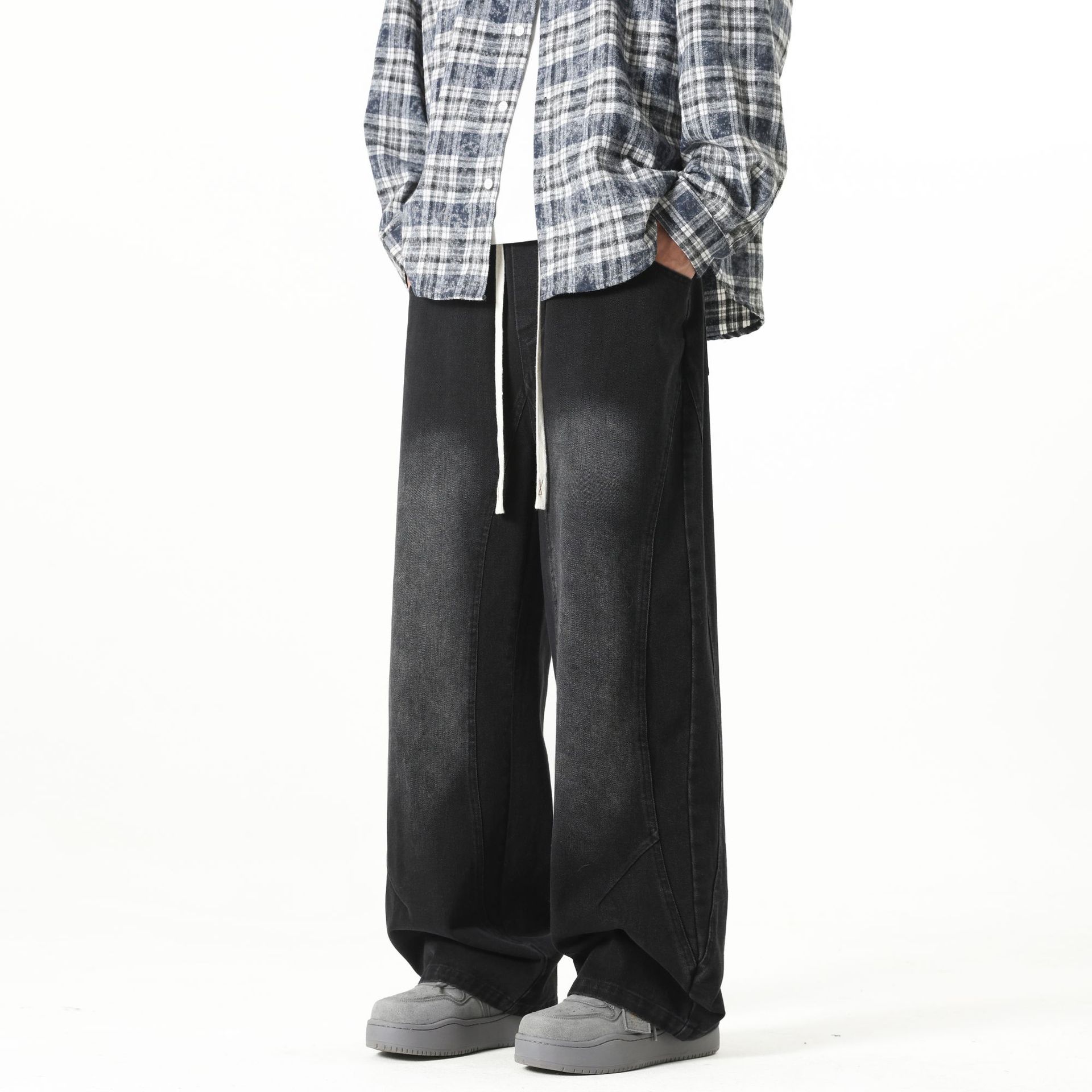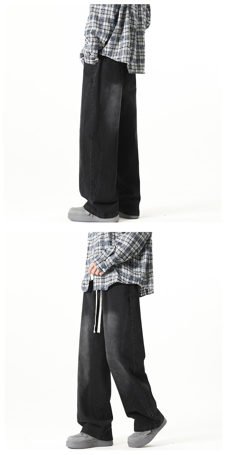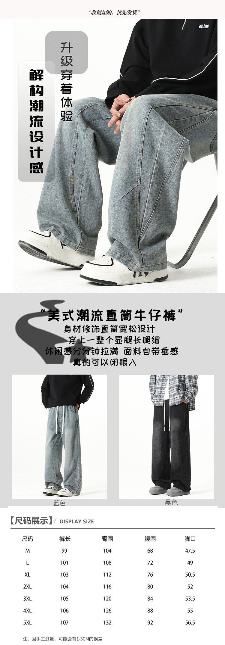 봄 뉴 블랙 청바지 남자 루즈 스트레이트 캐주얼 올 매치 플러스 사이즈 바지 남자 아메리칸 스타일 레트로 하이 스트리트스토어 가기