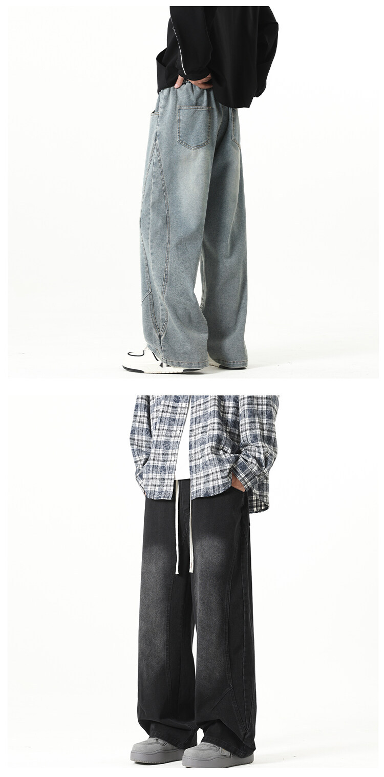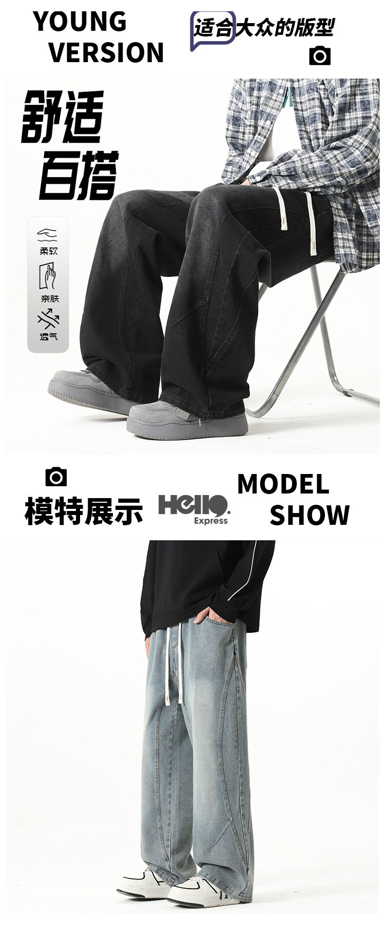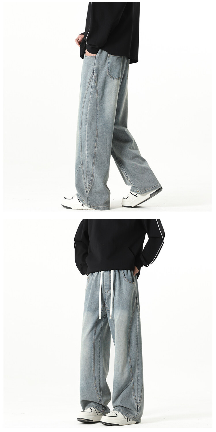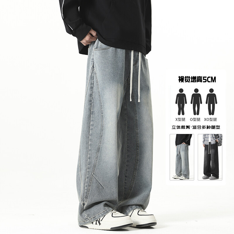 봄 뉴 블랙 청바지 남자 루즈 스트레이트 캐주얼 올 매치 플러스 사이즈 바지 남자 아메리칸 스타일 레트로 하이 스트리트스토어 가기