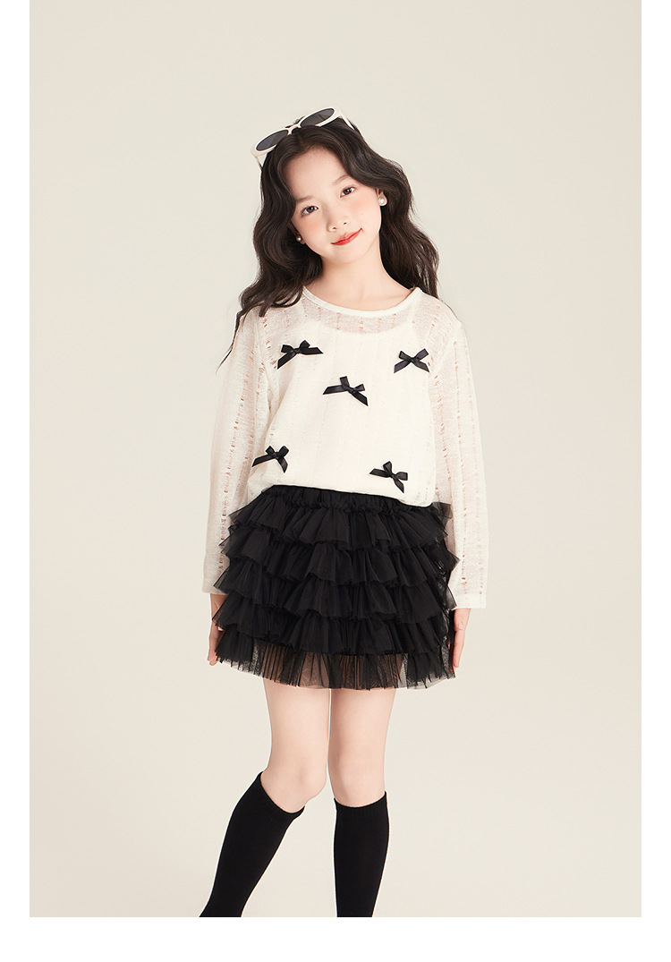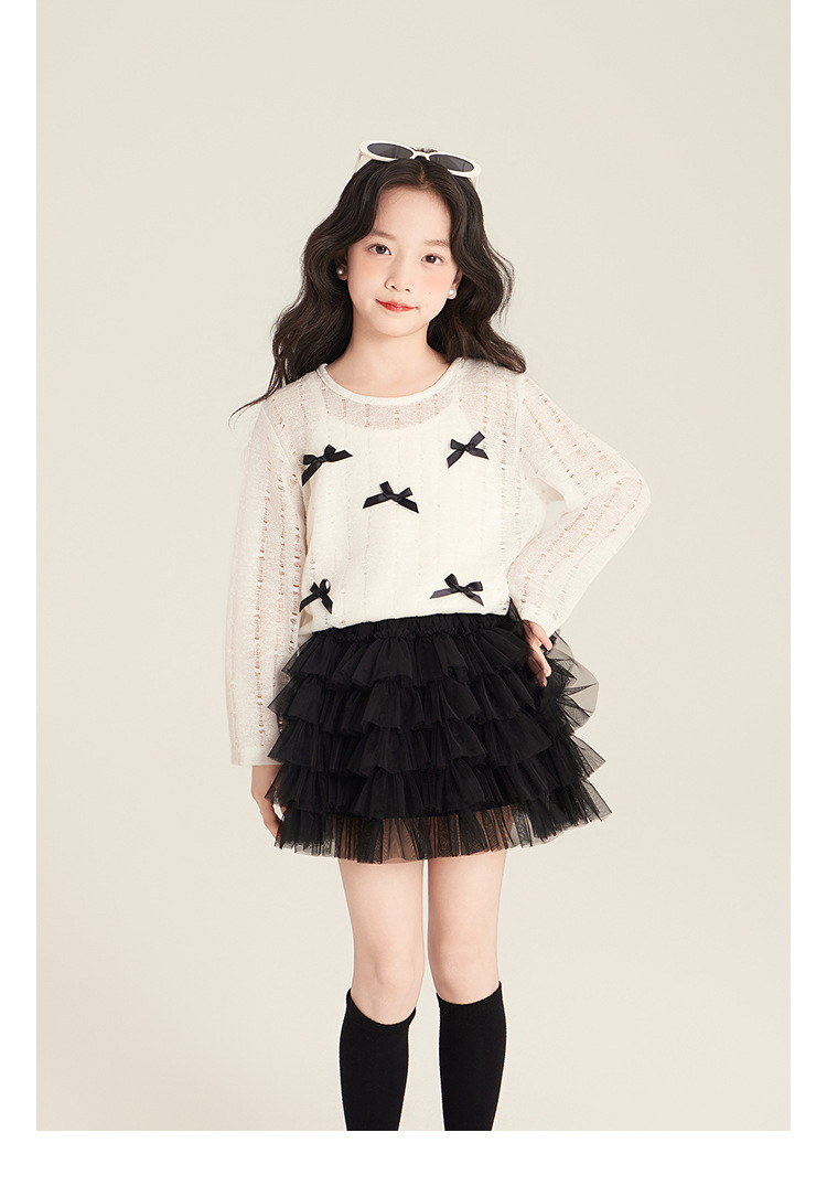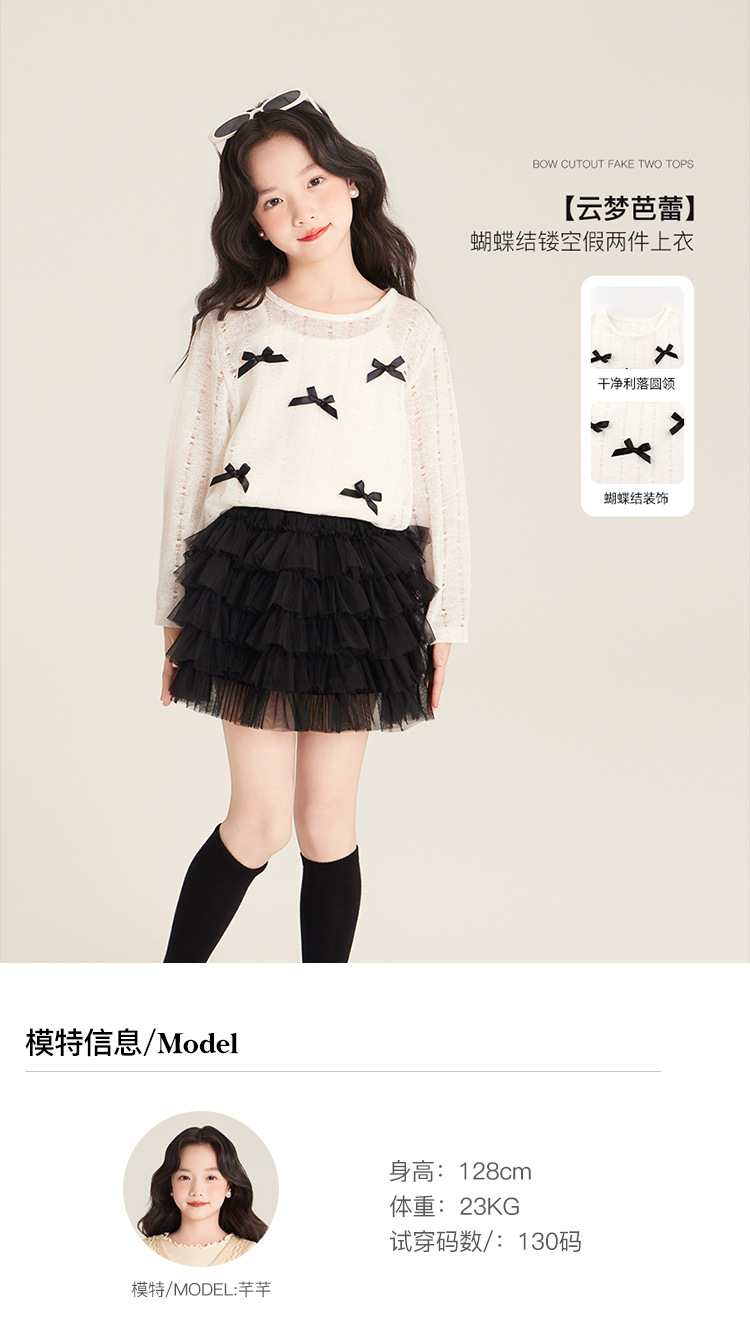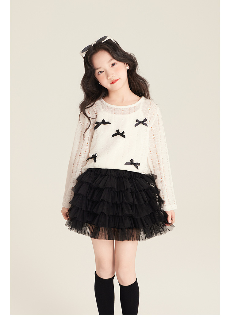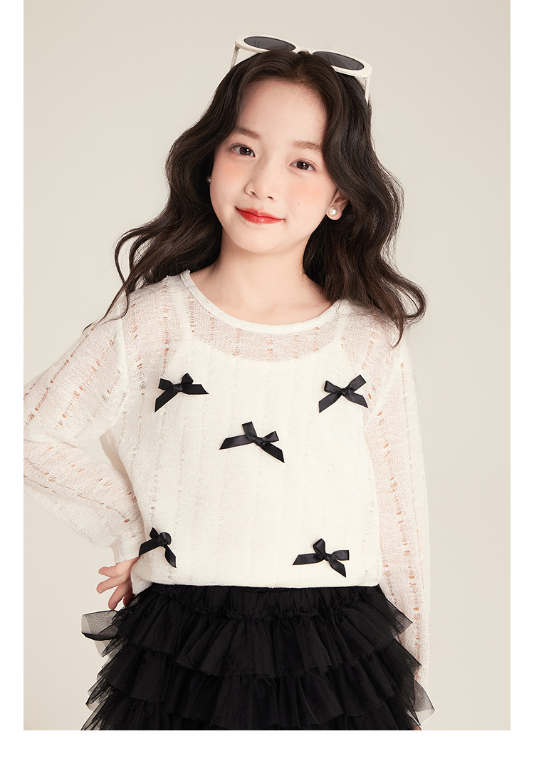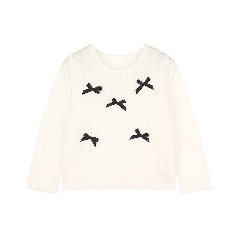 Amybaby Girls 'Top Spring 2025 New Hollow-out Bow 스택 스웨터 화이트 슬링스토어 가기