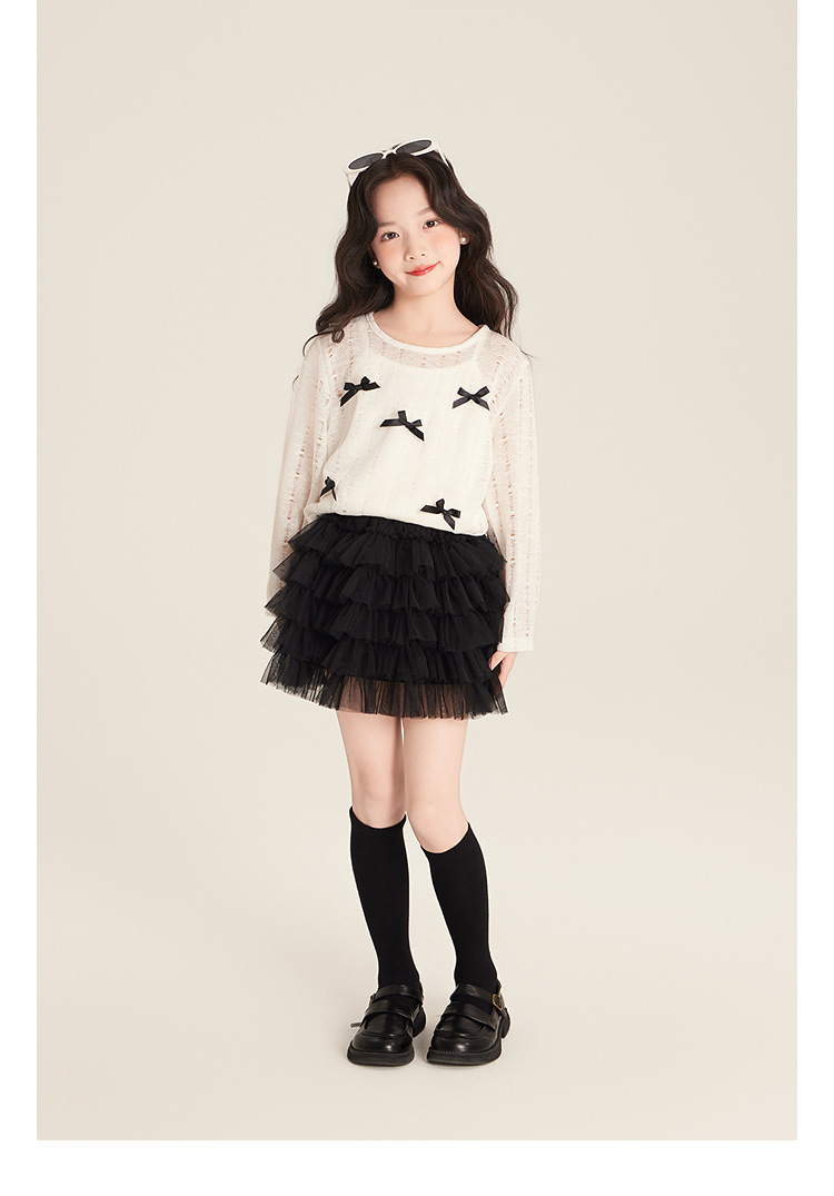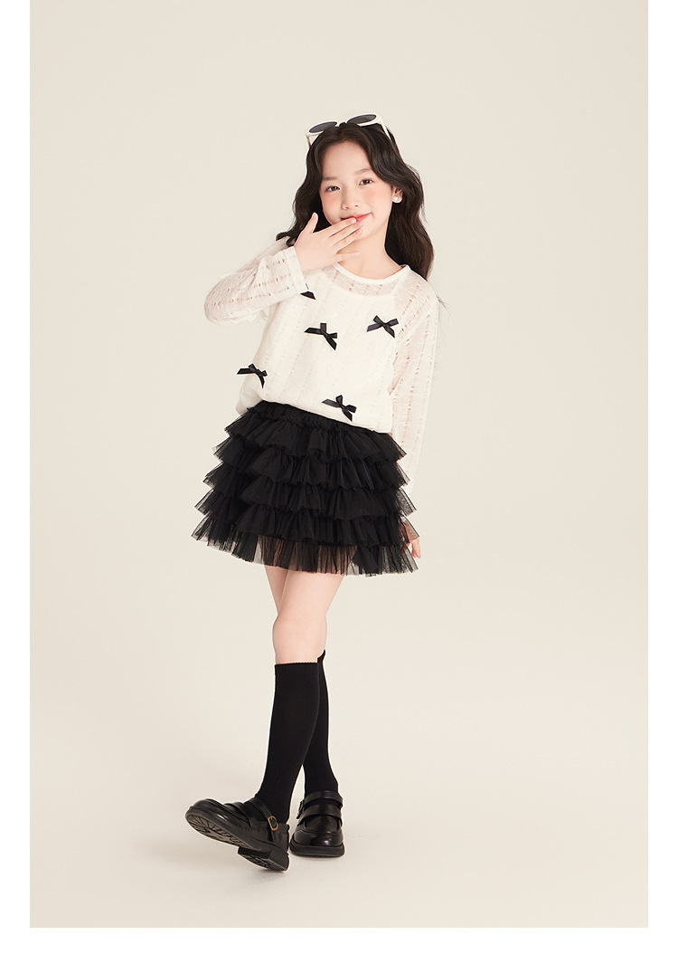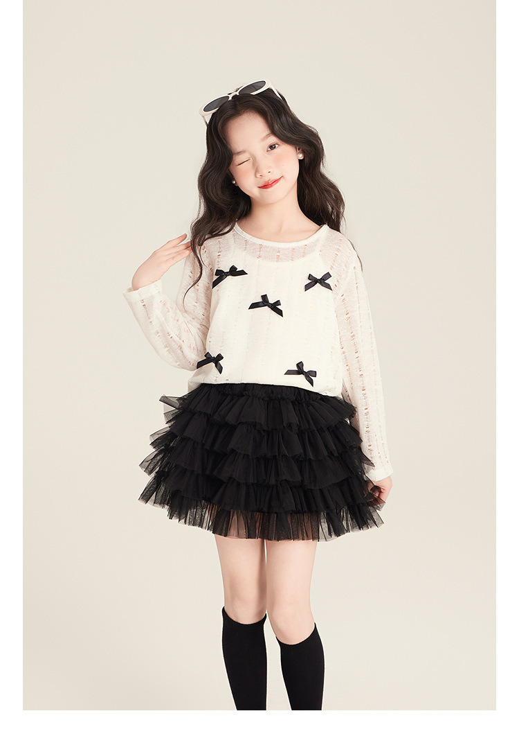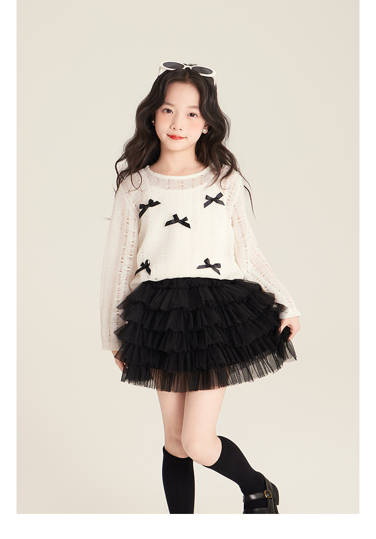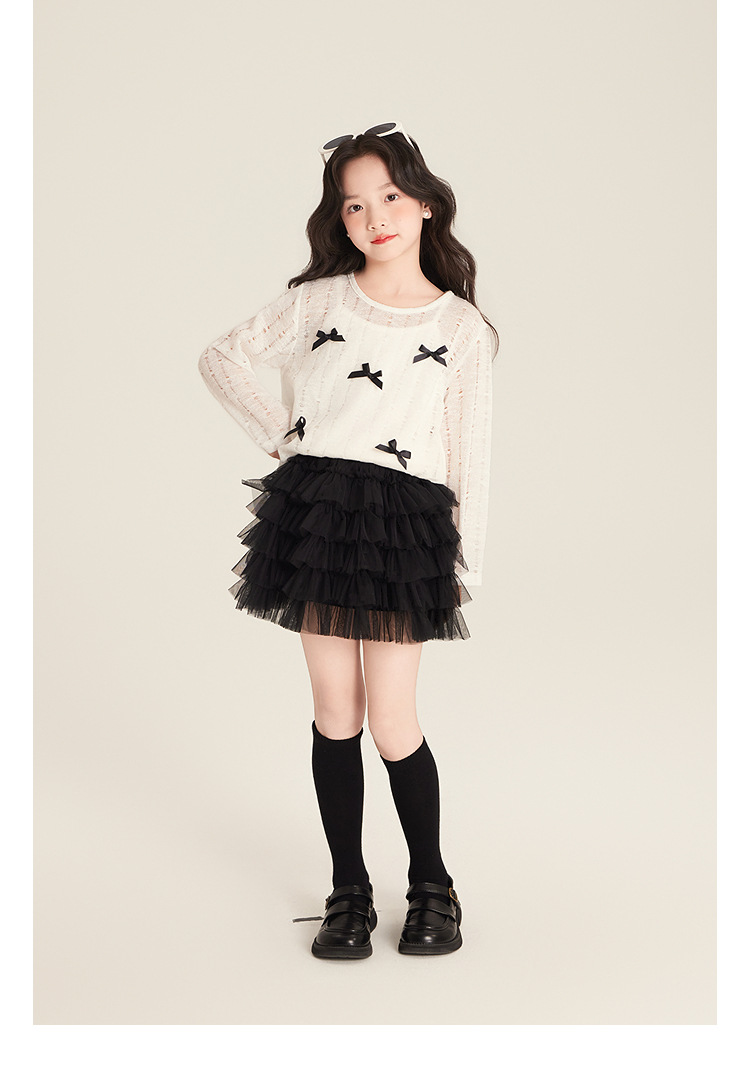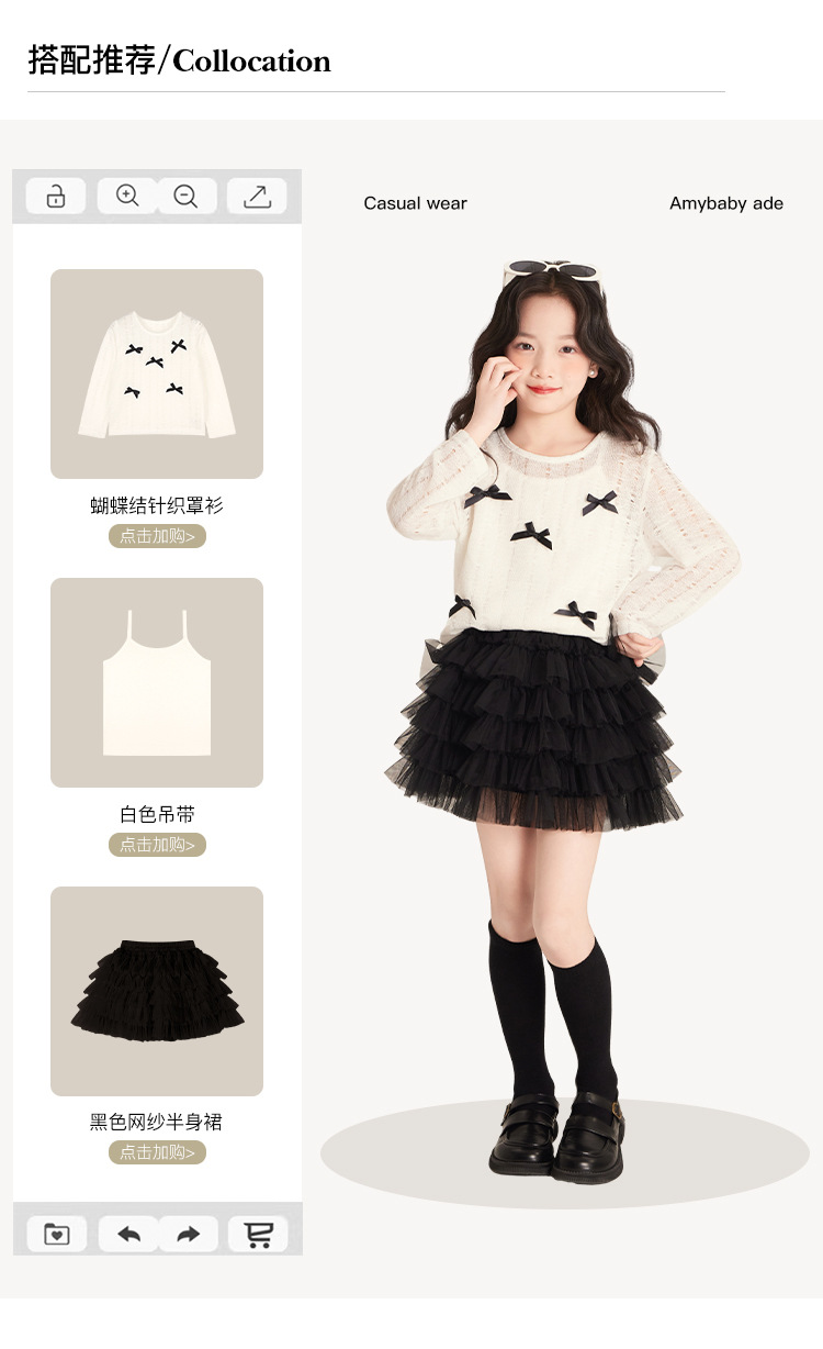Amybaby Girls 'Top Spring 2025 New Hollow-out Bow 스택 스웨터 화이트 슬링스토어 가기