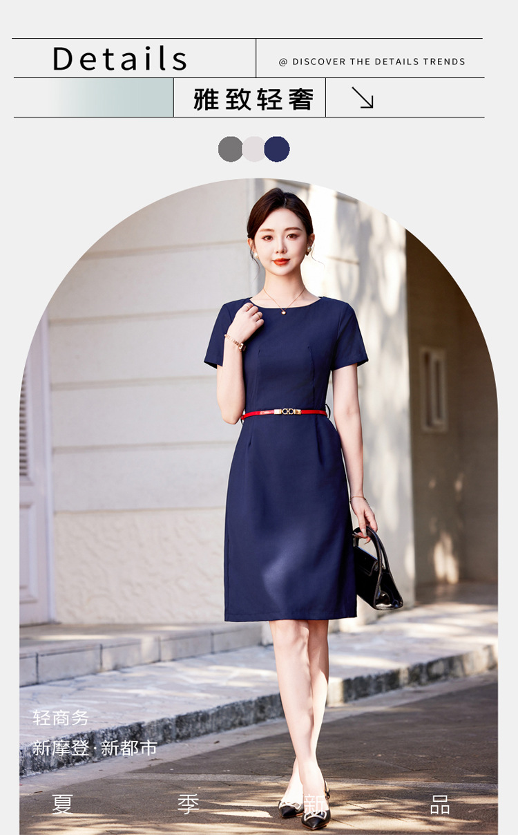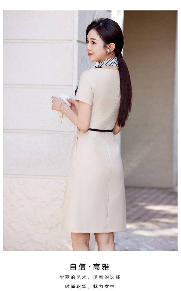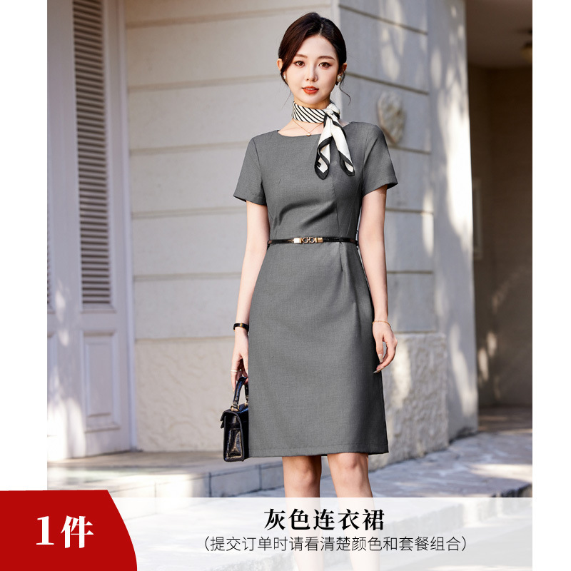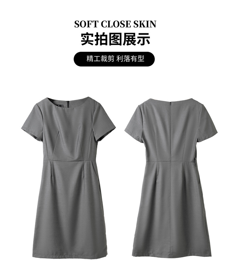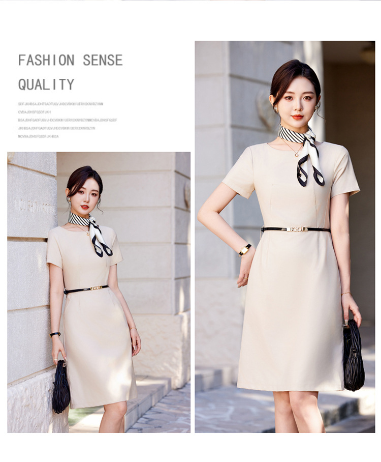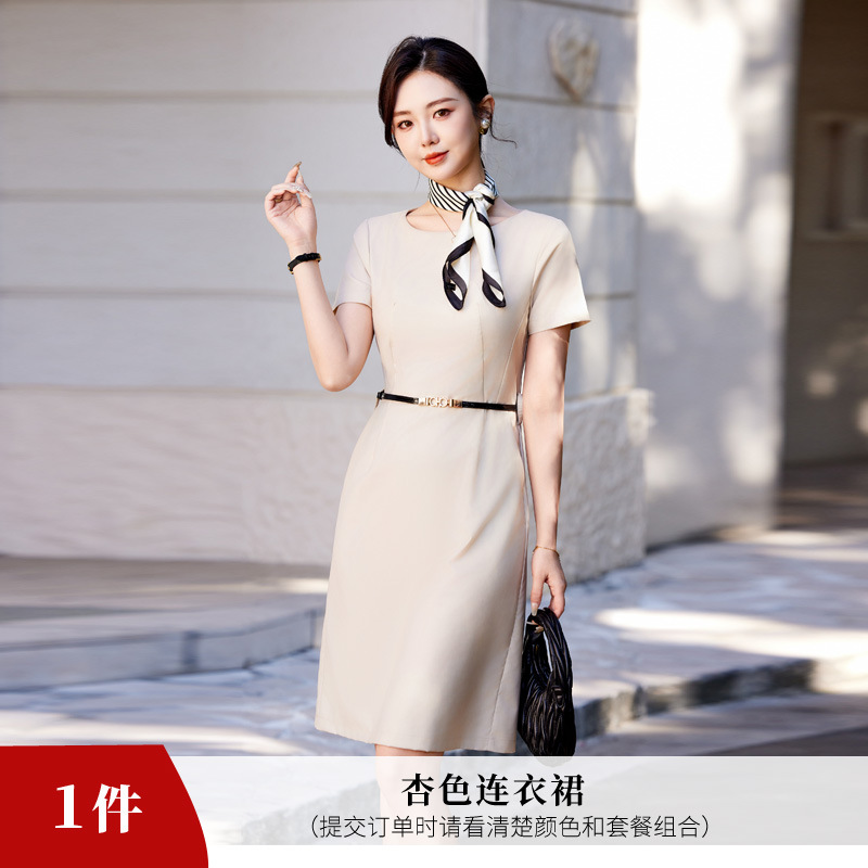 전문 살구색 원피스 여성의 여름 기질 슬리밍 기질 엉덩이 원피스 보석 가게 미용사 작업복스토어 가기