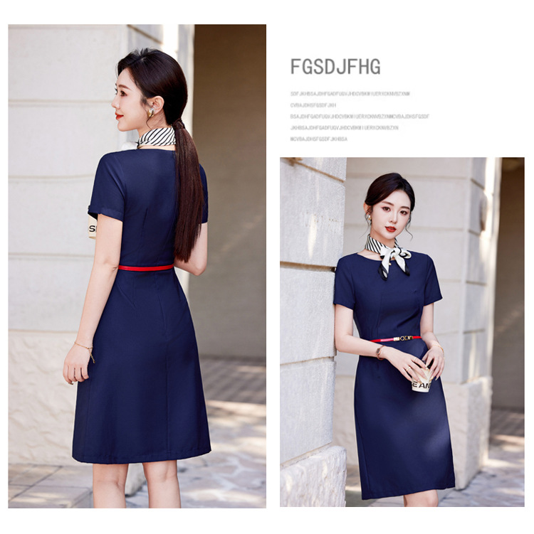 전문 살구색 원피스 여성의 여름 기질 슬리밍 기질 엉덩이 원피스 보석 가게 미용사 작업복