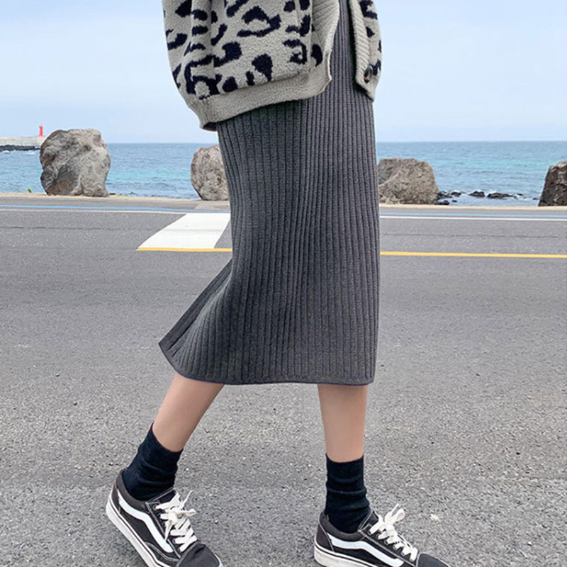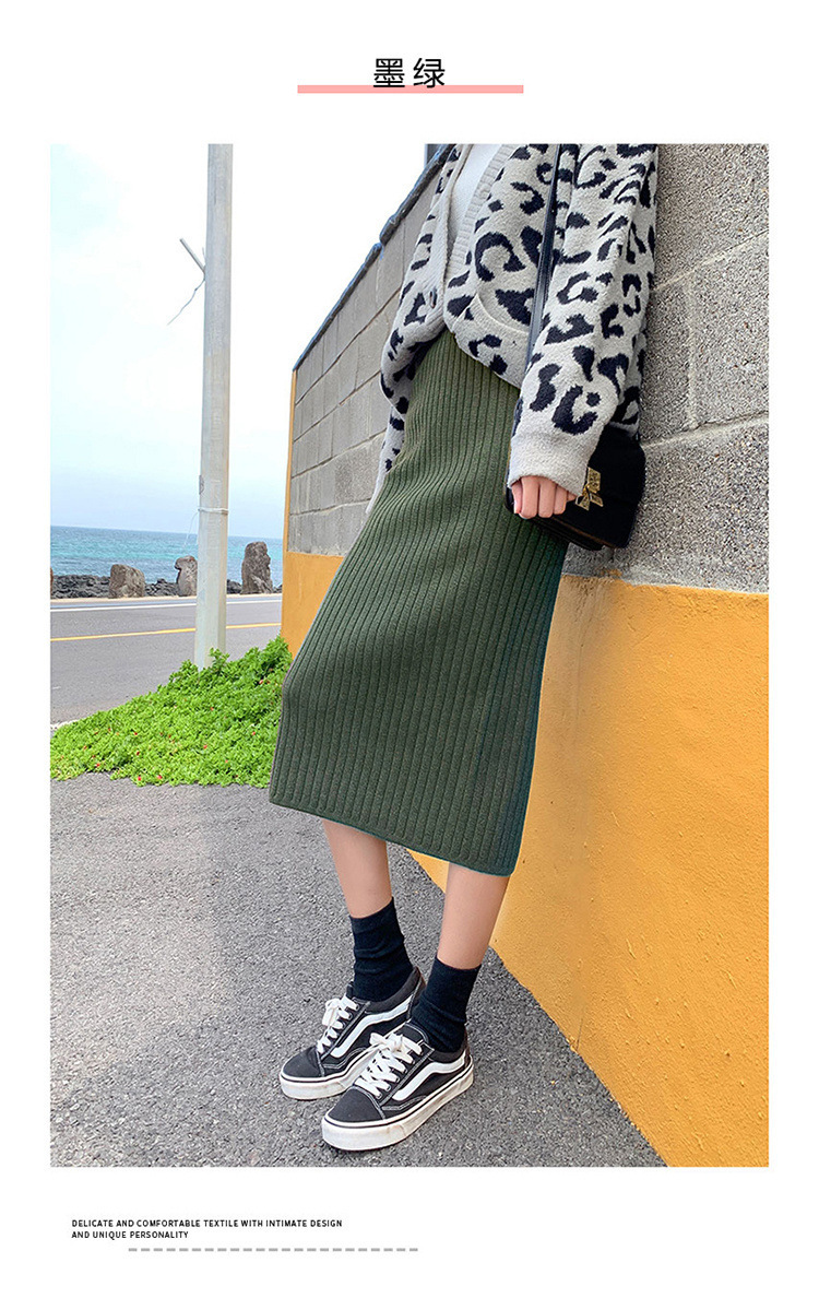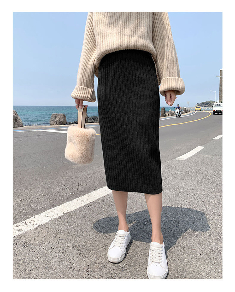 2024 년 가을과 겨울을위한 니트 치마 엉덩이 스커트 중장 양모 스커트 높은 허리 분할 한 단계 스커트 새로운 양모 스커트스토어 가기