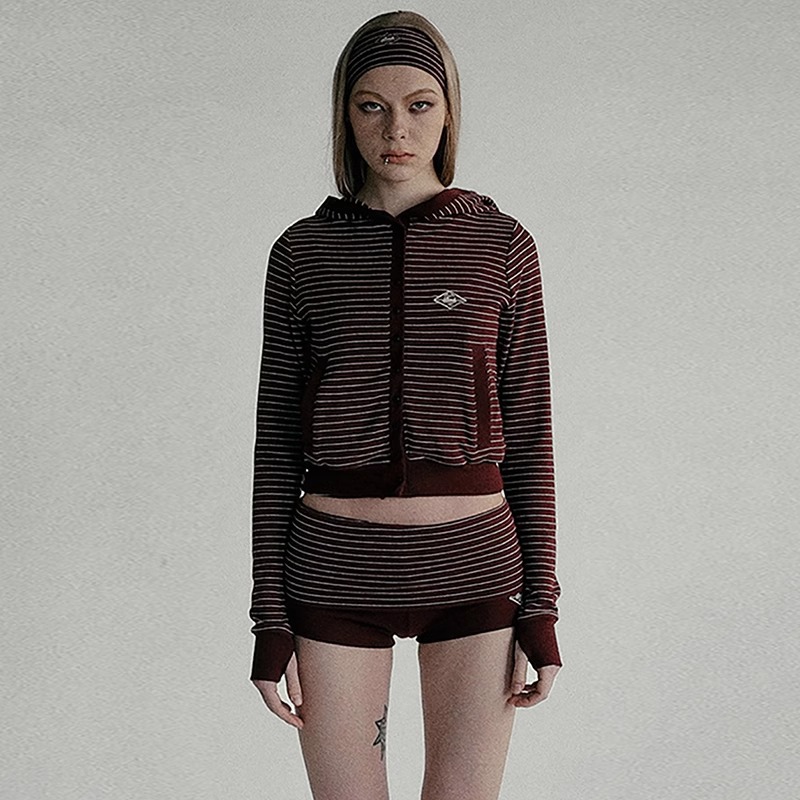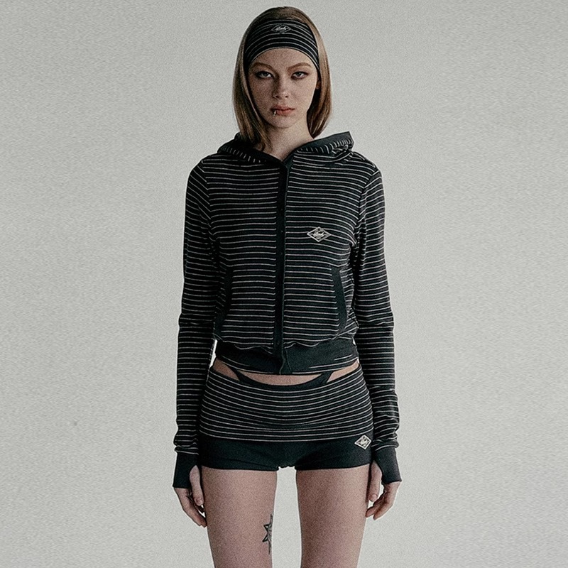 한국어 badblood bcac 시리즈 아메리칸 핫 걸 스트라이프 후드 티셔츠 여성 레트로 틈새 캐주얼 재킷