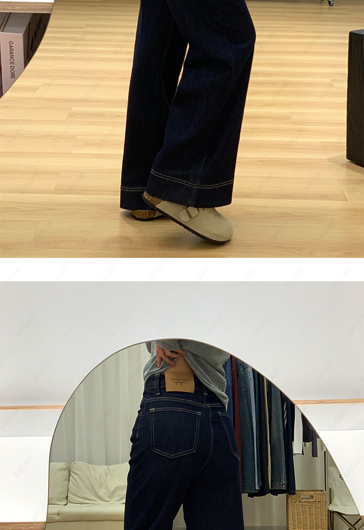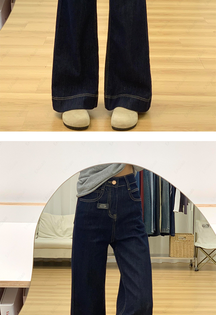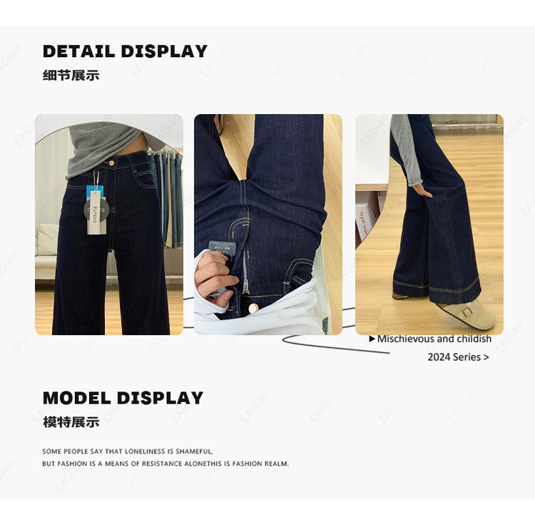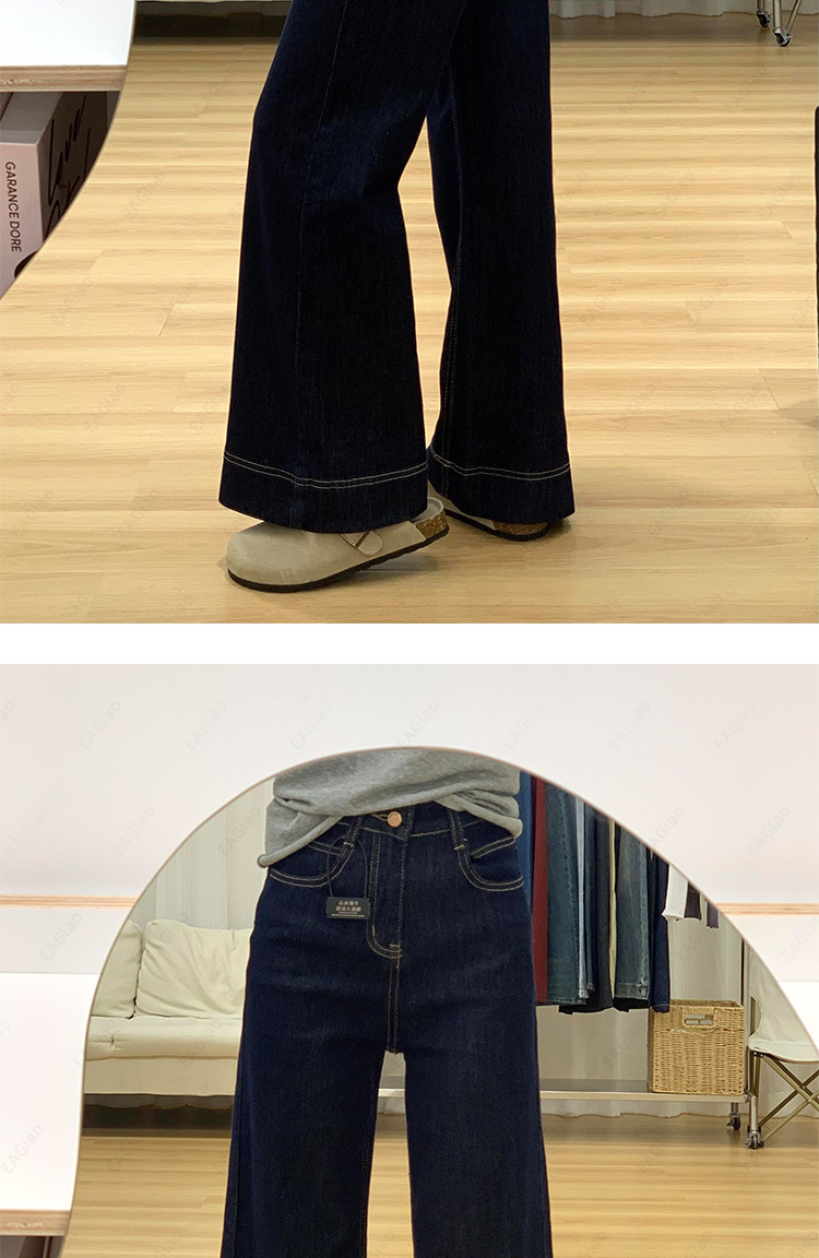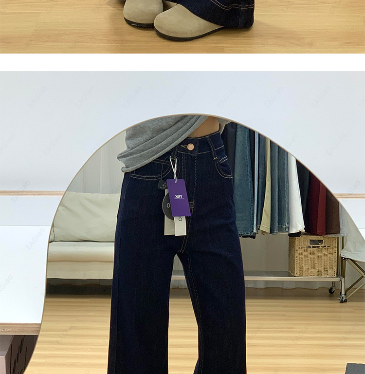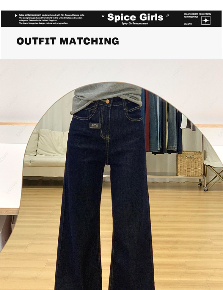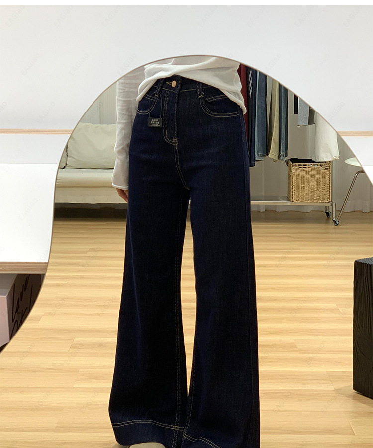 타닌 다크 블루 마이크로 와이드 레그 청바지 여성 2025 년 새로운 여름 높은 허리 슬리밍 게으른 스트레이트 바지스토어 가기