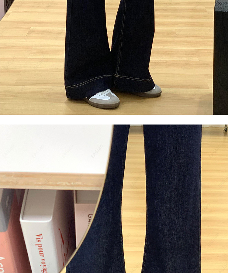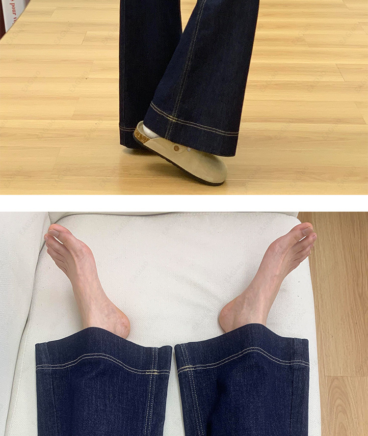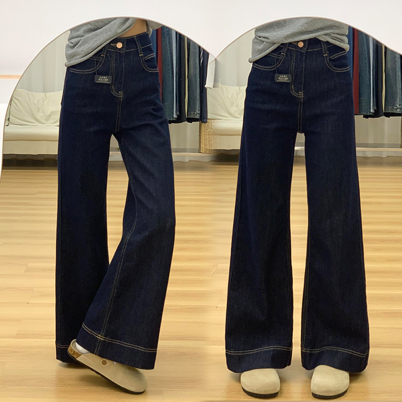 타닌 다크 블루 마이크로 와이드 레그 청바지 여성 2025 년 새로운 여름 높은 허리 슬리밍 게으른 스트레이트 바지