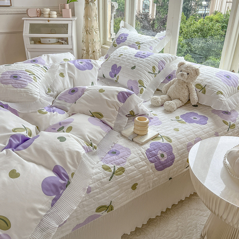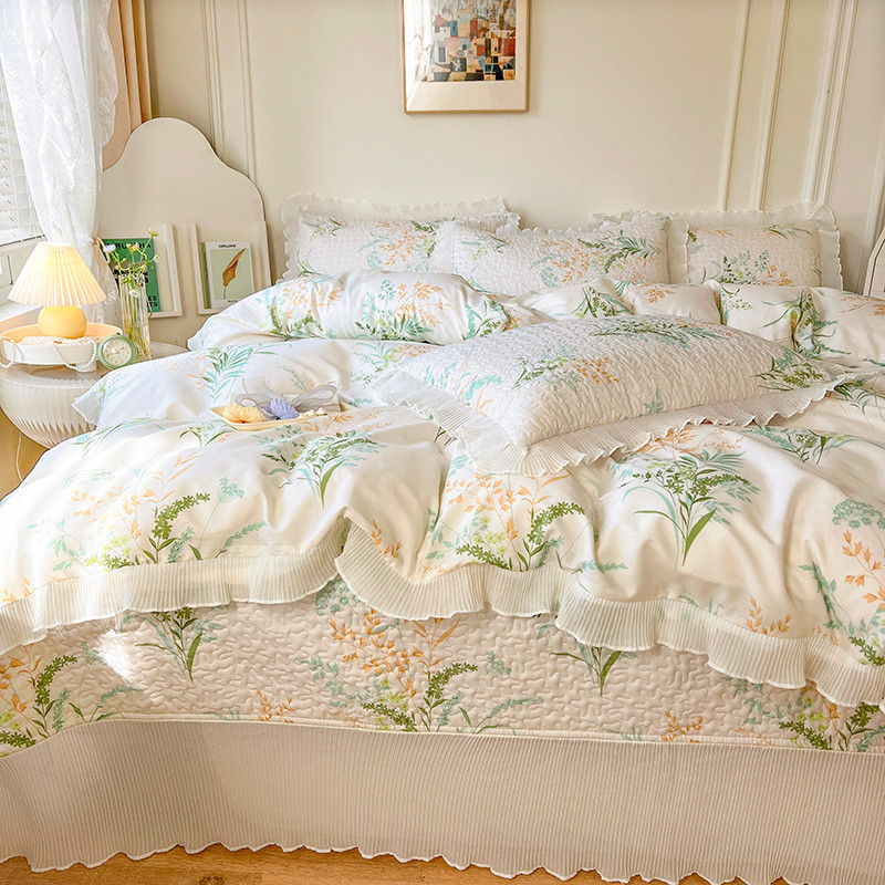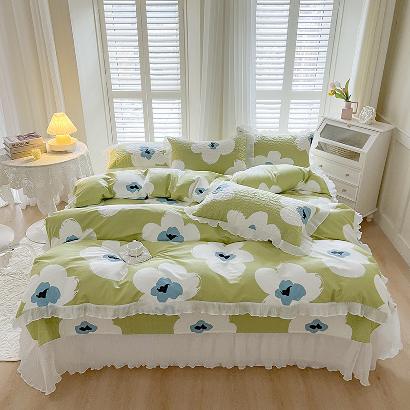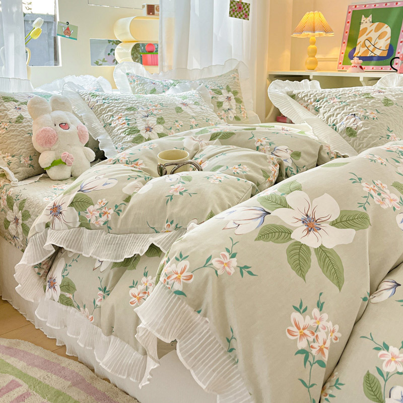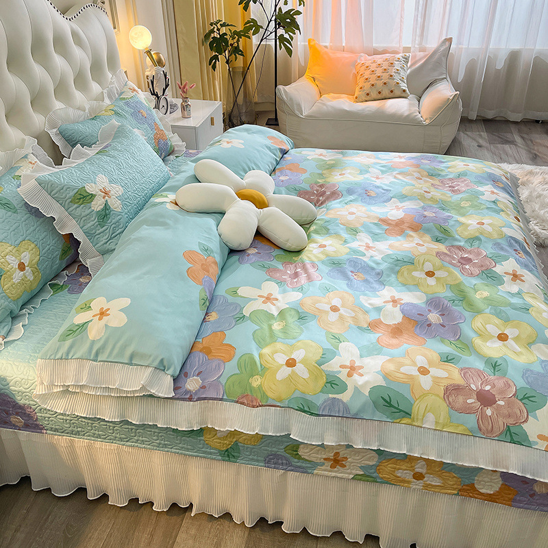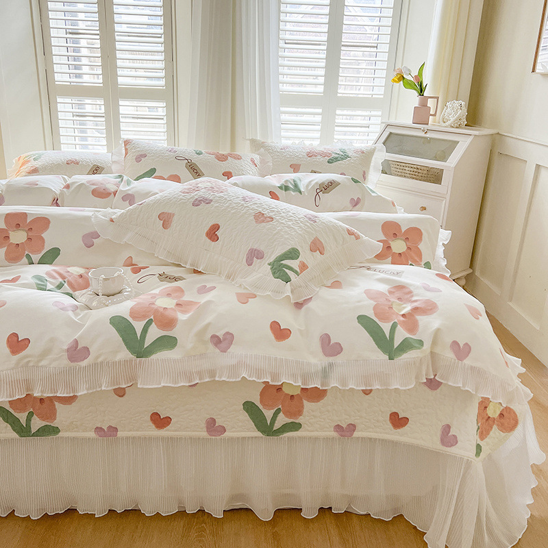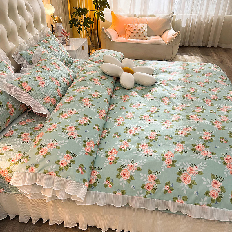 퓨어 코튼 베드 커버 4 피스 세트 인 스타일 퀼트 커버 한국식 레이스 베드 스커트 3 피스 세트 퀼트 침대 시트 4 시즌 스타일