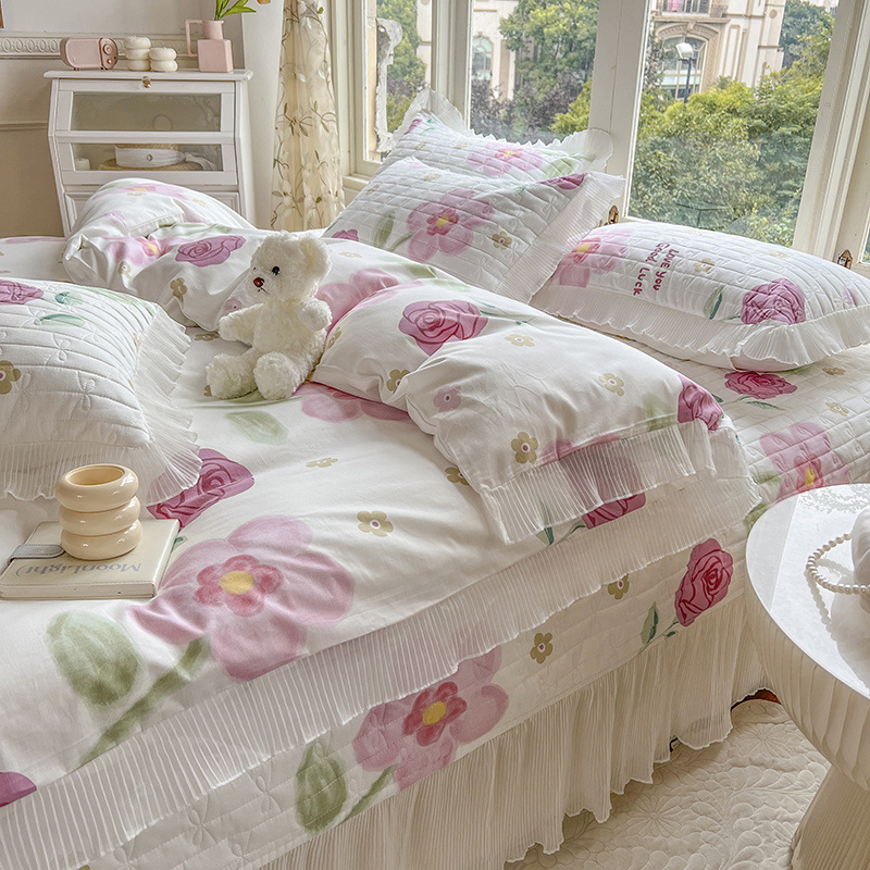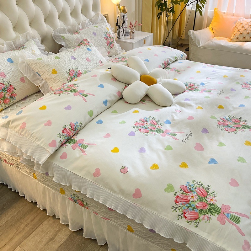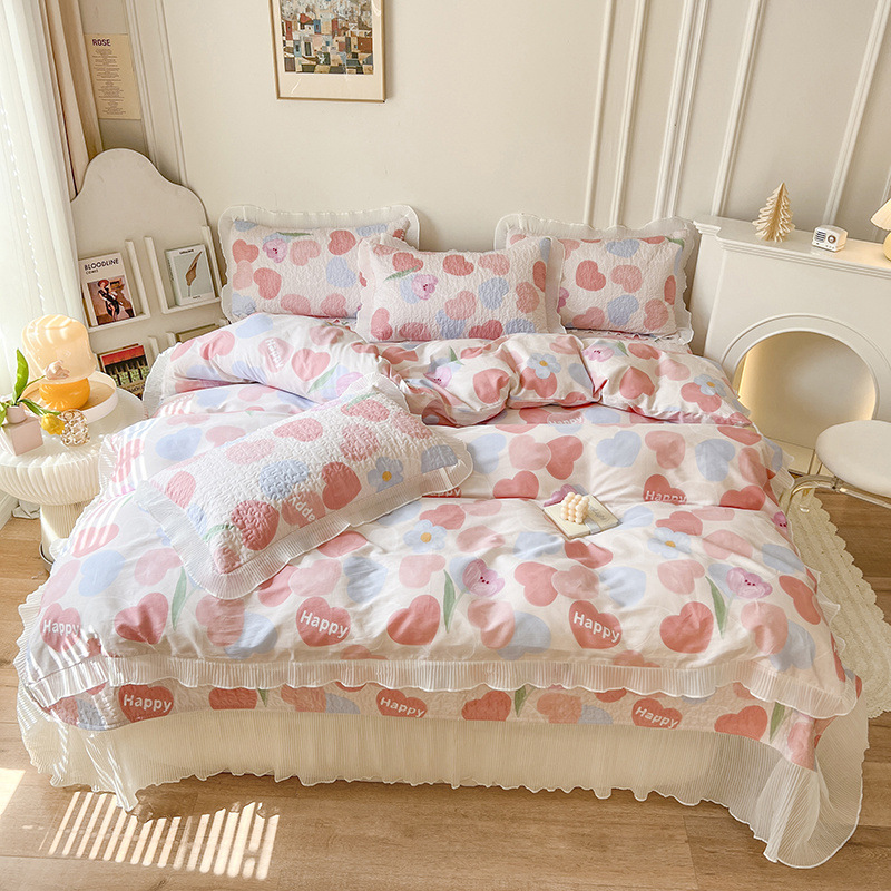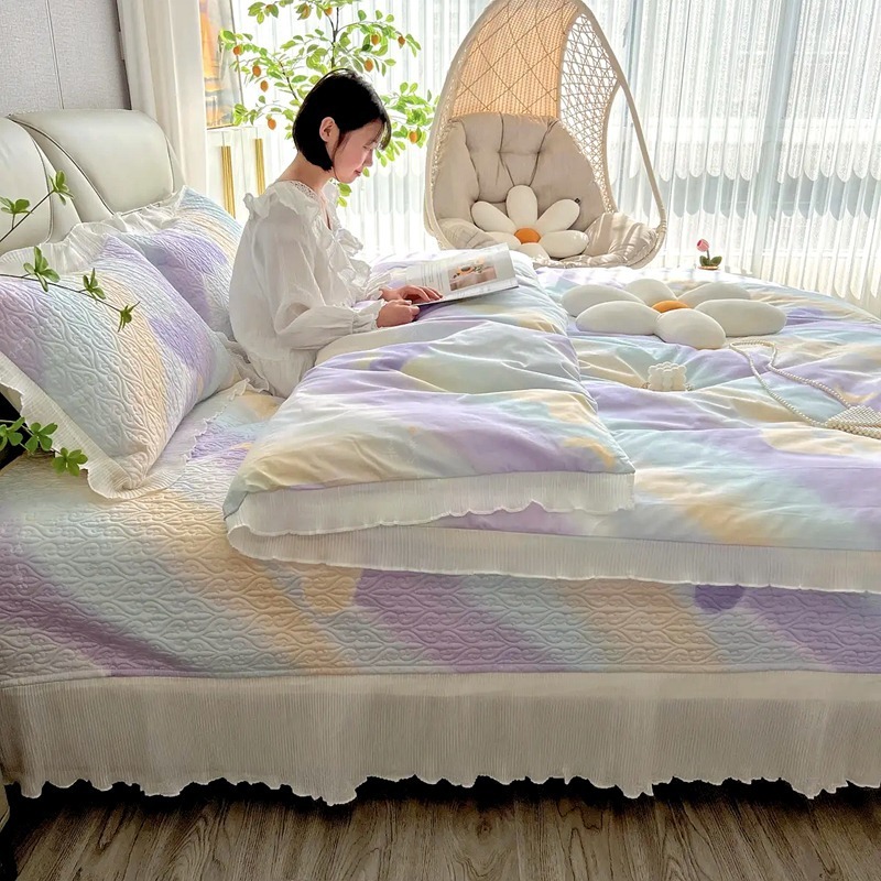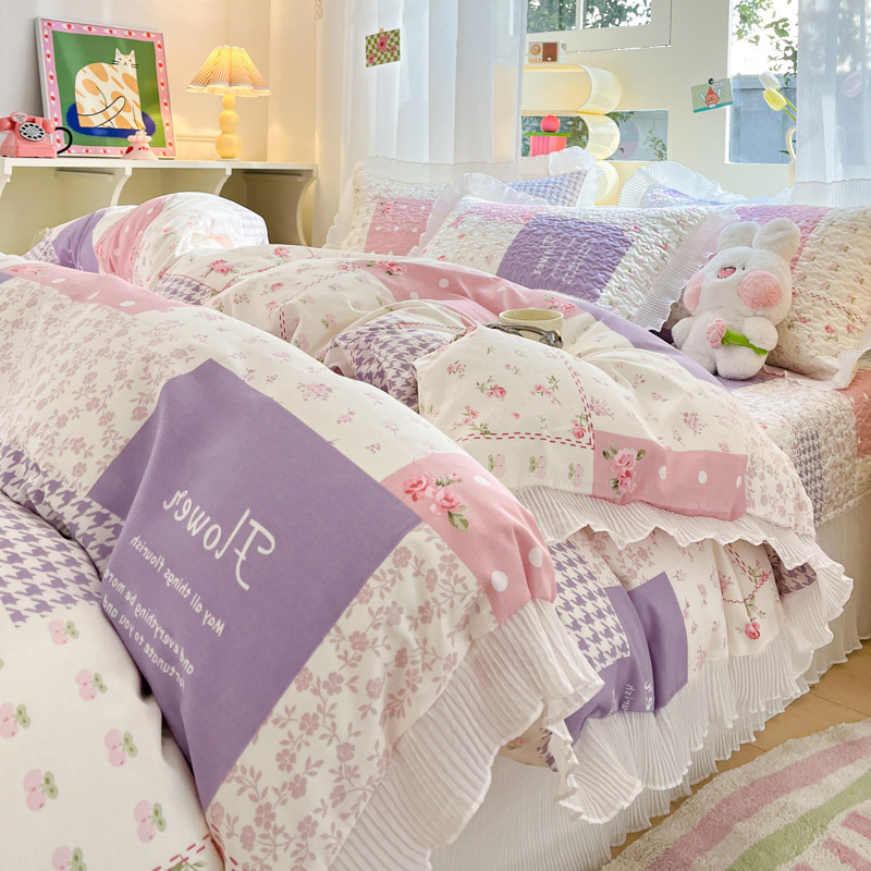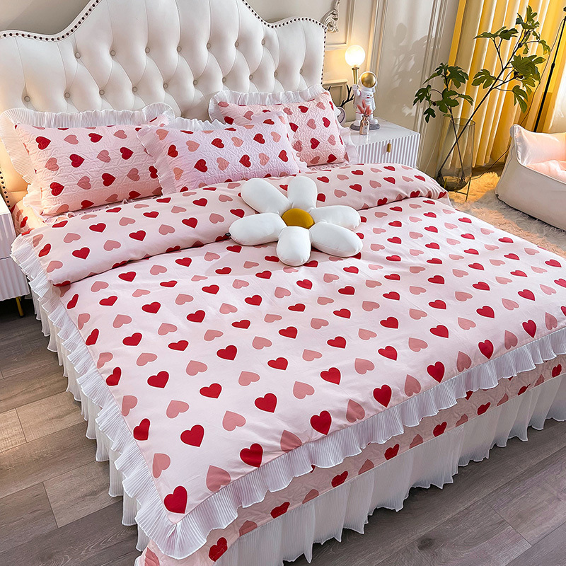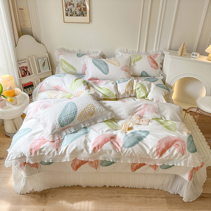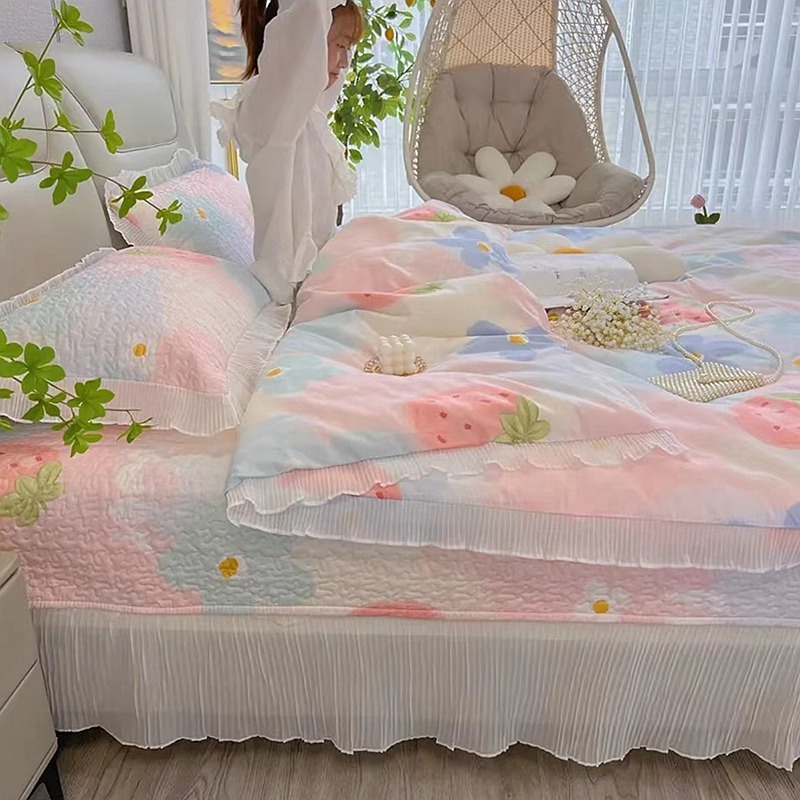퓨어 코튼 베드 커버 4 피스 세트 인 스타일 퀼트 커버 한국식 레이스 베드 스커트 3 피스 세트 퀼트 침대 시트 4 시즌 스타일