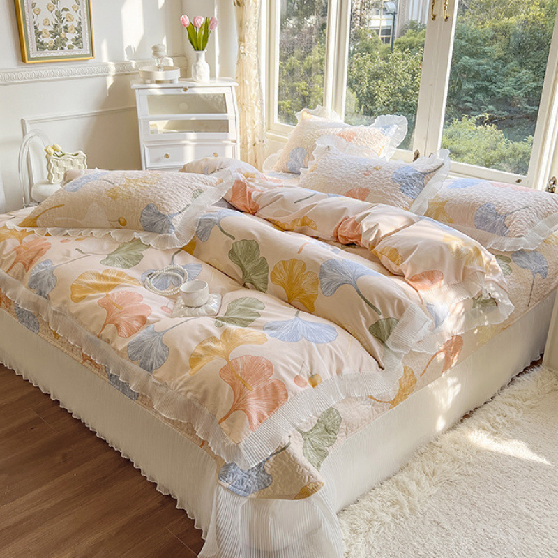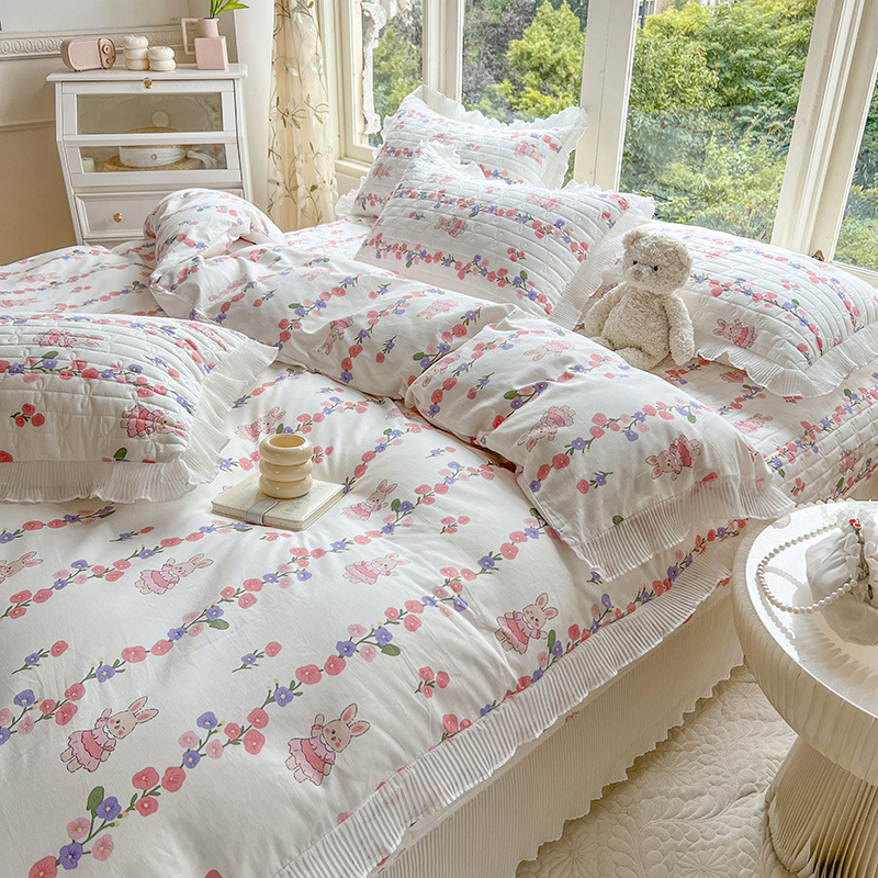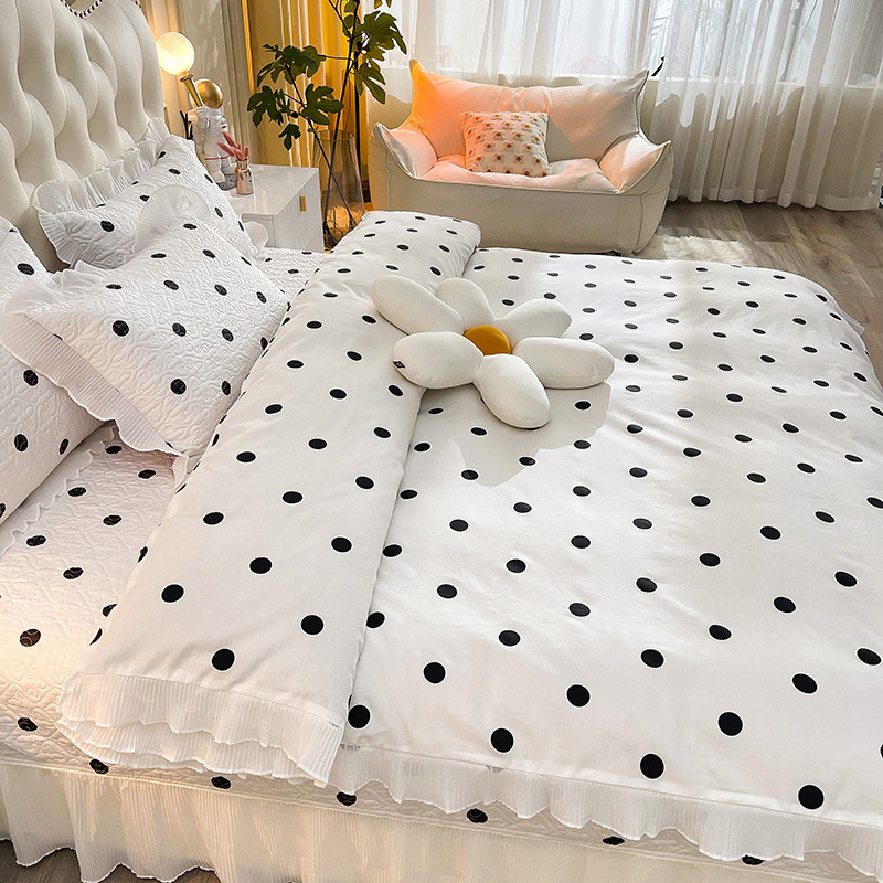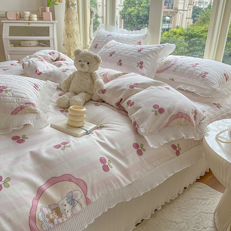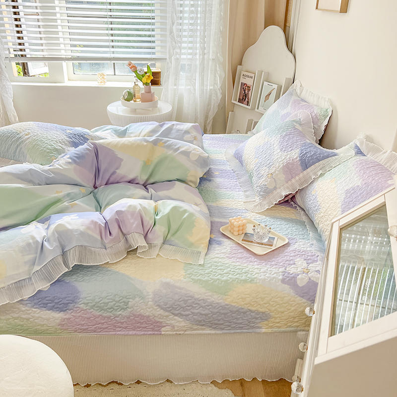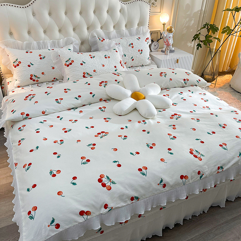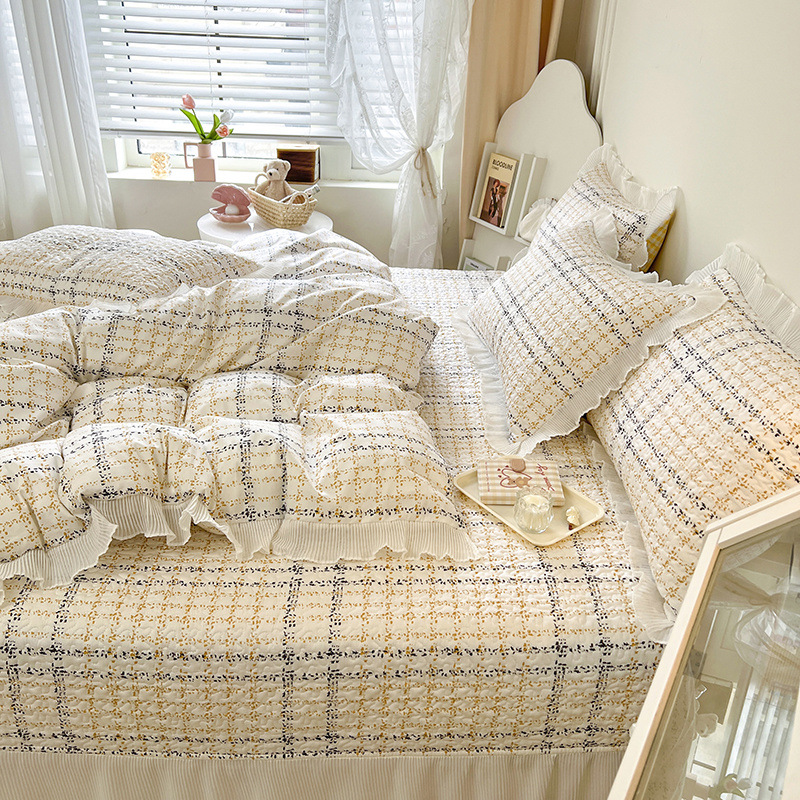 퓨어 코튼 베드 커버 4 피스 세트 인 스타일 퀼트 커버 한국식 레이스 베드 스커트 3 피스 세트 퀼트 침대 시트 4 시즌 스타일