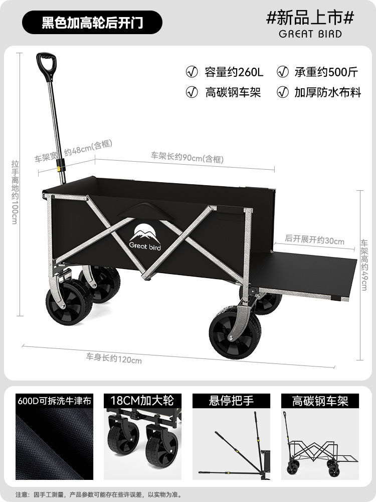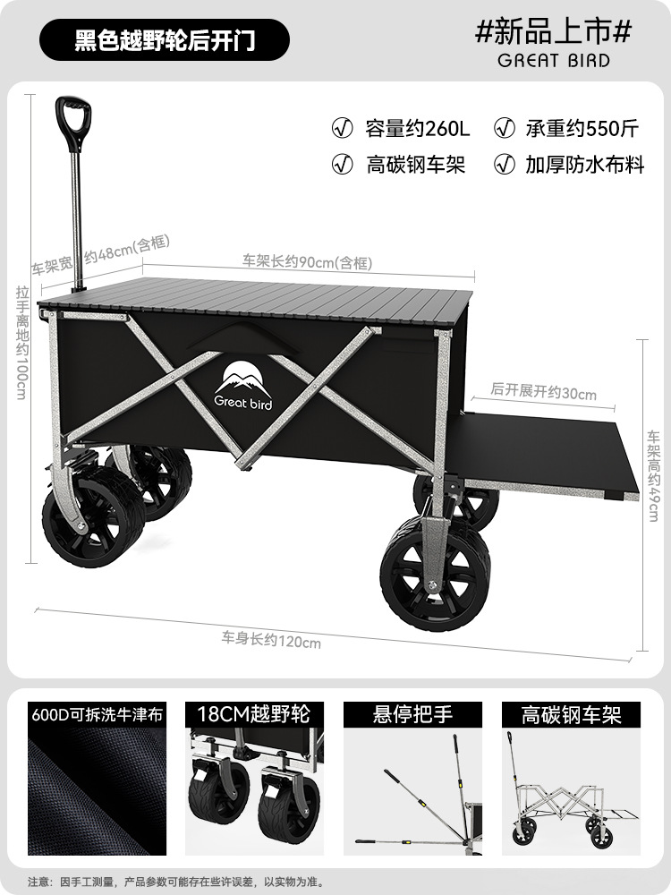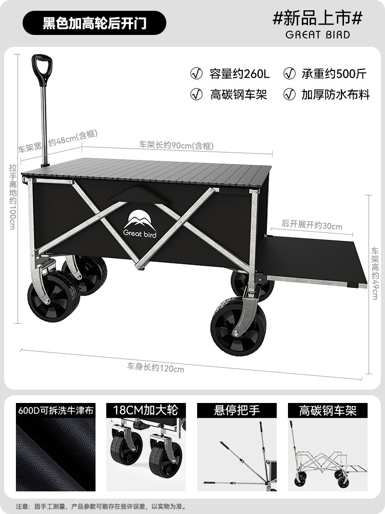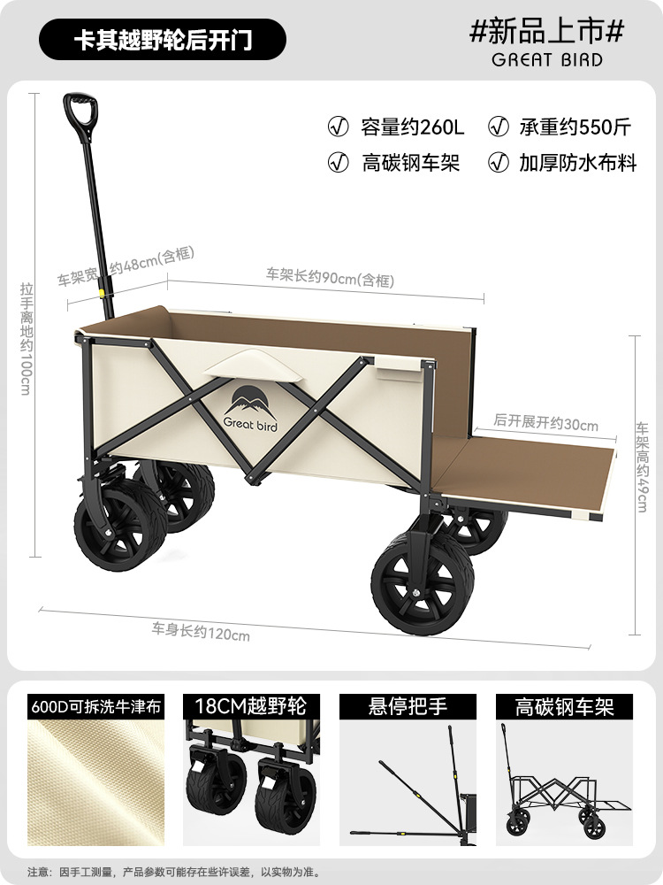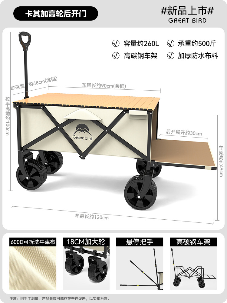 우수한 조류 캠핑 자동차 트롤리 야외 접이식 캠프 자동차 어린이 거짓말 캠핑 작은 트레일러 피크닉 트롤리