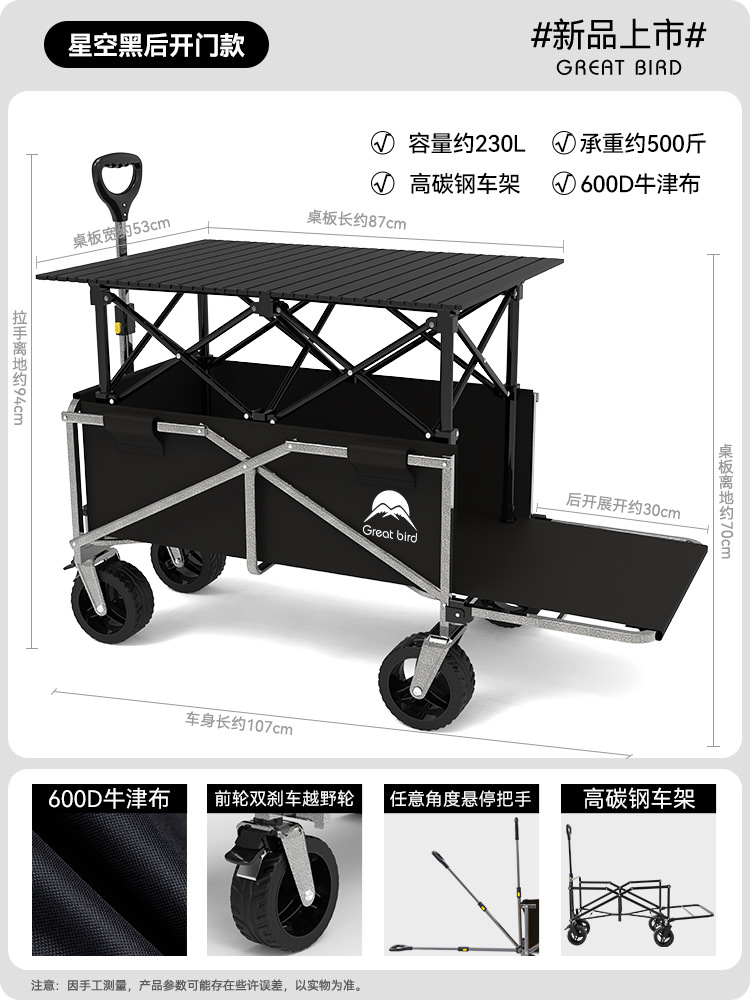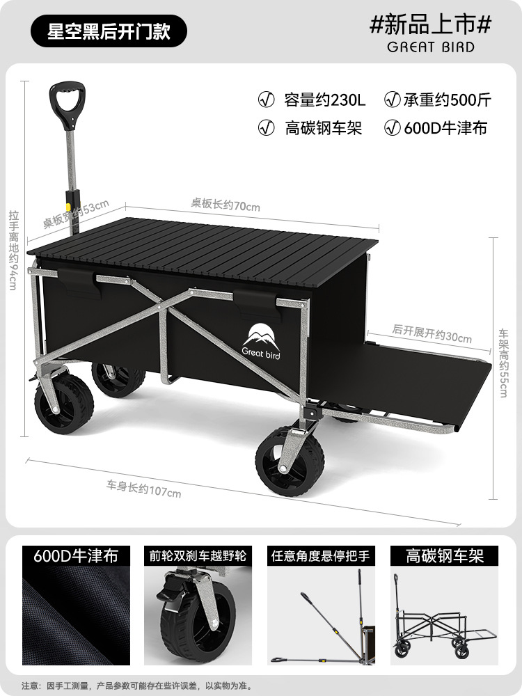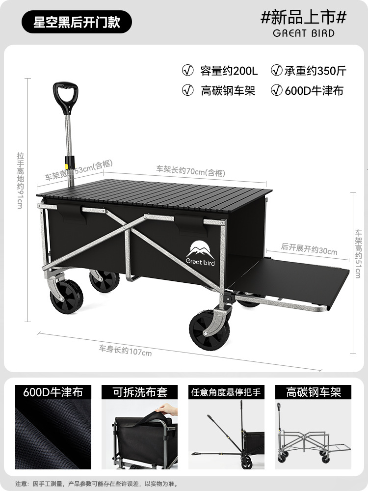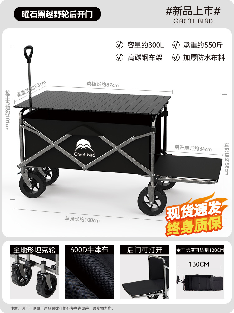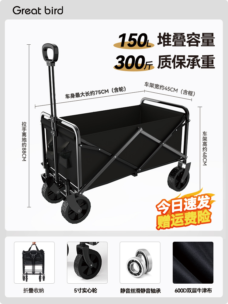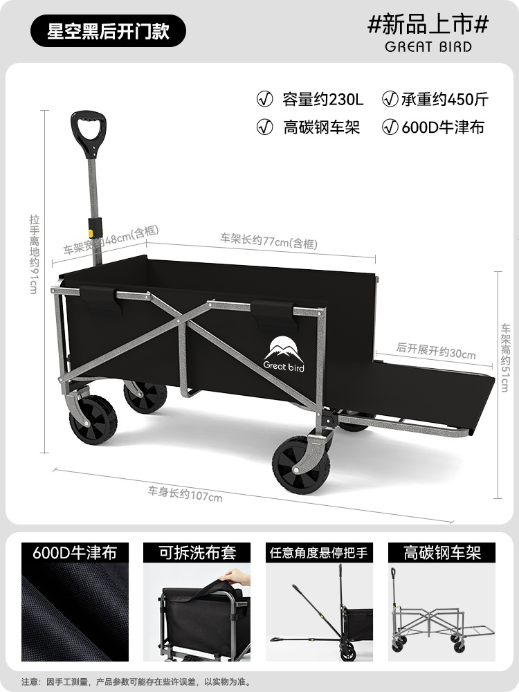 우수한 조류 캠핑 자동차 트롤리 야외 접이식 캠프 자동차 어린이 거짓말 캠핑 작은 트레일러 피크닉 트롤리