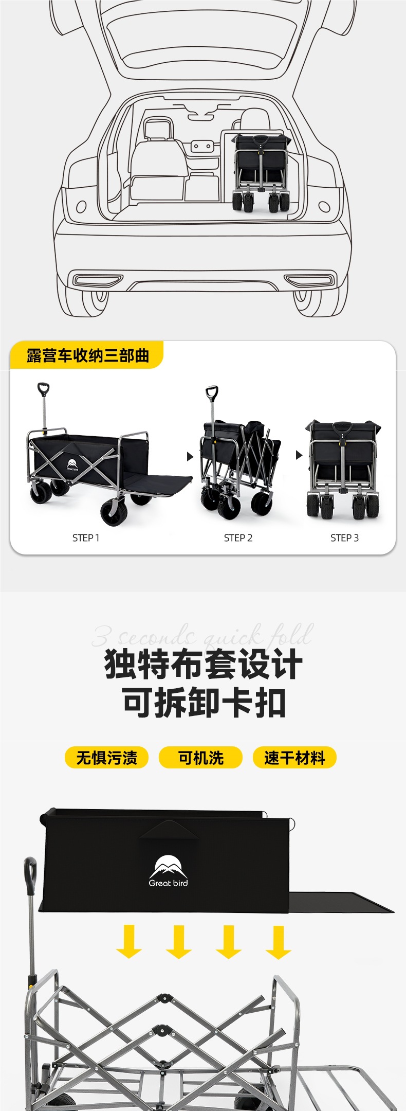 우수한 조류 캠핑 자동차 트롤리 야외 접이식 캠프 자동차 어린이 거짓말 캠핑 작은 트레일러 피크닉 트롤리스토어 가기