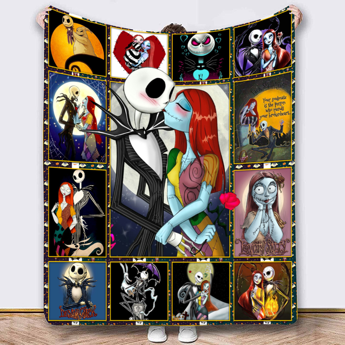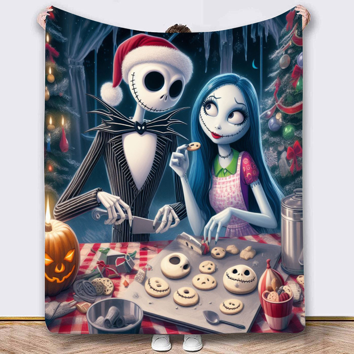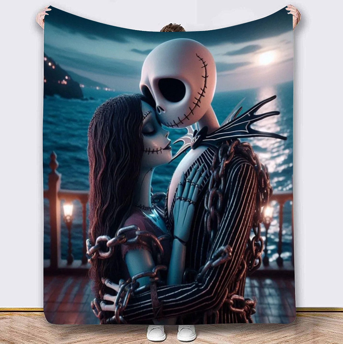대외 무역 TEMU 맞춤형 크리스마스 밤 울음 인쇄 플란넬 부드러운 따뜻한 할로윈 해골 잭 담요스토어 가기