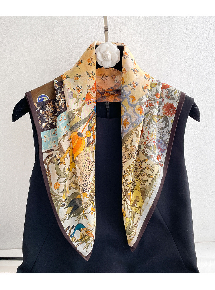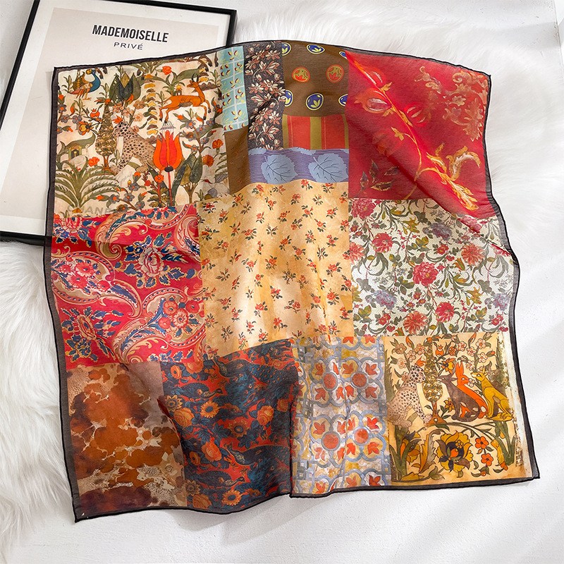 봄 패치 워크 꽃 작은 실크 스카프 얇은 장식 헤드 스카프 모든 경기 실크 코튼 혼합 스퀘어 스카프 고급 실크 스카프스토어 가기