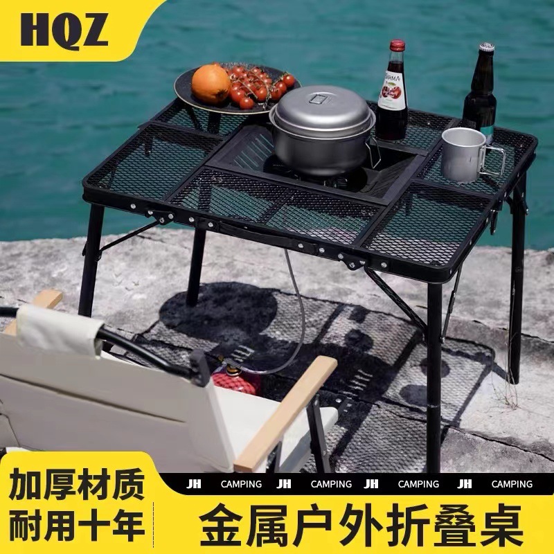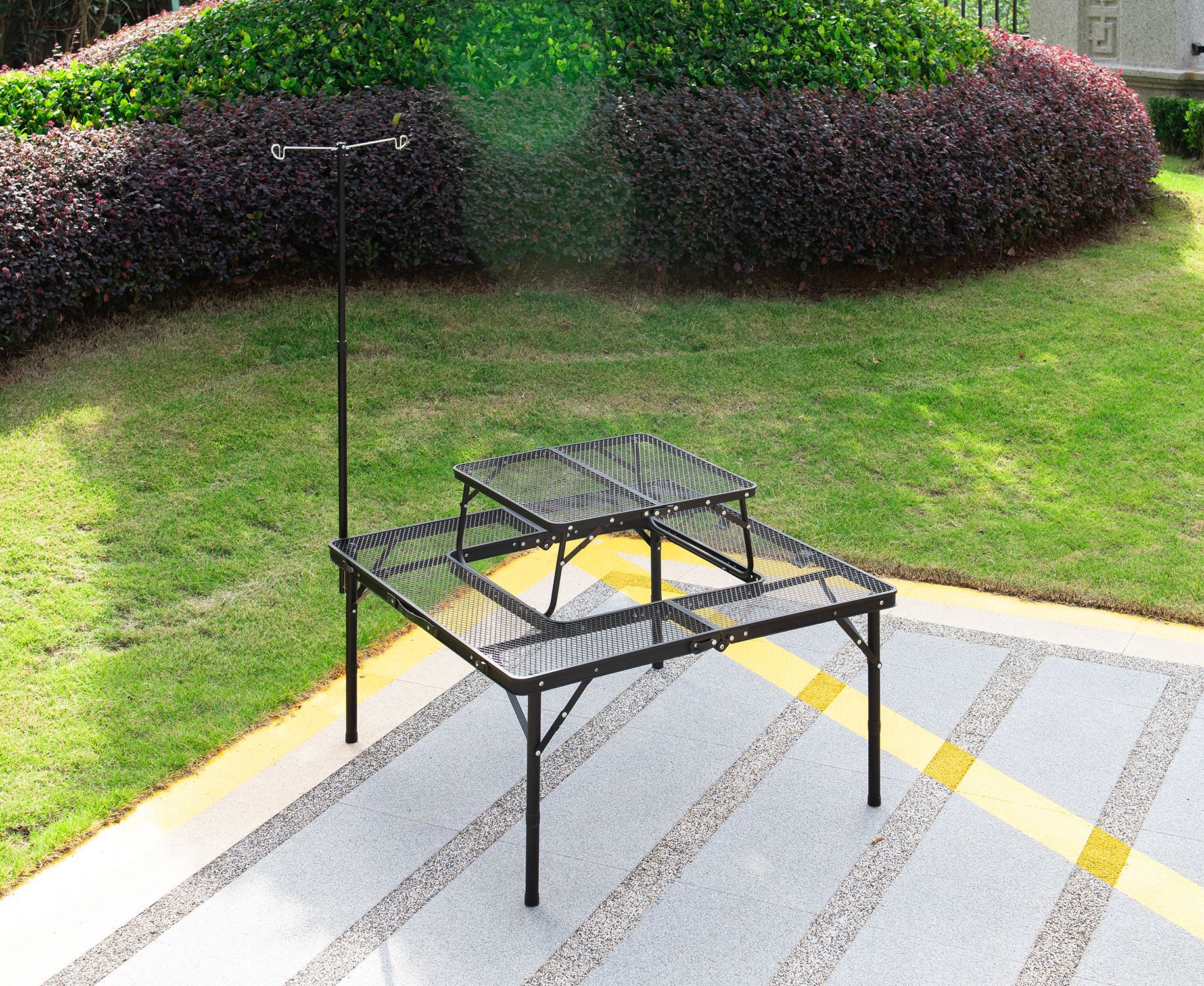 야외 용광로 테이블 캠핑 비콘 타워 피크닉 확장 테이블 라이트 폴 국경 인쇄 강화 다리 접이식 테이블