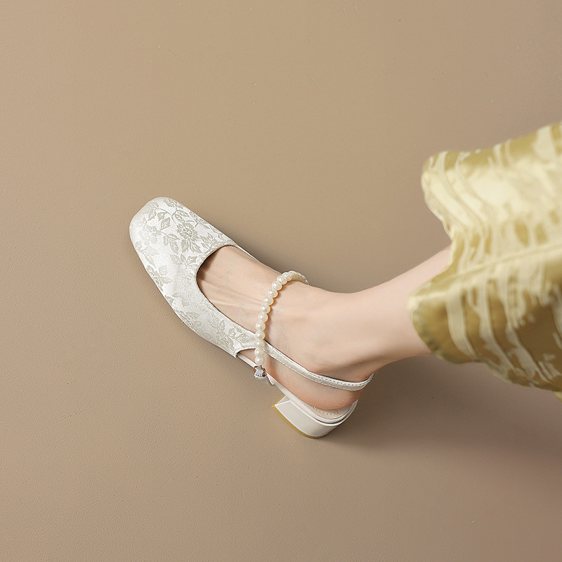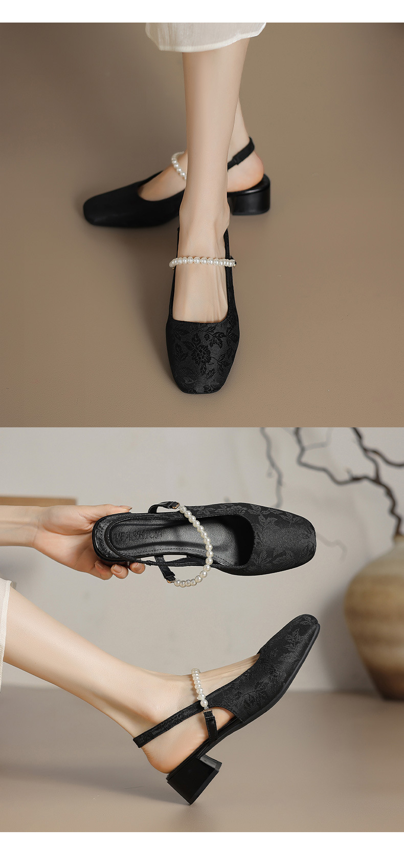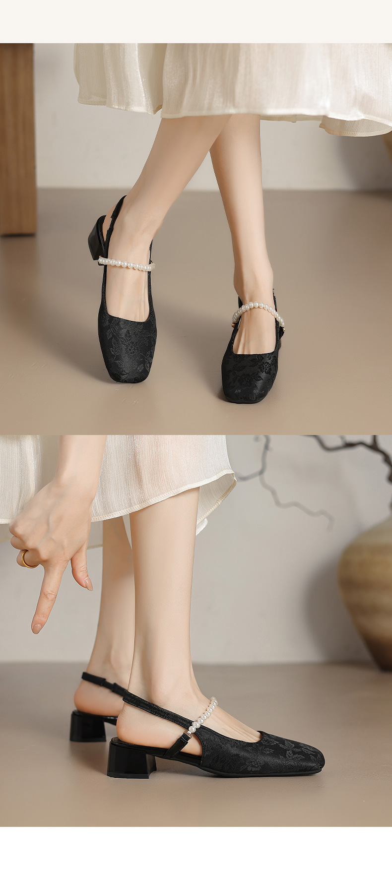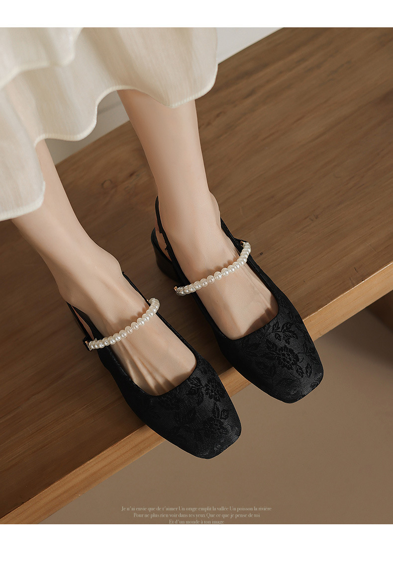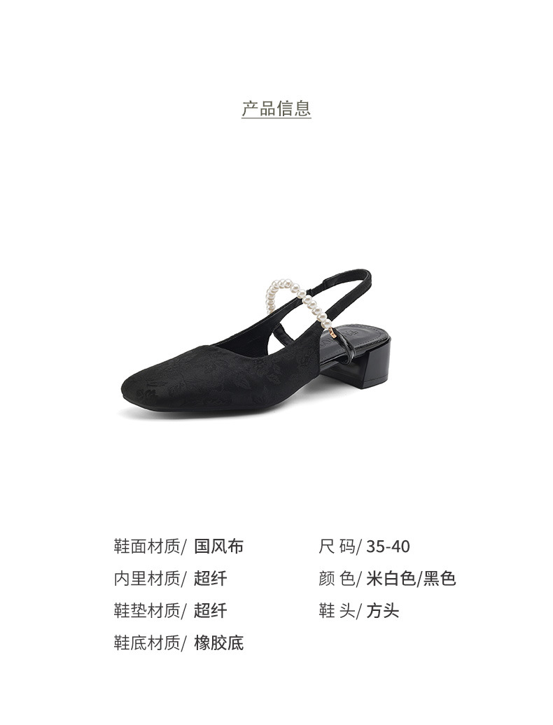 새로운 국가 스타일 두꺼운 힐 스퀘어 토 싱글 레이어 신발 여성의 2025 여름 요정 스타일 중국 자수 진주 중간 힐 바오 터우 샌들스토어 가기