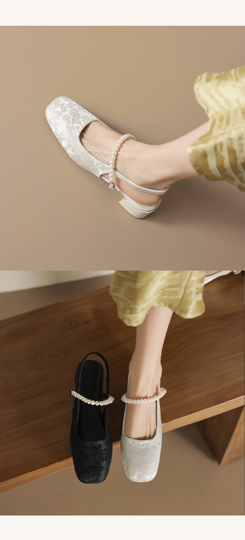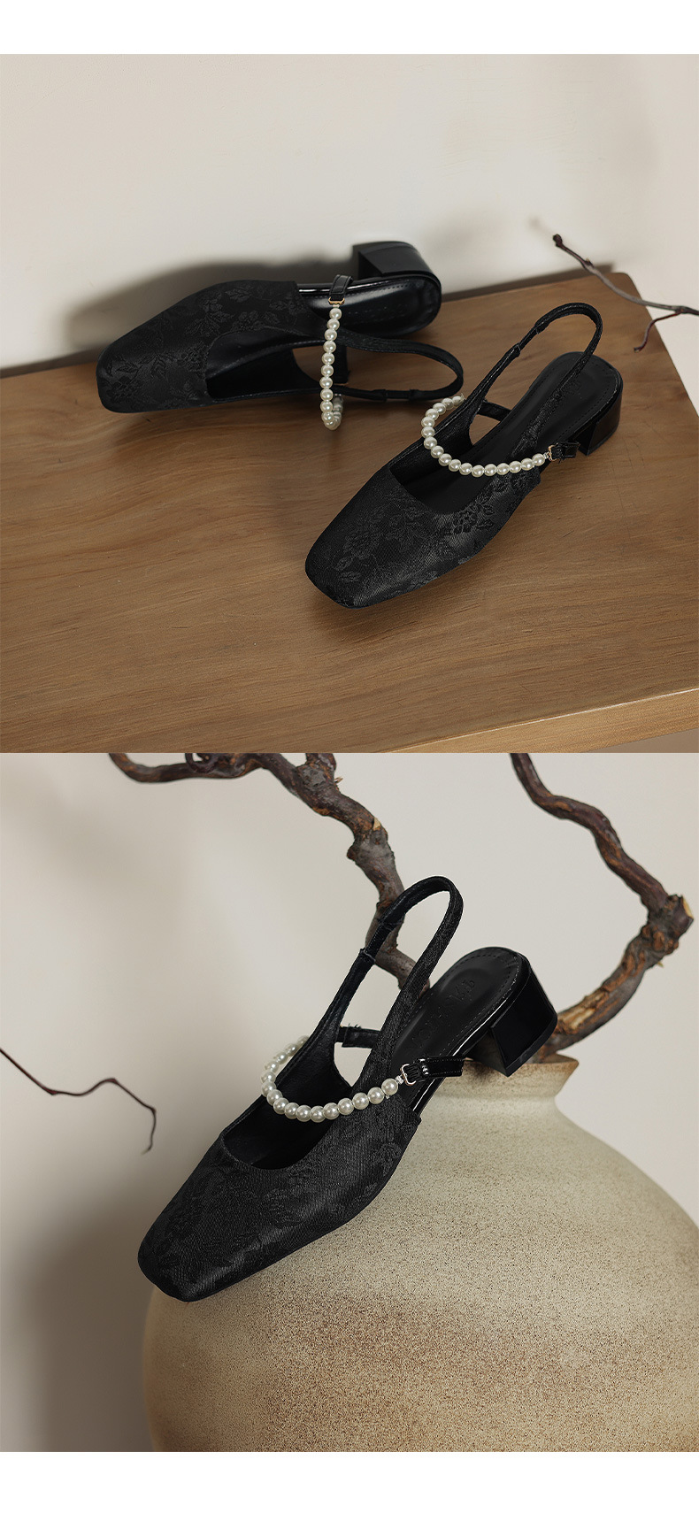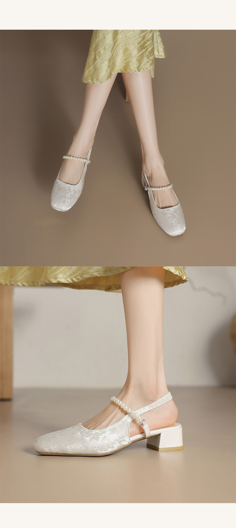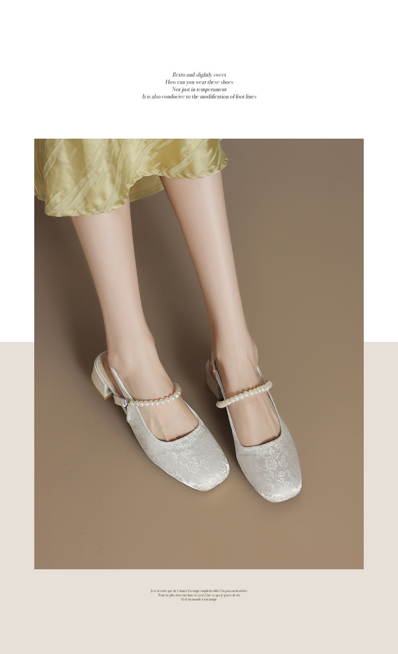 새로운 국가 스타일 두꺼운 힐 스퀘어 토 싱글 레이어 신발 여성의 2025 여름 요정 스타일 중국 자수 진주 중간 힐 바오 터우 샌들스토어 가기