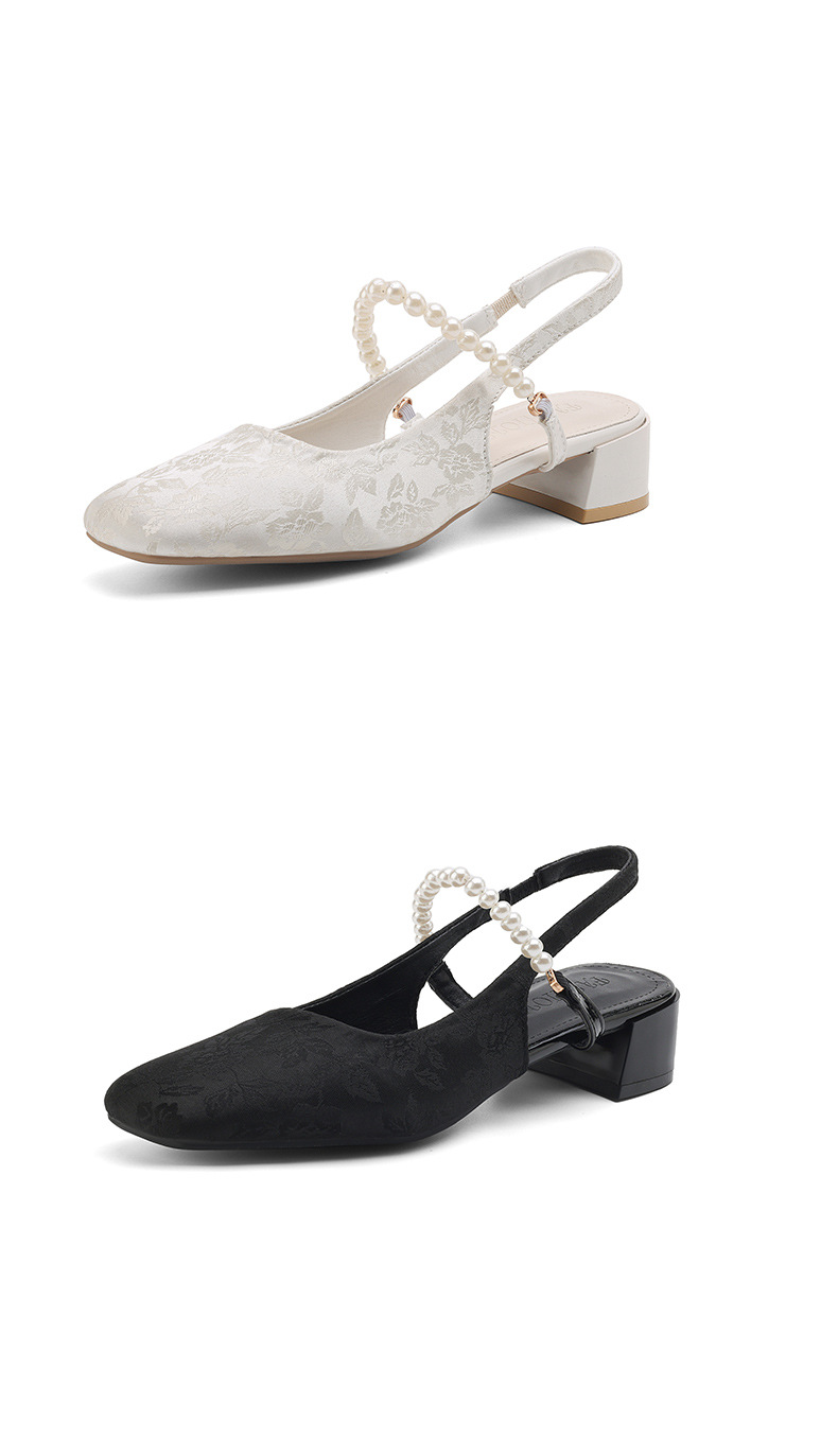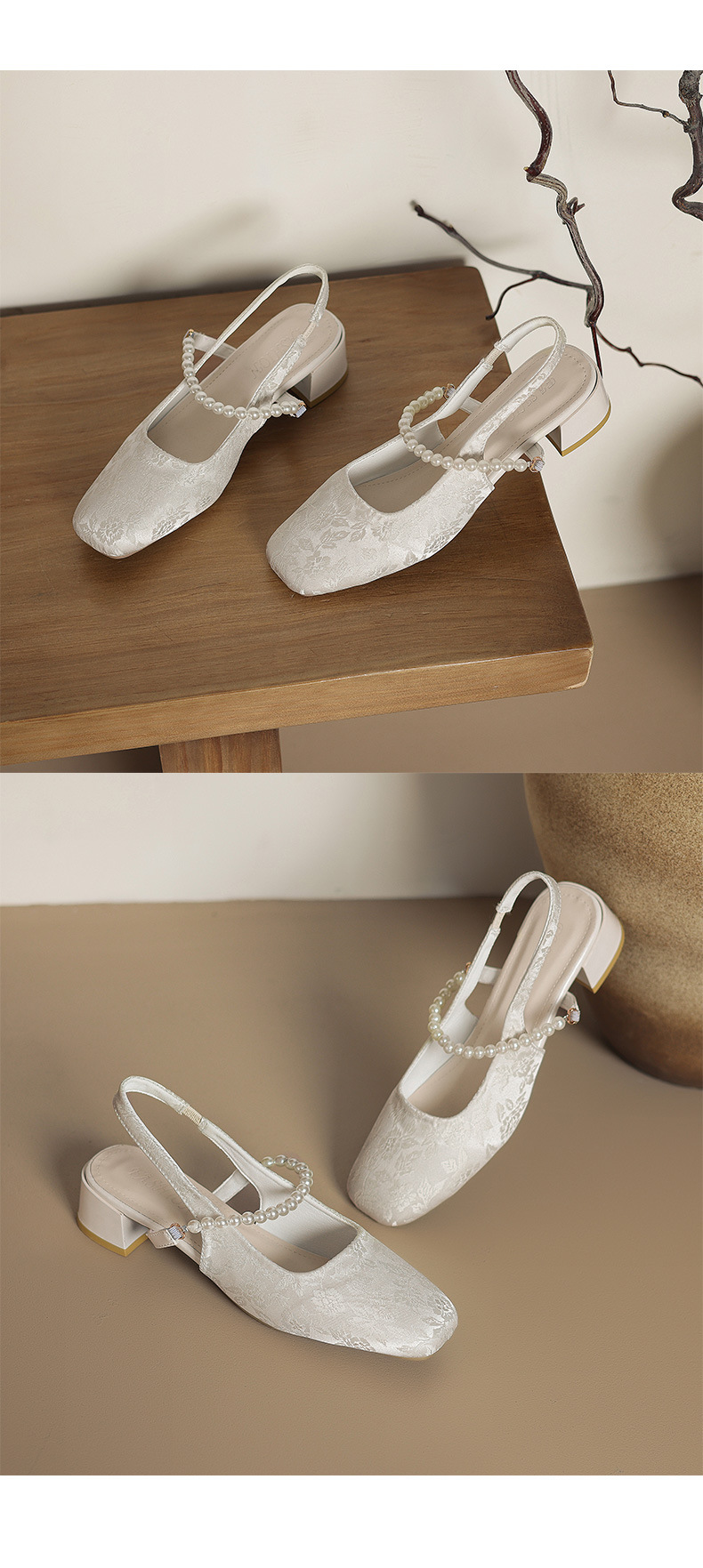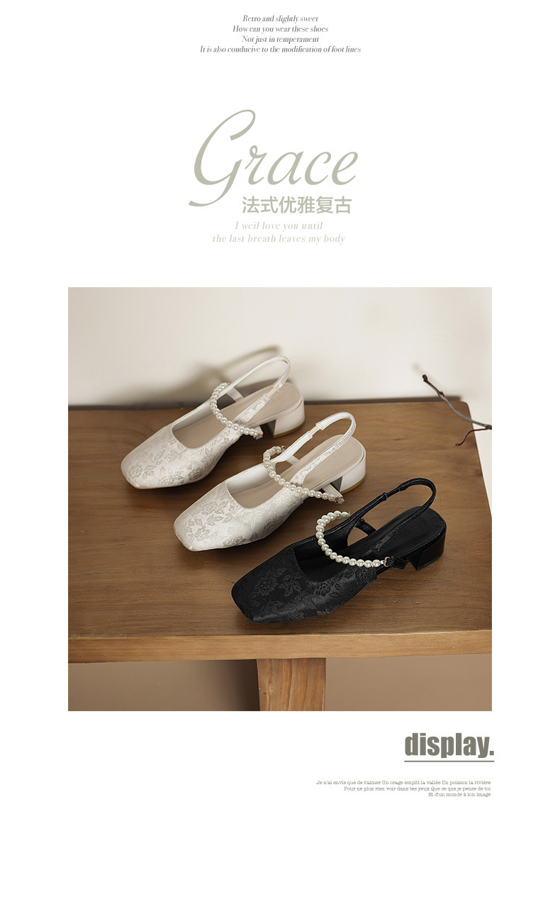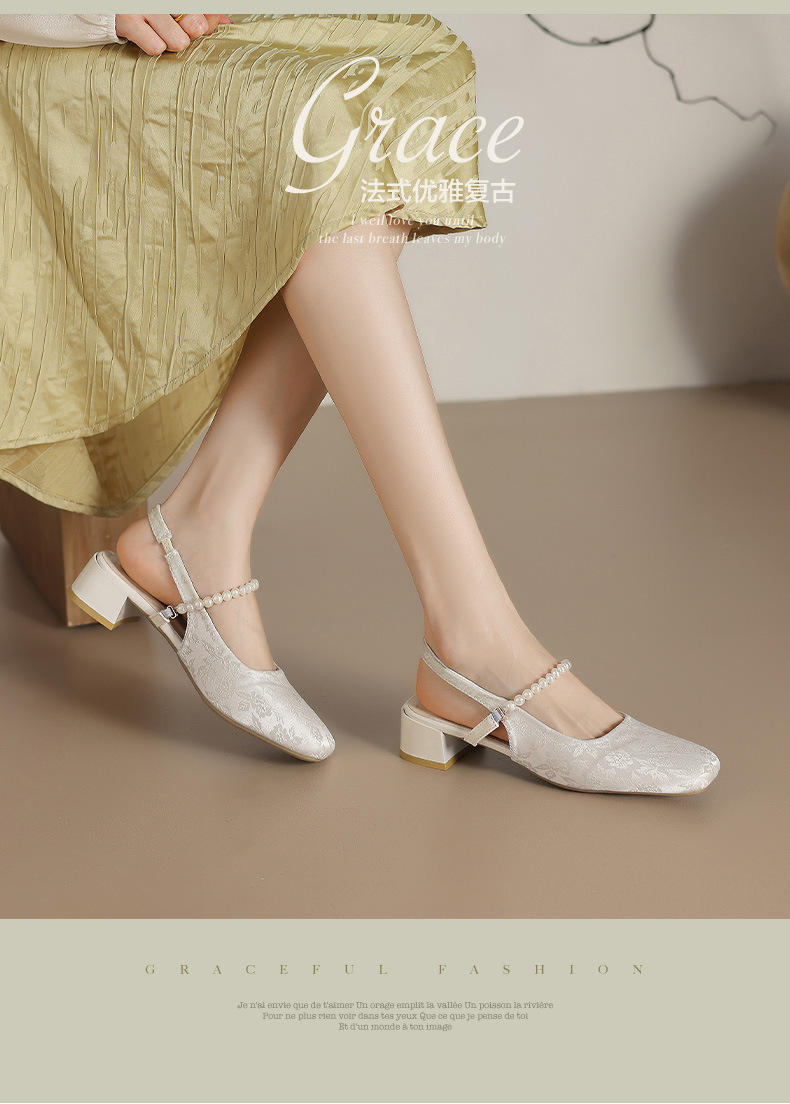 새로운 국가 스타일 두꺼운 힐 스퀘어 토 싱글 레이어 신발 여성의 2025 여름 요정 스타일 중국 자수 진주 중간 힐 바오 터우 샌들스토어 가기