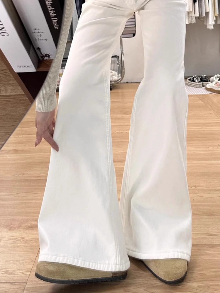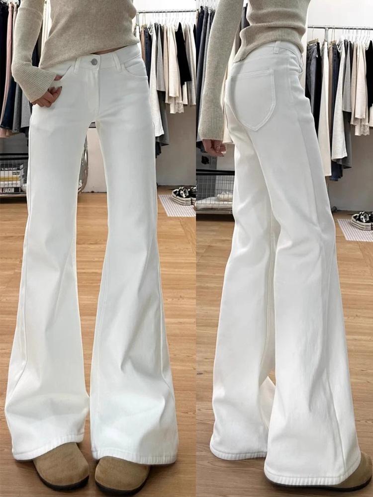 화이트 레그 마이크로 플레어 청바지 여성 여름 새로운 스파이스 걸스 낮은 허리 탄성 슬리밍 와이드 레그 말굽 바지