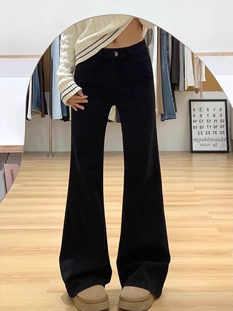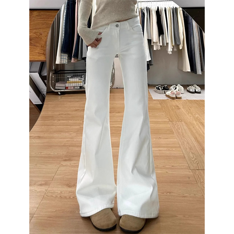 화이트 레그 마이크로 플레어 청바지 여성 여름 새로운 스파이스 걸스 낮은 허리 탄성 슬리밍 와이드 레그 말굽 바지스토어 가기