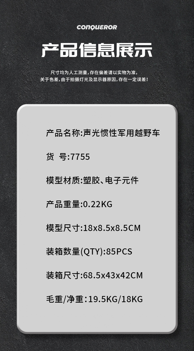 • 7755 [검정색] 소리와 빛의 관성 군용 오프로드 차량 (군인 제외)