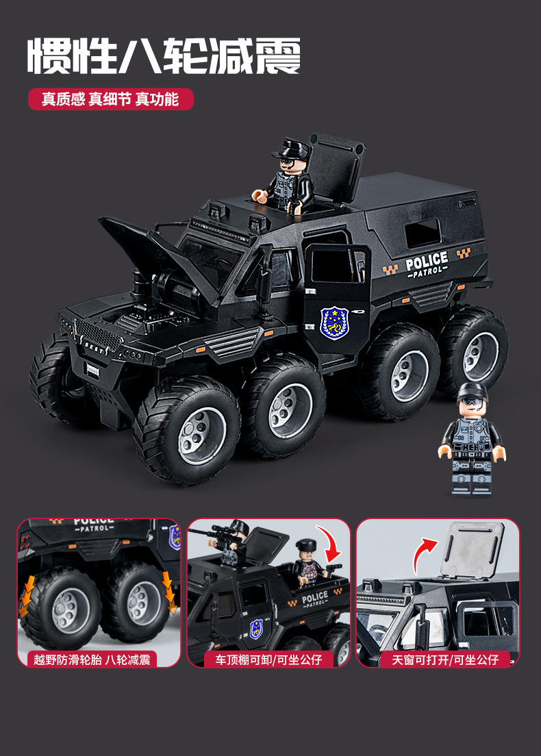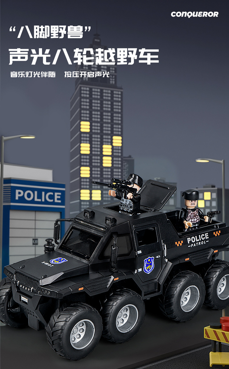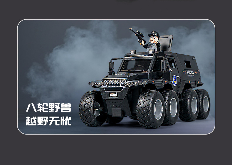 어린이 장난감 자동차 8 륜 특수 경찰 오프로드 차량 모델은 문 소리와 가벼운 관성 경찰차 소년의 장난감을 열 수 있습니다.스토어 가기