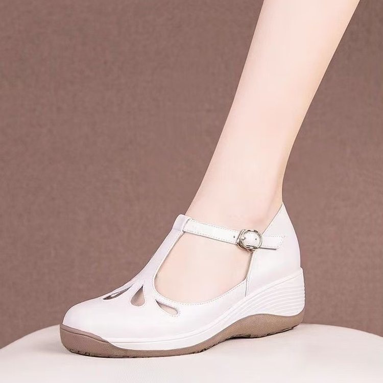 Baotou 샌들 여성 여름 패션 새로운 할로우 편안한 통기성 가죽 샌들과 슬리퍼 소프트 하단 엄마 신발 웨지 힐 여성 신발