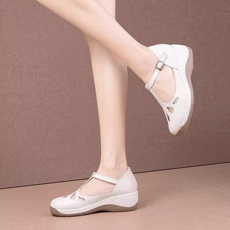 Baotou 샌들 여성 여름 패션 새로운 할로우 편안한 통기성 가죽 샌들과 슬리퍼 소프트 하단 엄마 신발 웨지 힐 여성 신발스토어 가기