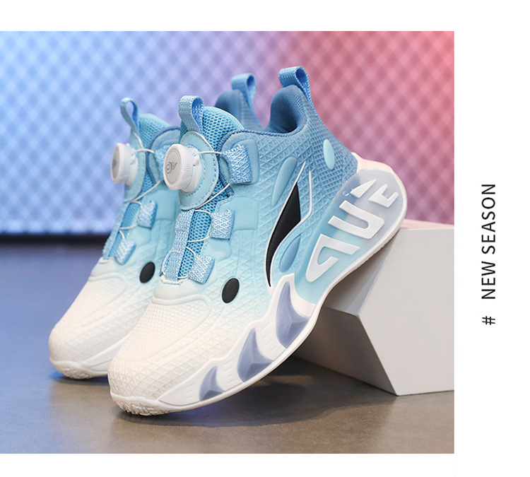 어린이 농구 신발 대형 어린이 및 소년 버튼 달리기 신발 봄과 가을 메쉬 통기성 소프트 하단 미끄럼 방지 운동화