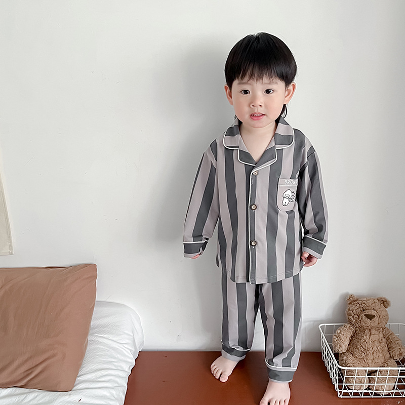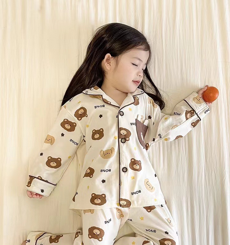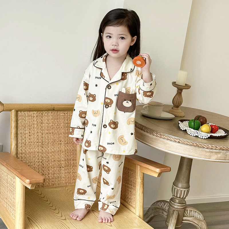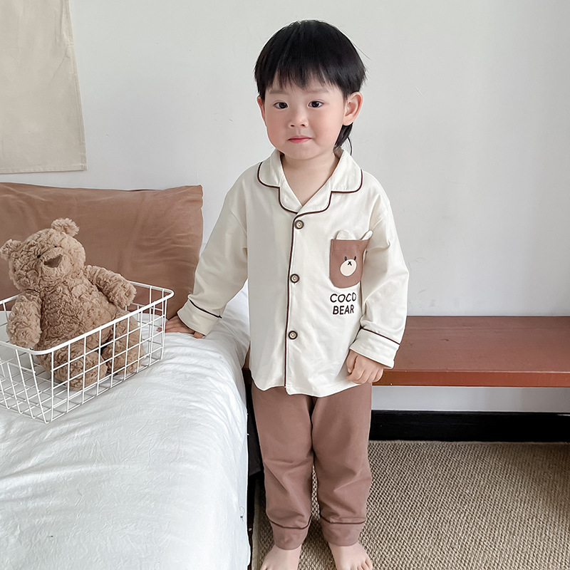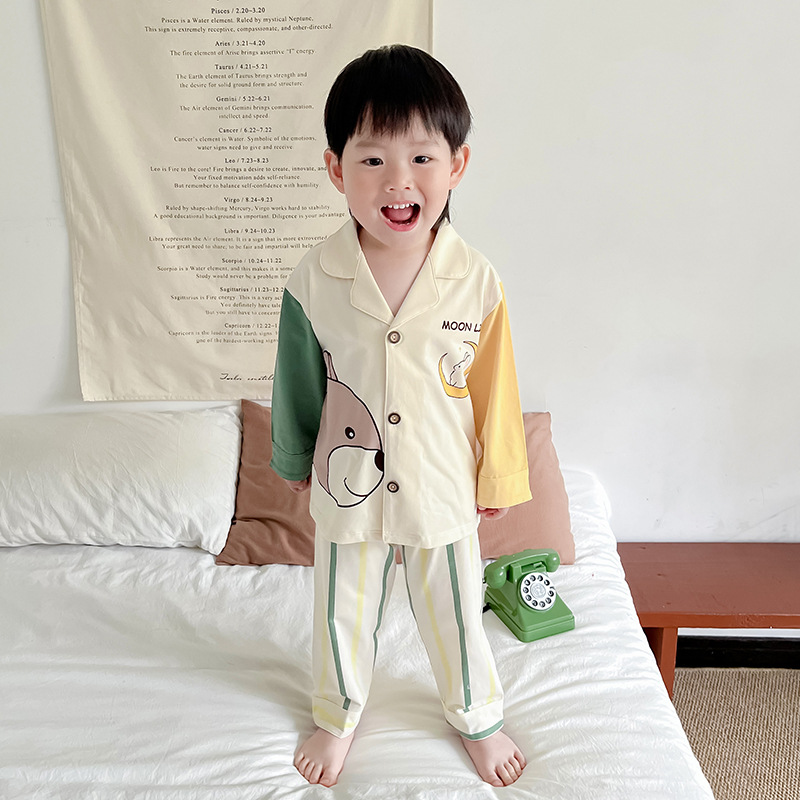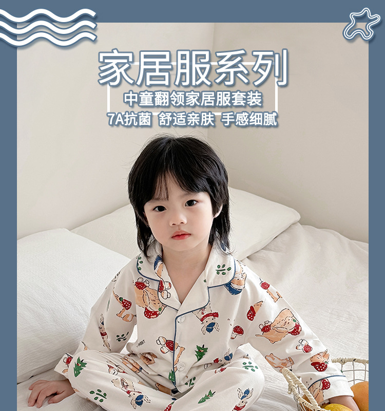 봄과 여름 통기성 옷깃 카디건 캐주얼 어린이 잠옷 리크라 항균 잠옷 세트 긴 소매 겉옷 홈 옷스토어 가기