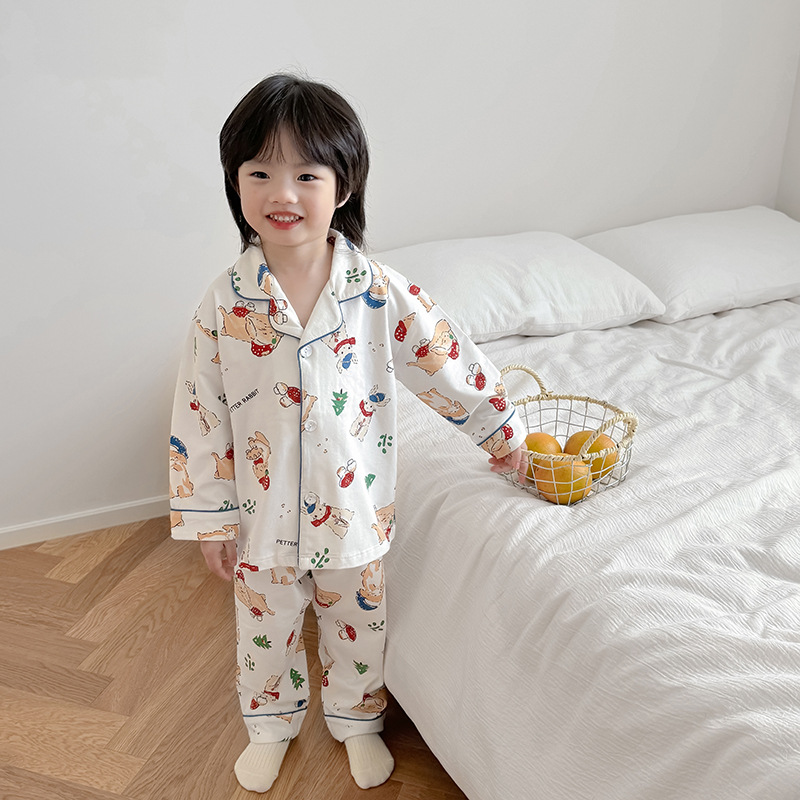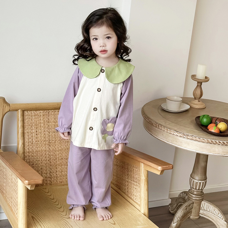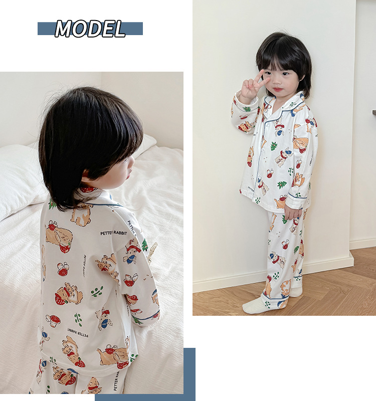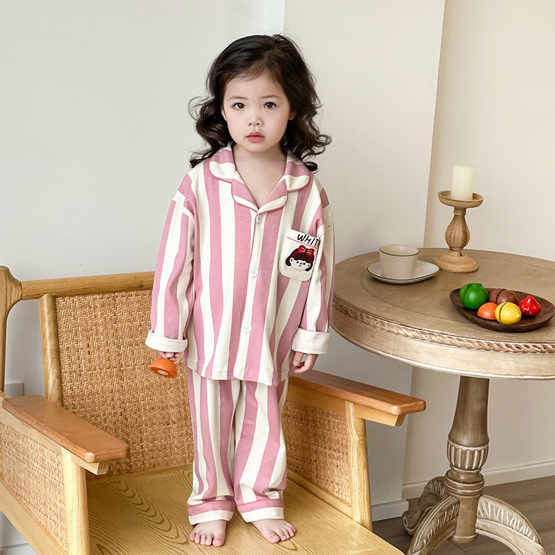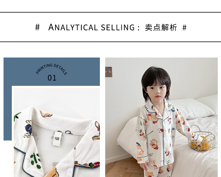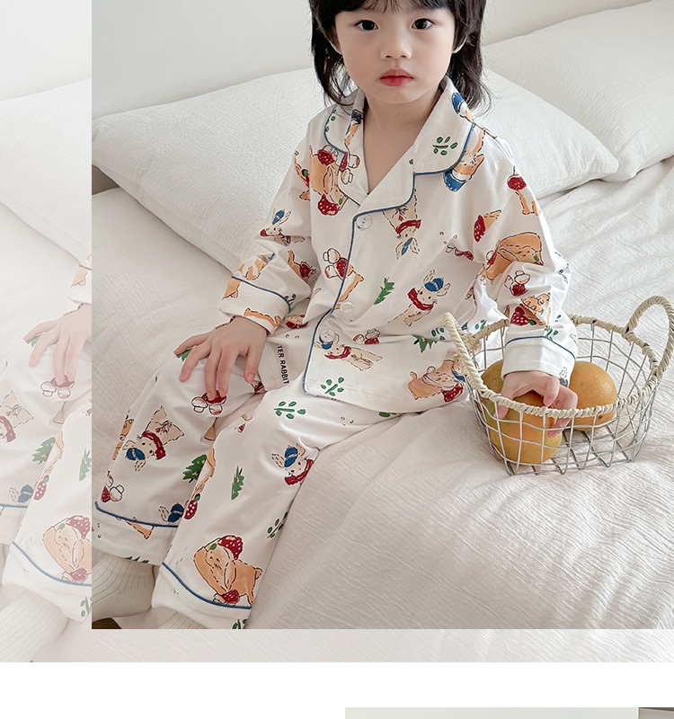 봄과 여름 통기성 옷깃 카디건 캐주얼 어린이 잠옷 리크라 항균 잠옷 세트 긴 소매 겉옷 홈 옷스토어 가기