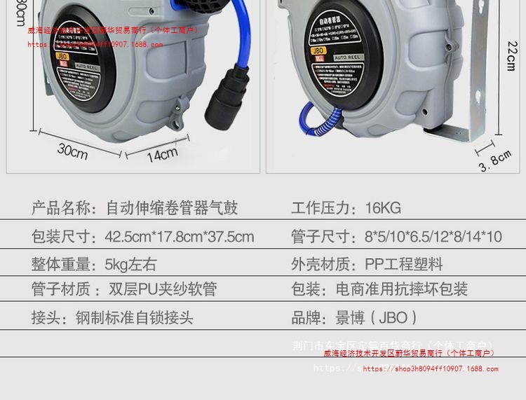 자동 망원경 튜브 코일 PU 원사 20 m 공압 도구 자동 수리 에어 드럼 회수 공기 파이프 자동 아름다움스토어 가기