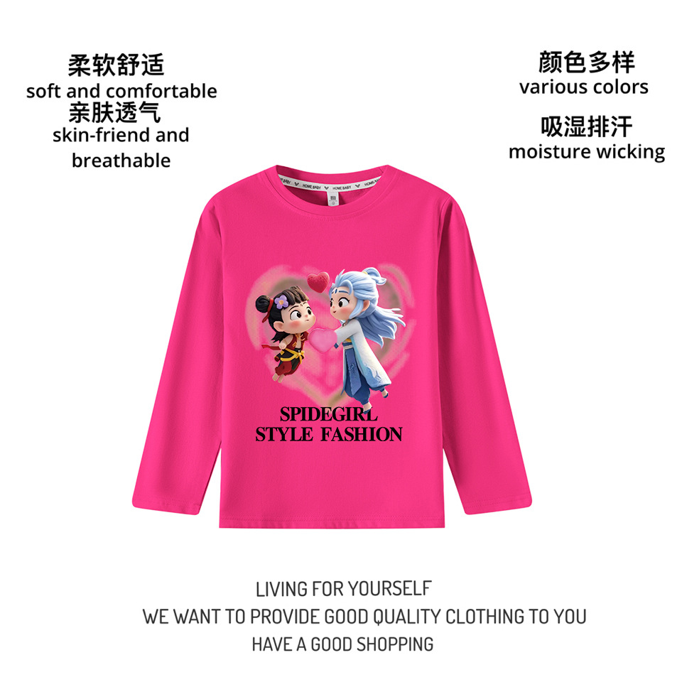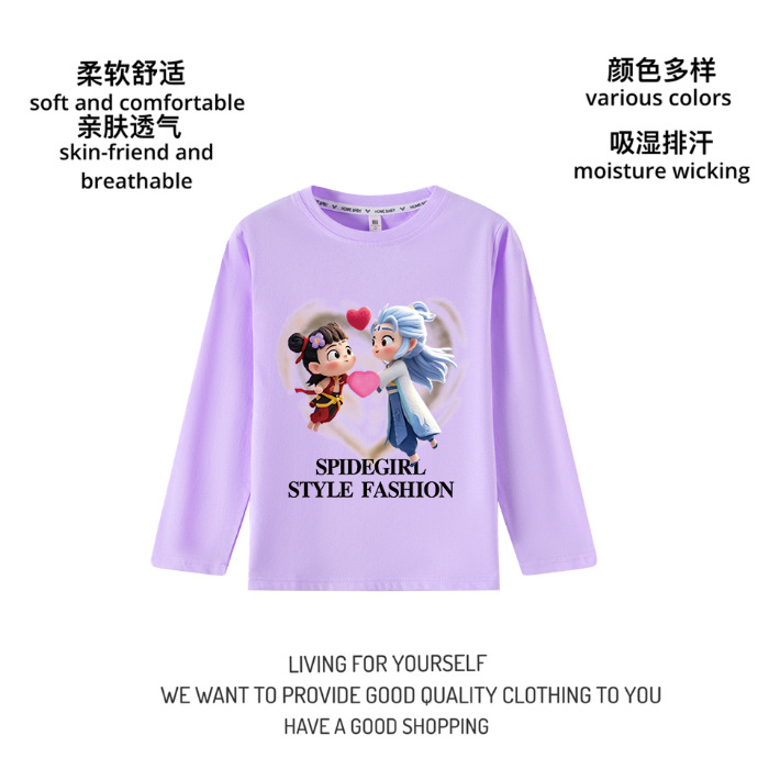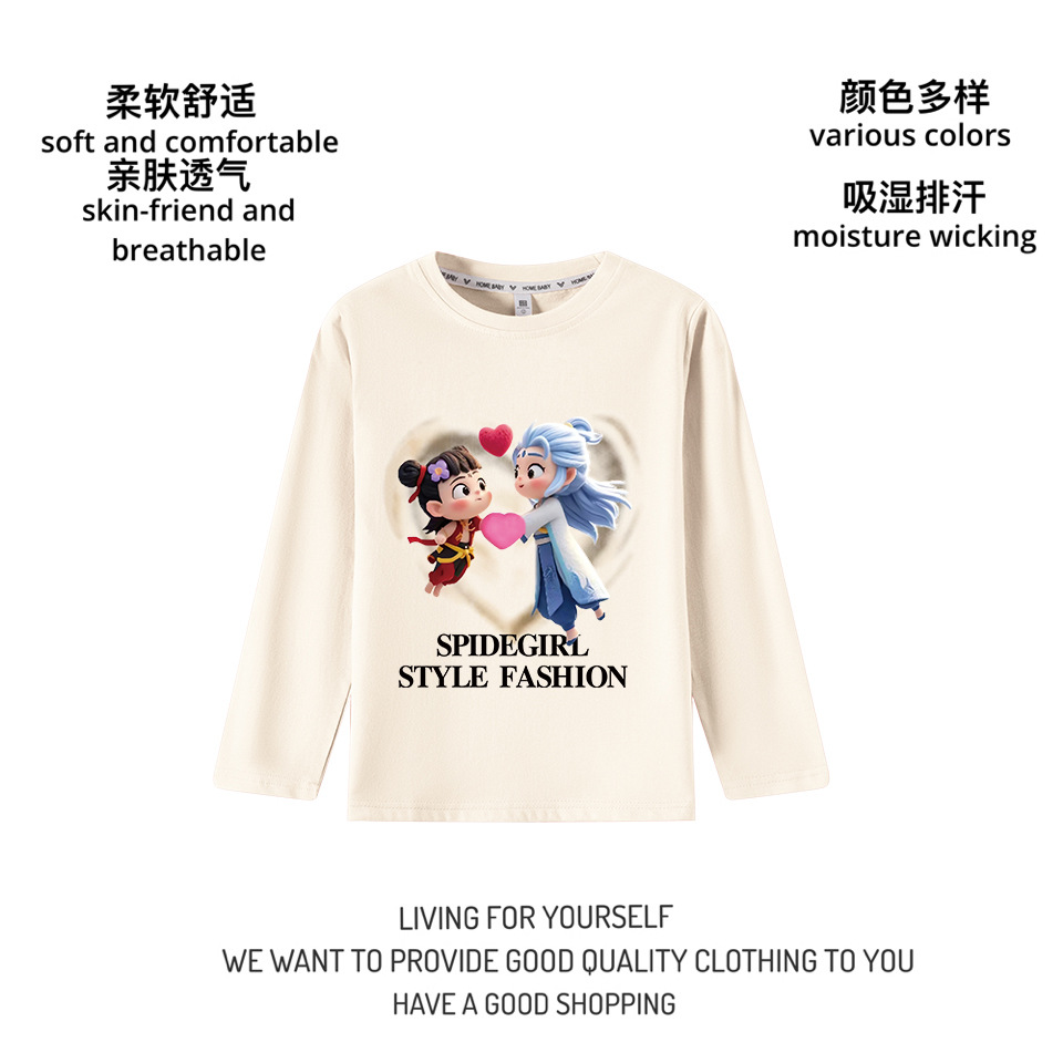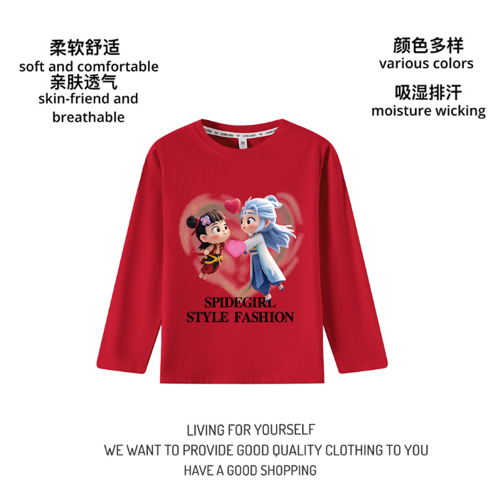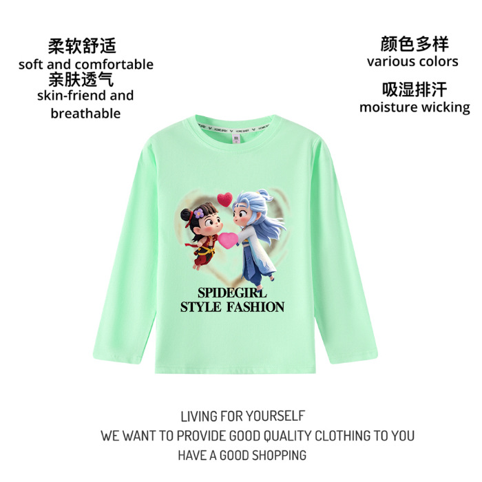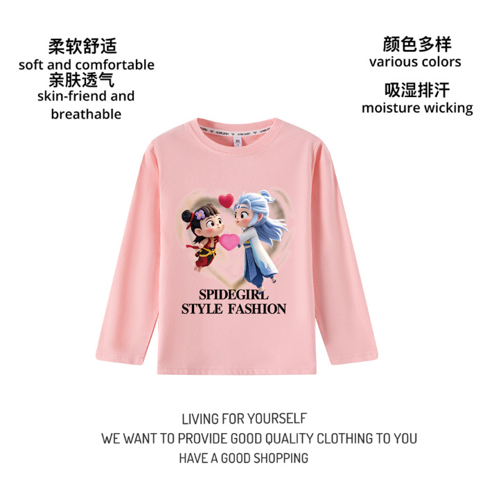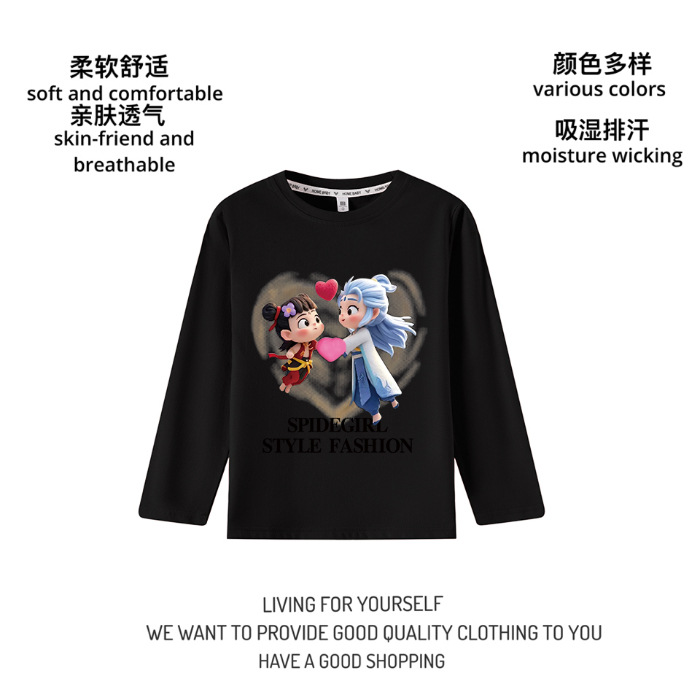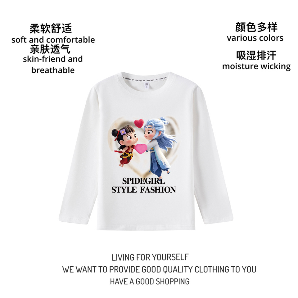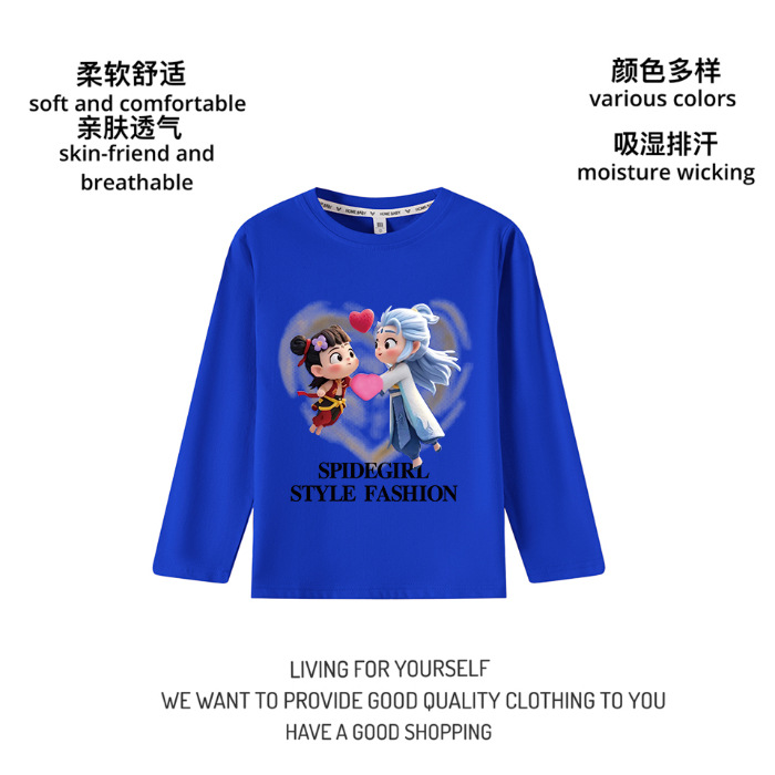 만화 유행 시원한 봄과 가을 면화 어린이 긴 소매 사랑 Ne Ao C 인쇄 티셔츠 기본 셔츠 옷스토어 가기