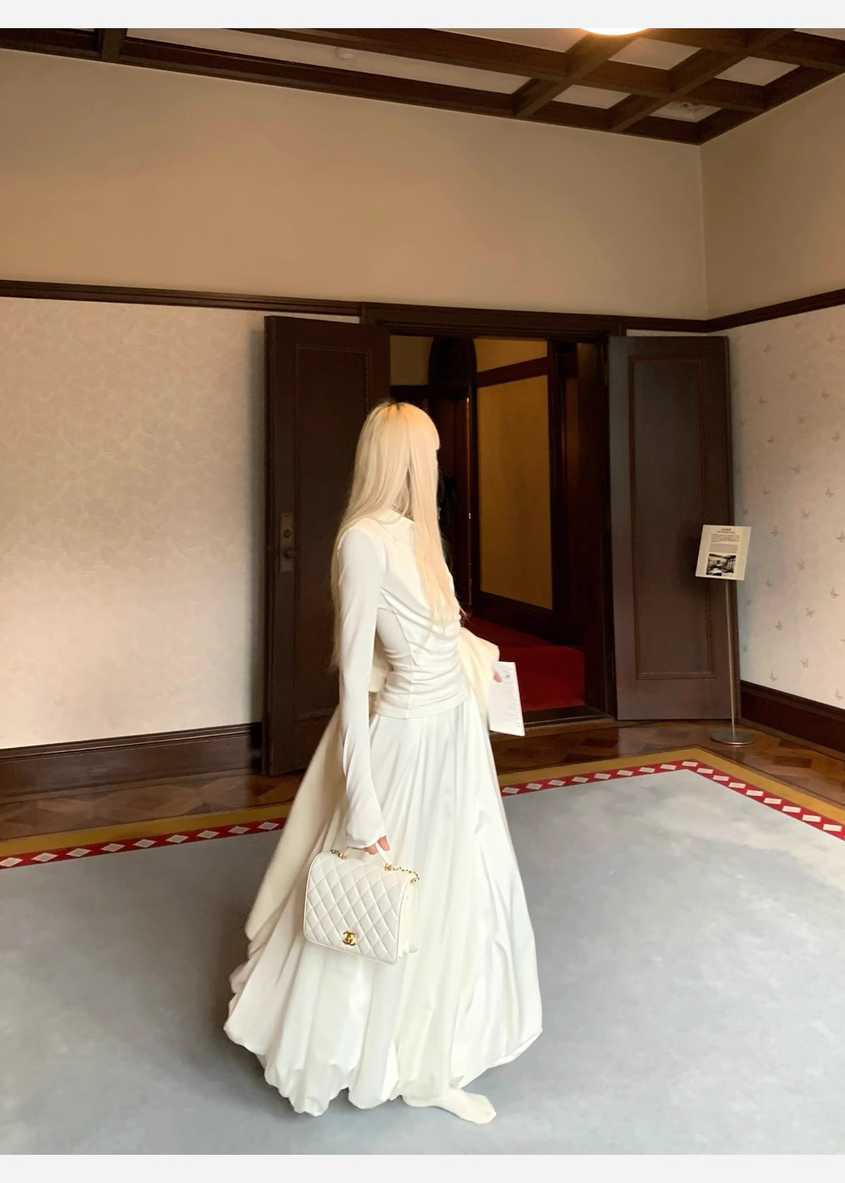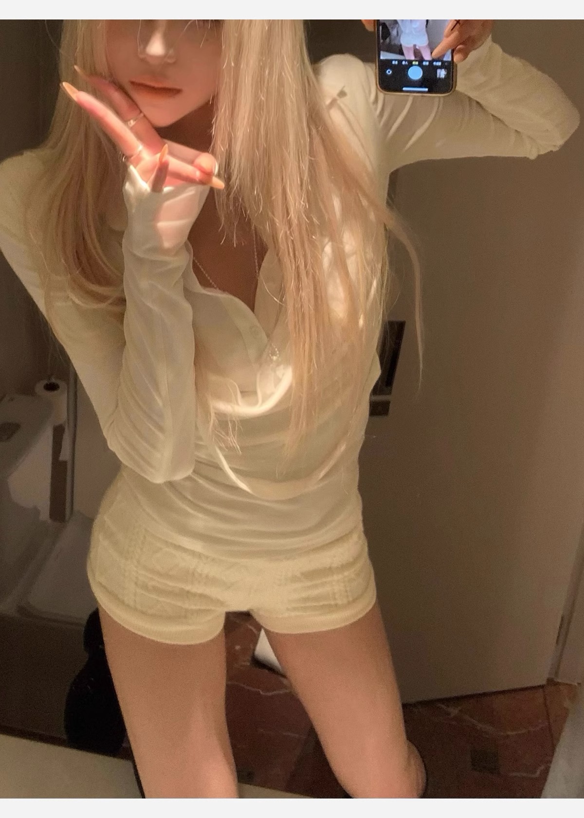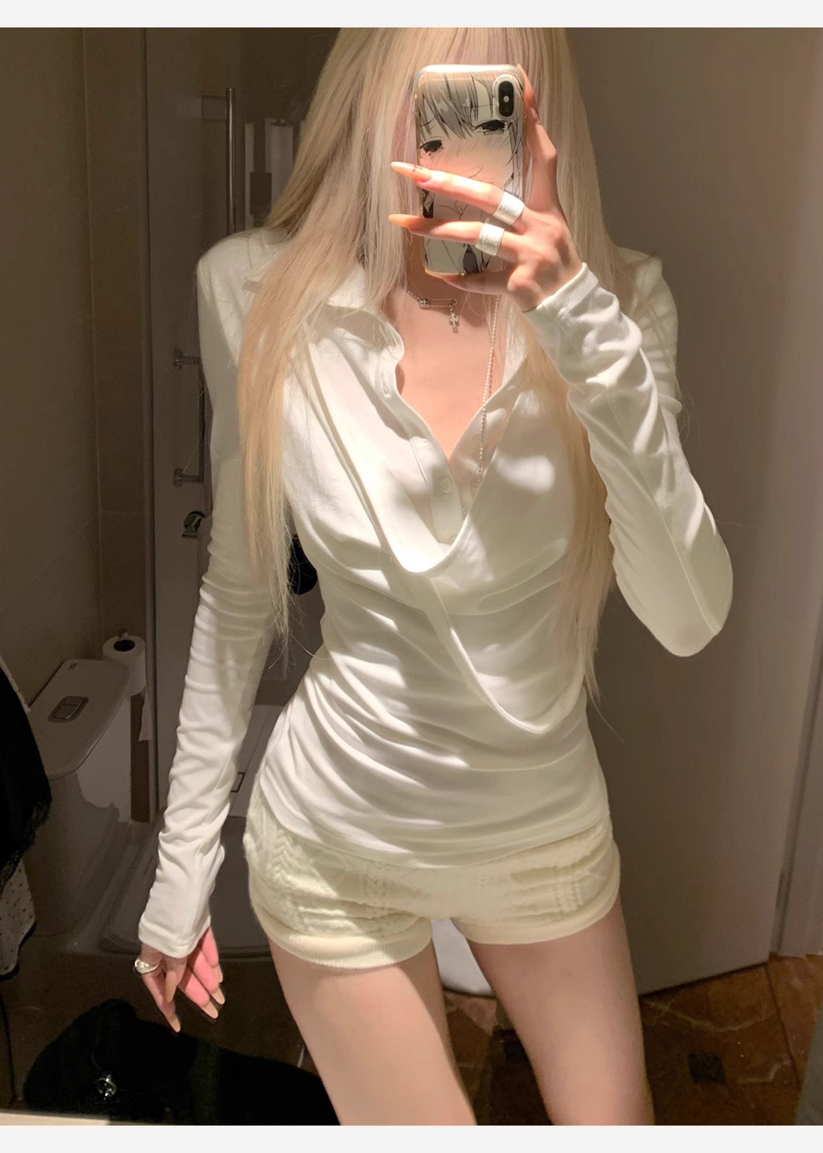 공식 피겨 실제 가격 봄과 가을 칼라 바느질 가짜 투피스 슬림 핏 긴팔 티셔츠 셔츠 여성 디자인 센스 우아한 탑스토어 가기