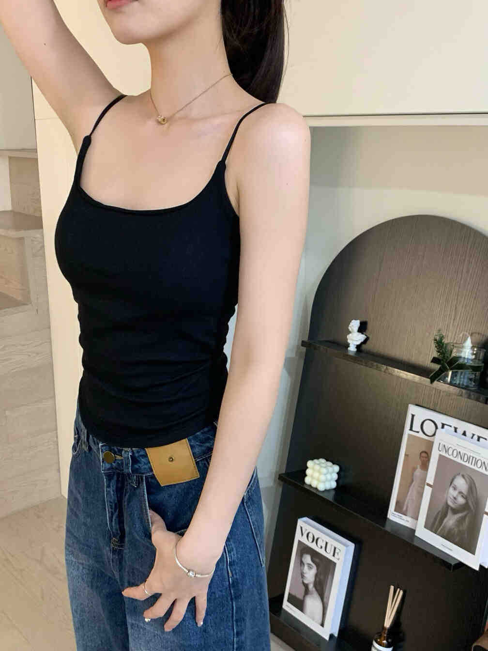 폭발성 퓨어 스위트 스파이스 슬링 흉부 패드 래핑 가슴 외형 옷차림 슬림 핏 쇼트 탑으로 다시 조끼 주름