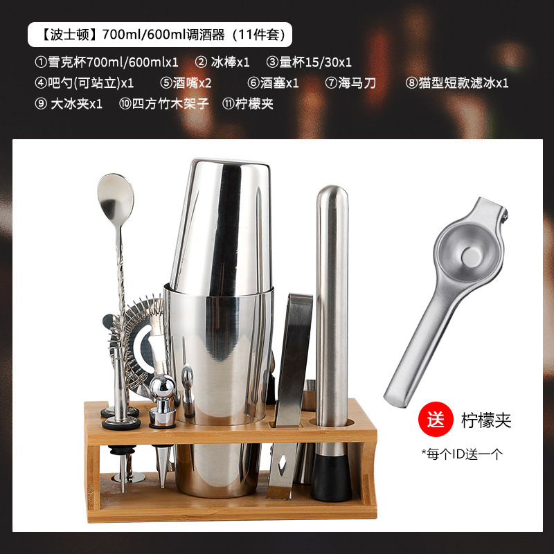 • 304두꺼운 스틸 [보스턴 700/600ml] - 실용적이고 고품질 [사각형 대나무 나무 스탠드 11개 세트] 무료 레몬 클립
