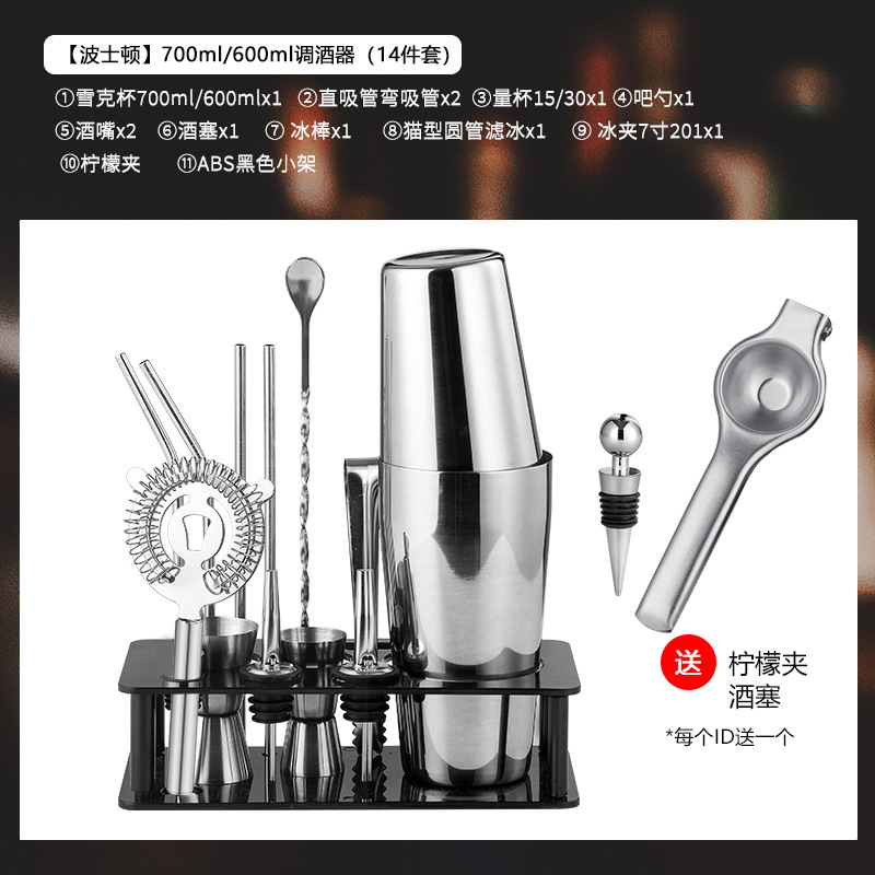 • 304 스틸 두꺼워짐 [보스턴 700/600ml] - 고급스럽고 실용적인 [14피스 ABS 랙] 무료 레몬 클립