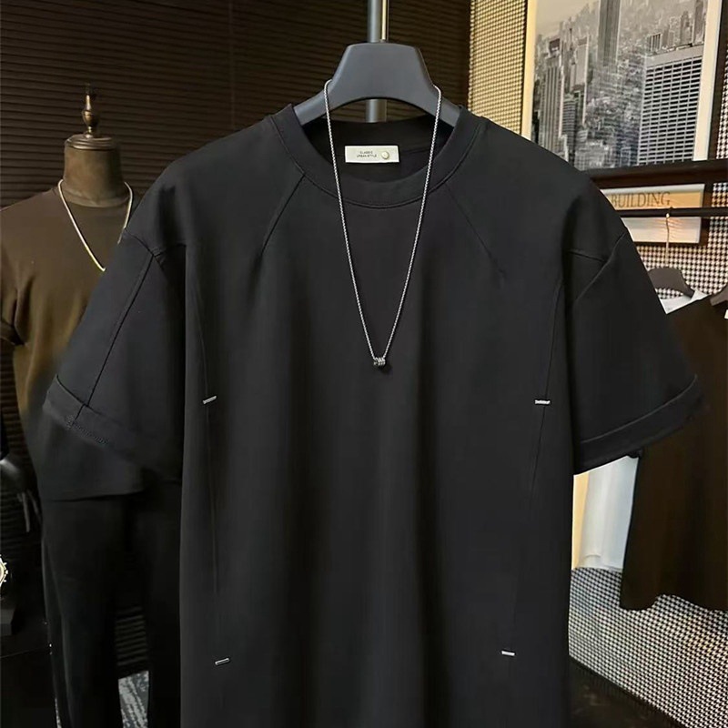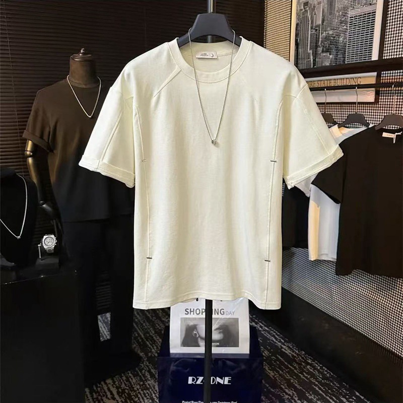 봄과 여름 새로운 남성 하이 세트 스티칭 네일 디자인 라이트 럭셔리 간단한 무거운 캐주얼 다목적 라운드 넥 짧은 소매 티셔츠스토어 가기