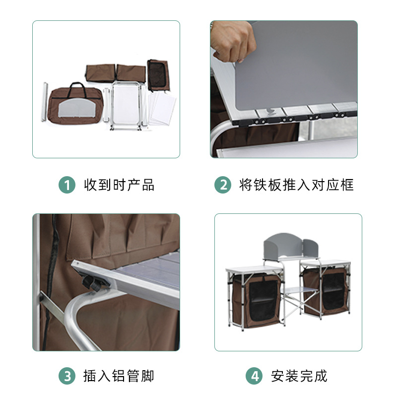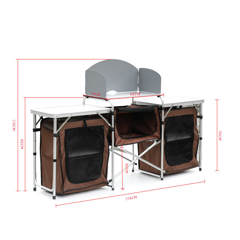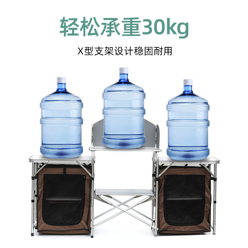 야외 접이식 식탁 및 의자 캠핑 휴대용 알루미늄 합금 다기능 접이식 모바일 주방 작은 테이블 저장 캐비닛스토어 가기