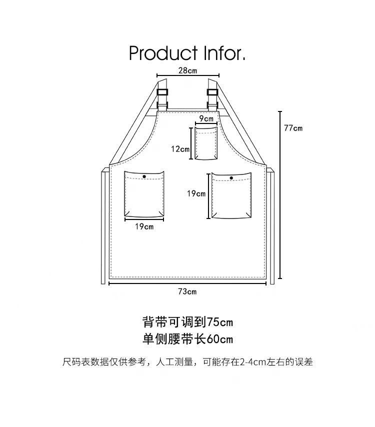 앞치마 인쇄 로고 남성과 여성의 작업 의류 우유 차 가게 커피 네일 샵 대외 무역 국경 일본 앞치마