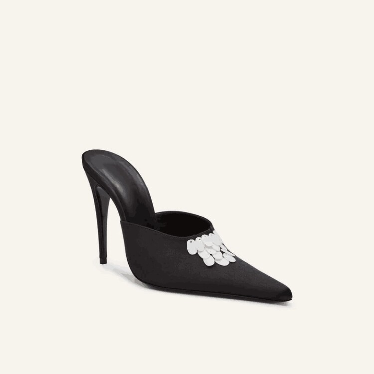뾰족한 하이힐 패션 샌들 발 뒤꿈치 새로운 여름 유럽과 미국의 꽃잎 2024 여성스토어 가기