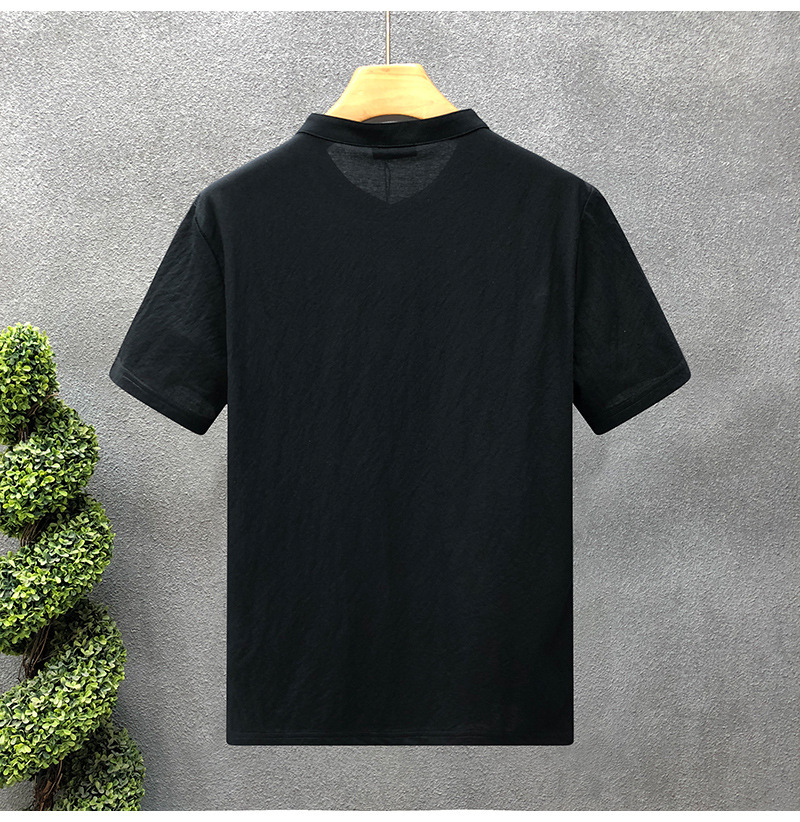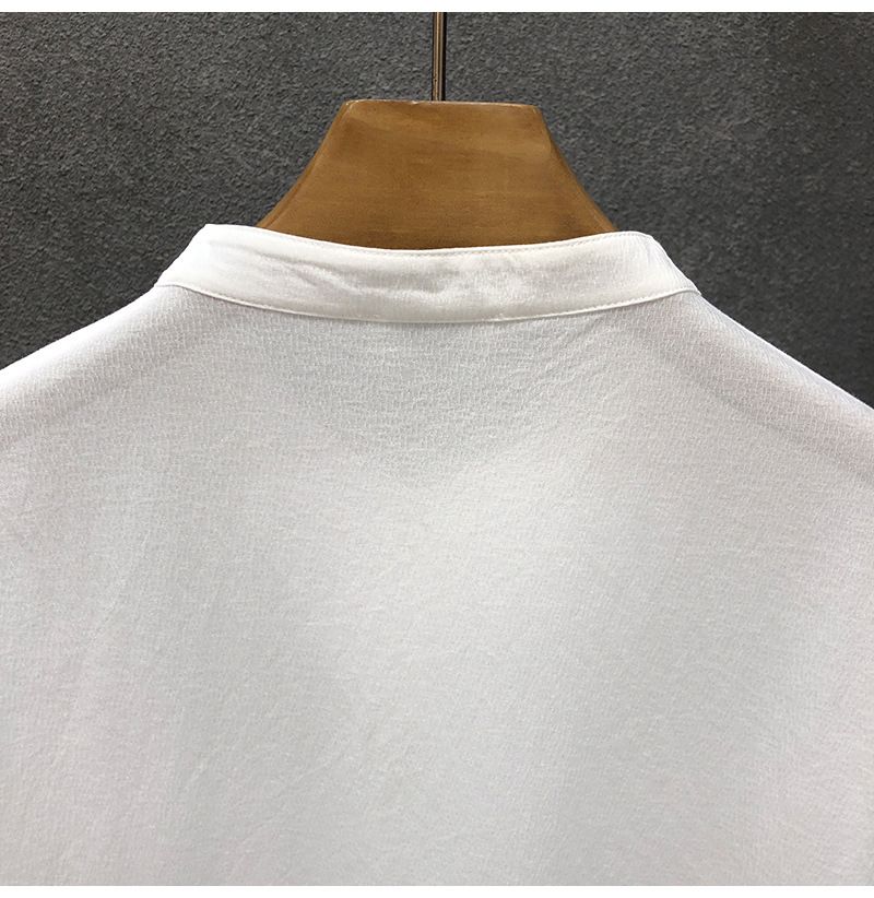 수직 셔츠 칼라 쿨 얇은 반팔 티셔츠 남성용 트렌디 브랜드 대마 반소매 톱 2025 여름 새 남성복스토어 가기