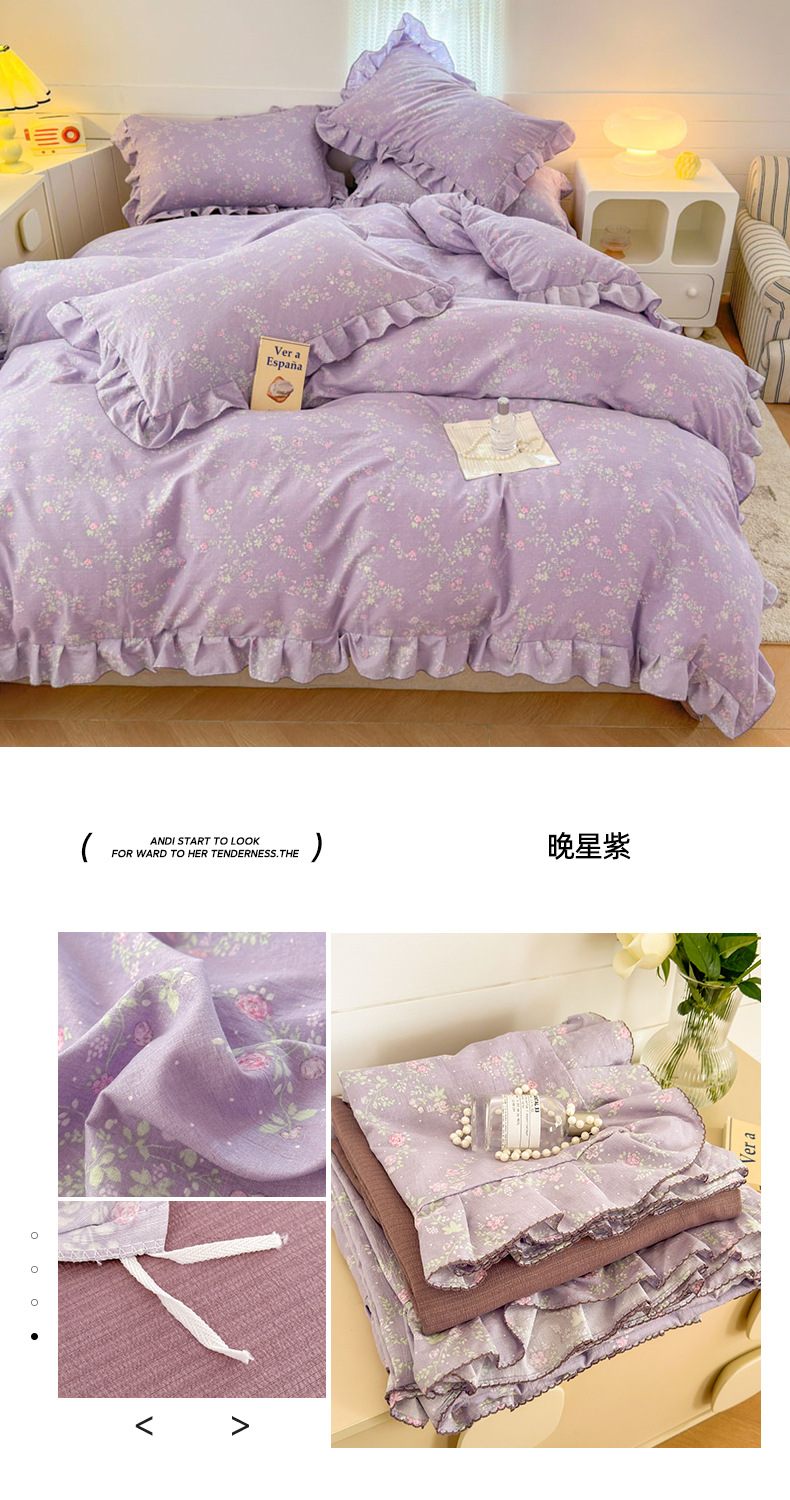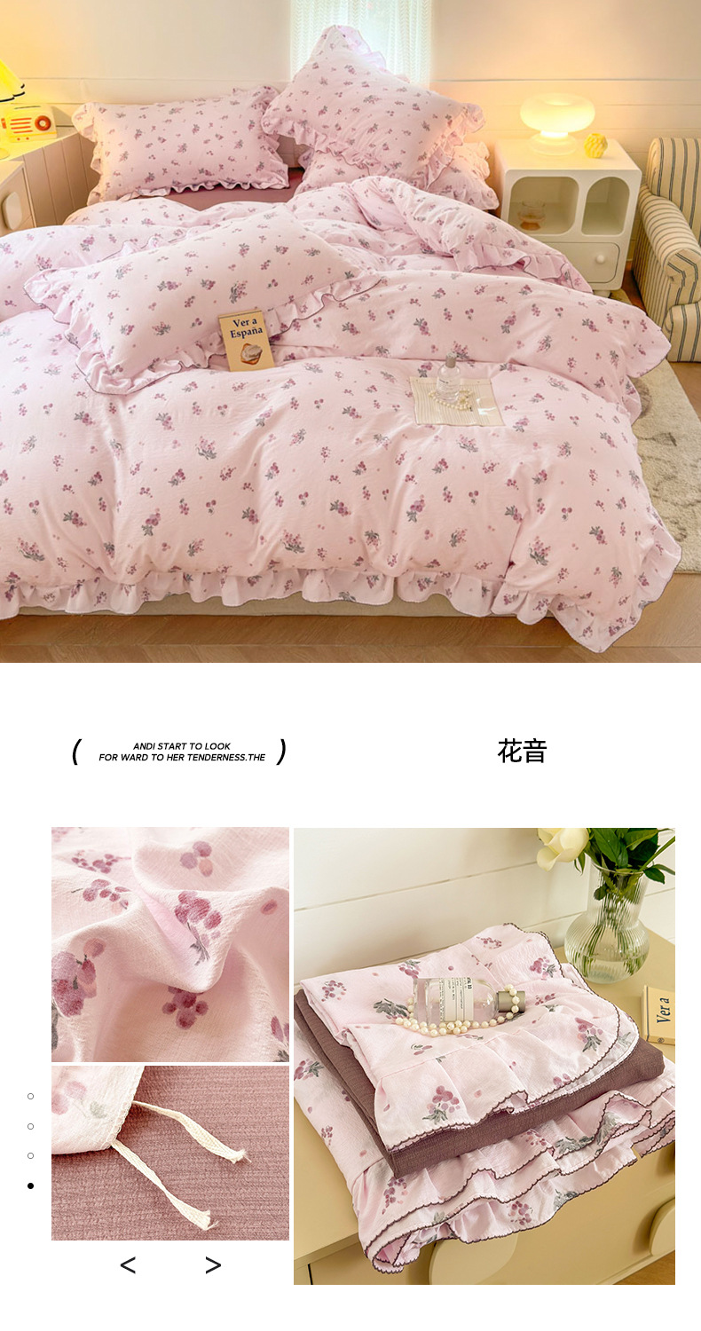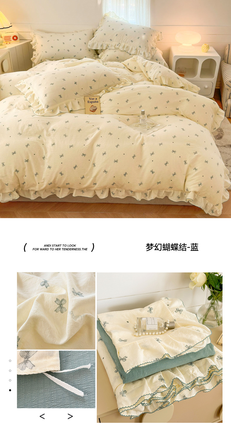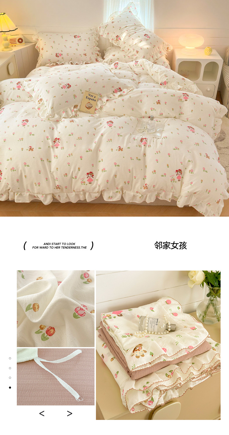 클래스 A 에어로빅 니트 코튼 인 스타일 한국 스타일 레이스 더블 레이어 원사 퓨어 코튼 4 피스 프린세스 스타일 싱글 퀼트 커버스토어 가기
