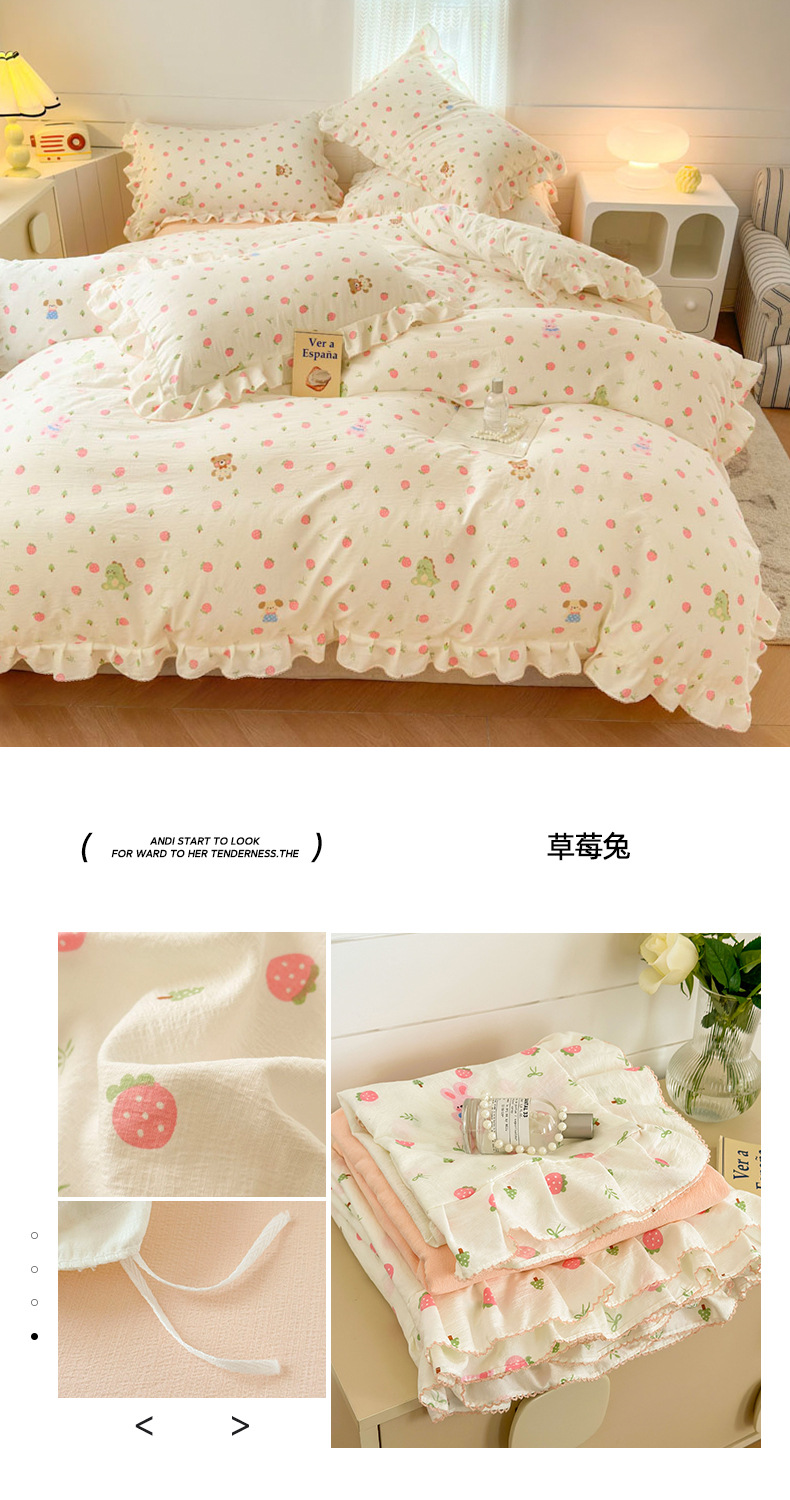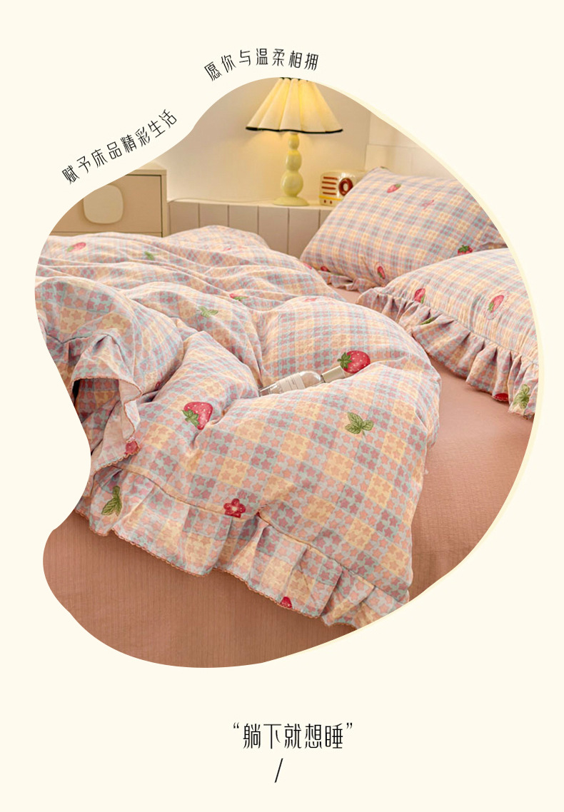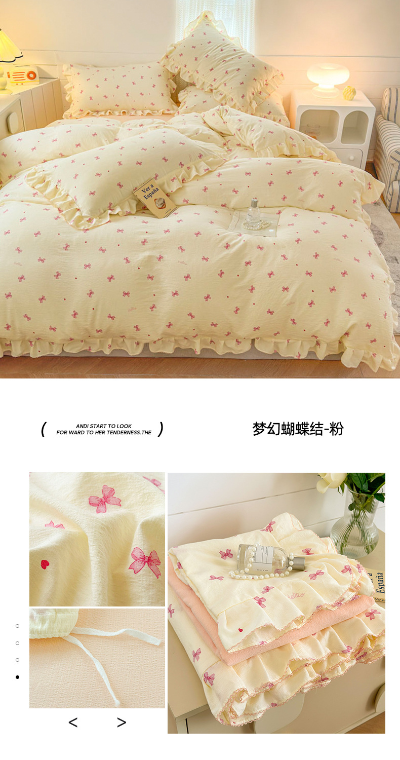 클래스 A 에어로빅 니트 코튼 인 스타일 한국 스타일 레이스 더블 레이어 원사 퓨어 코튼 4 피스 프린세스 스타일 싱글 퀼트 커버스토어 가기