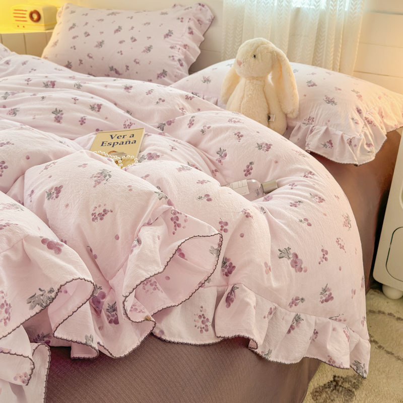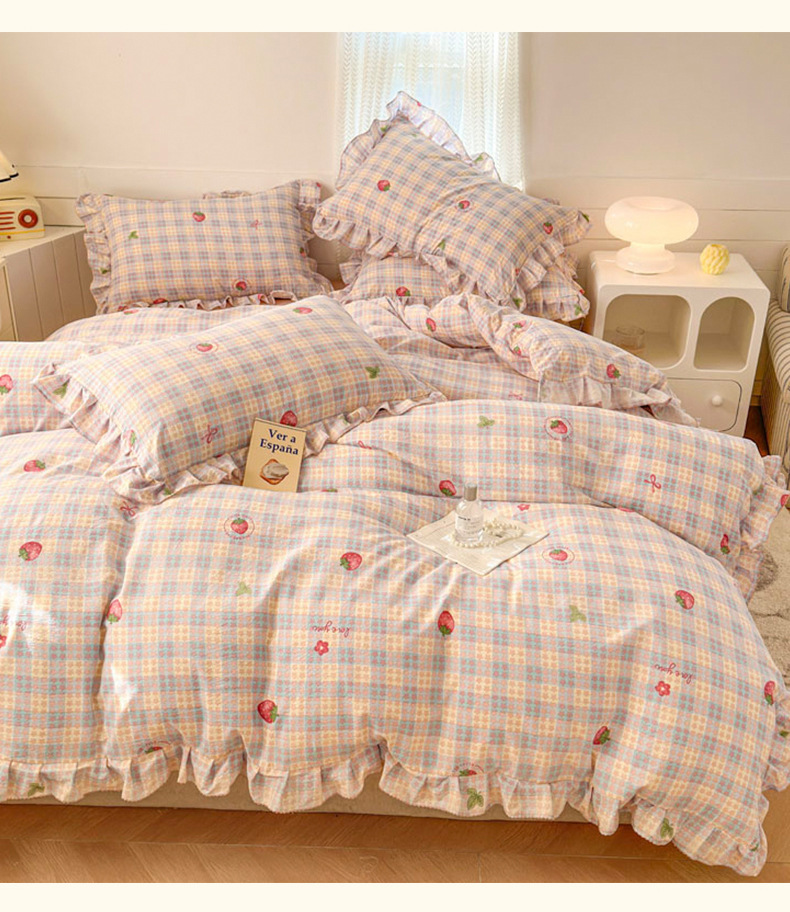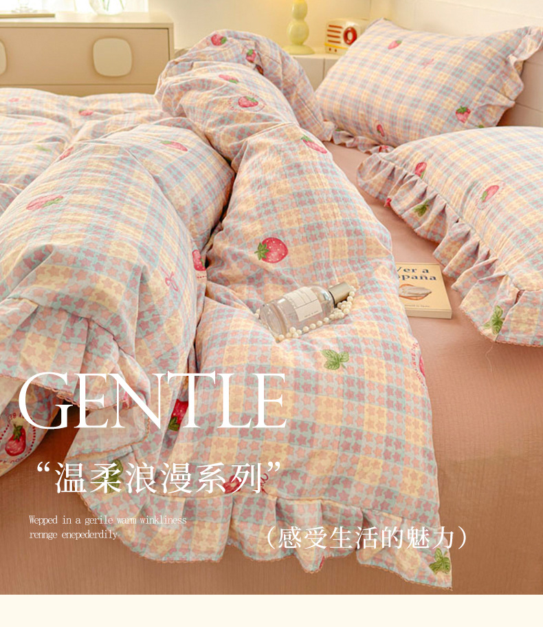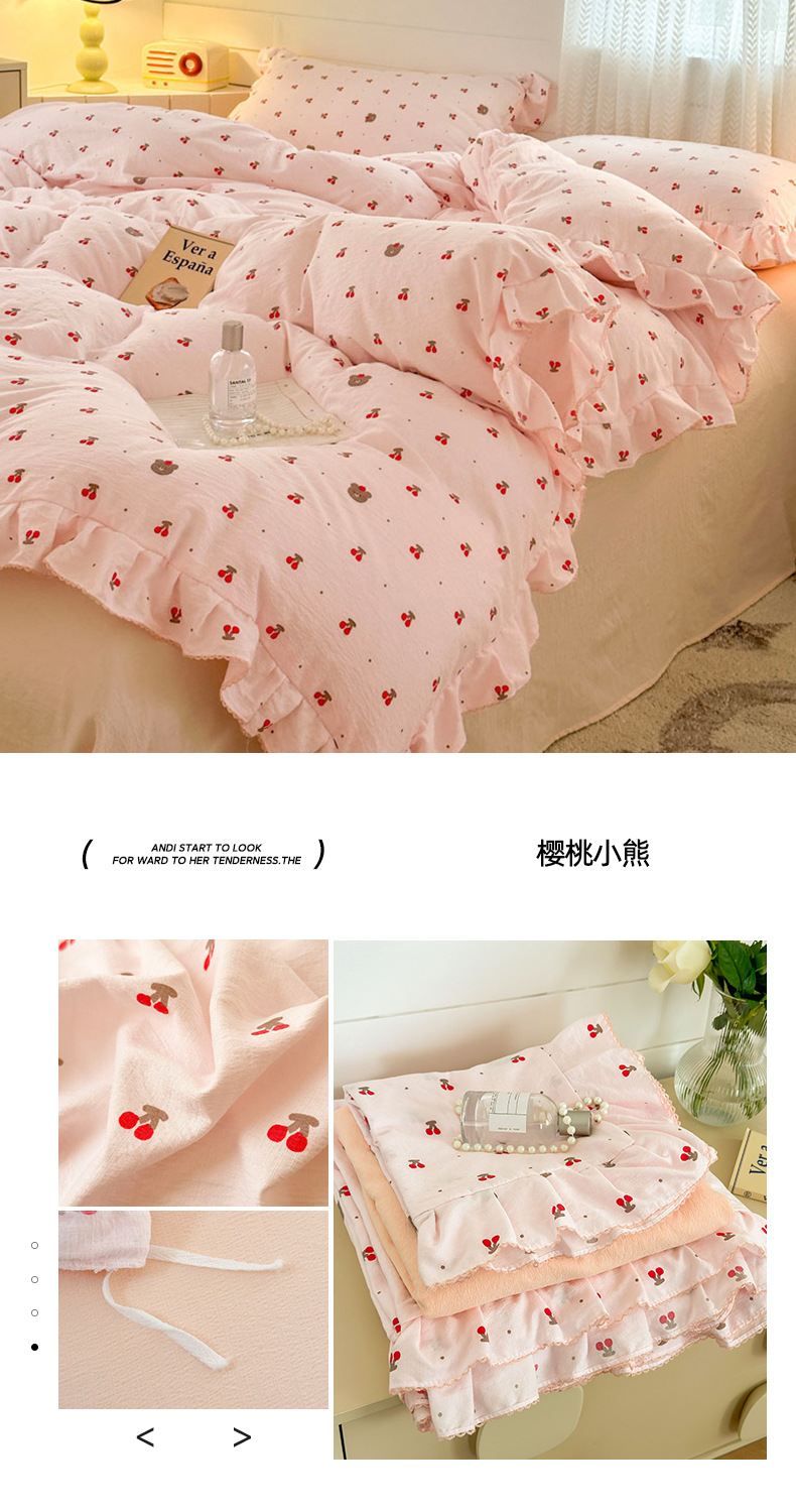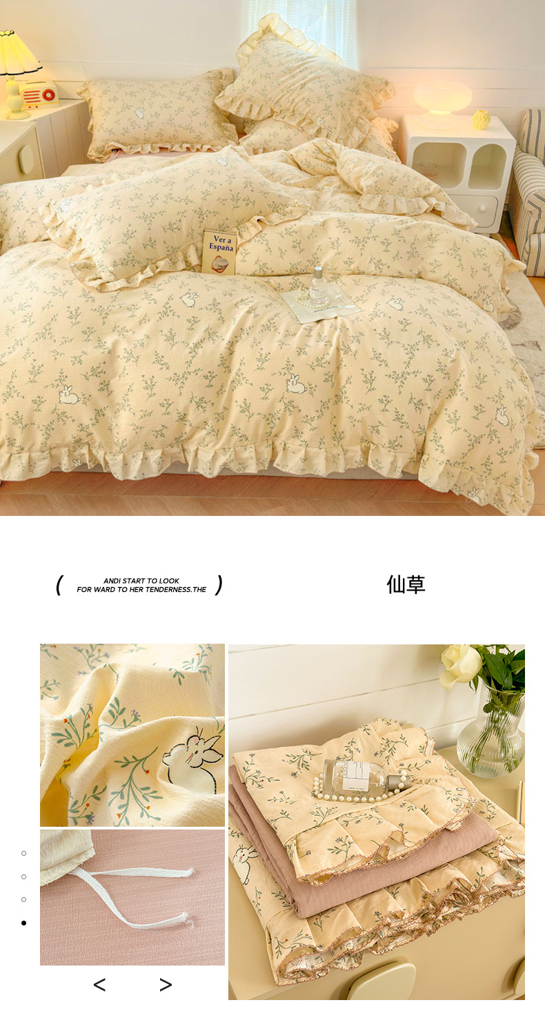 클래스 A 에어로빅 니트 코튼 인 스타일 한국 스타일 레이스 더블 레이어 원사 퓨어 코튼 4 피스 프린세스 스타일 싱글 퀼트 커버스토어 가기