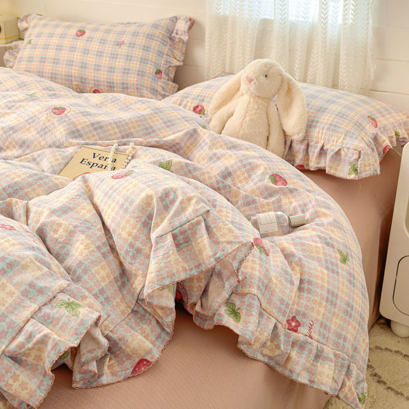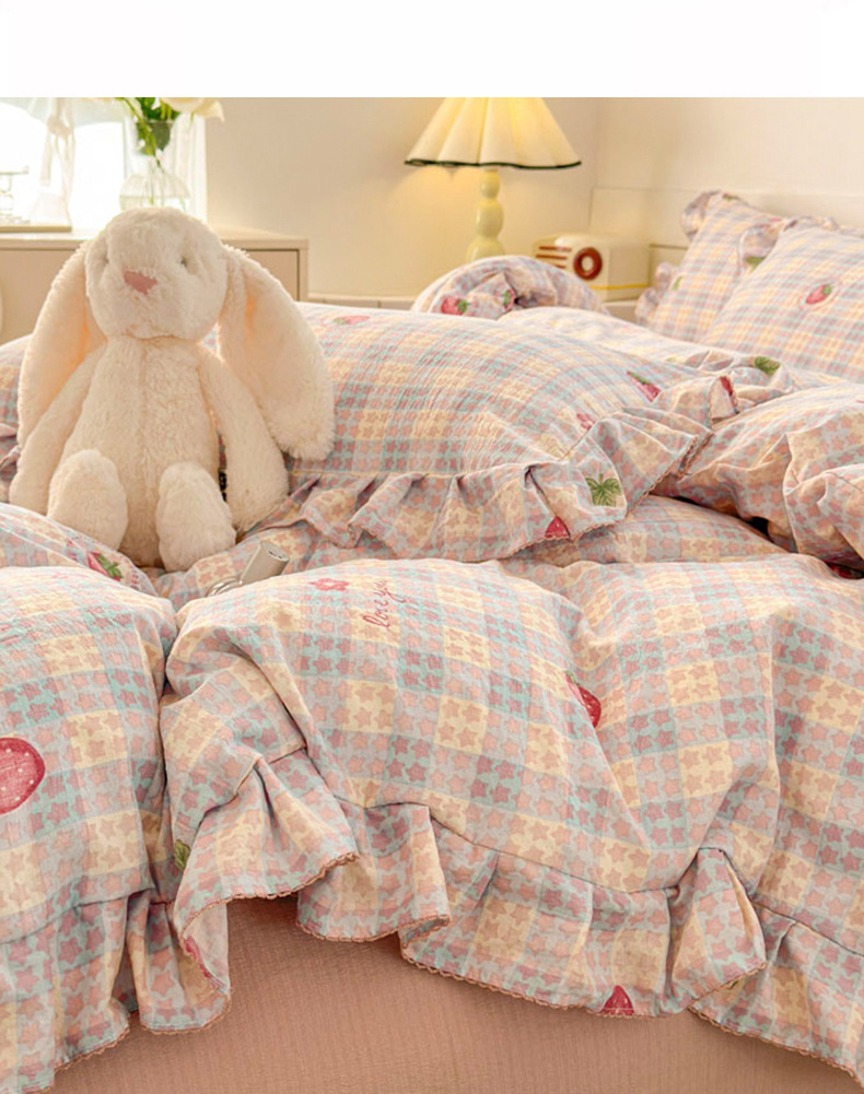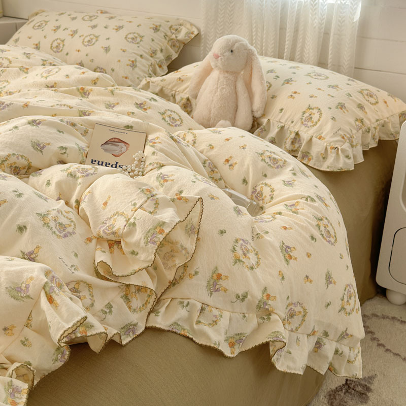 클래스 A 에어로빅 니트 코튼 인 스타일 한국 스타일 레이스 더블 레이어 원사 퓨어 코튼 4 피스 프린세스 스타일 싱글 퀼트 커버