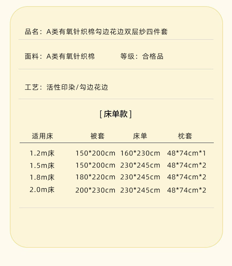 • 1.8m 침대 시트 4장 세트[이불커버 180*220cm]